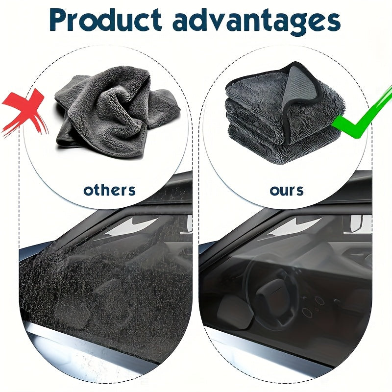Большое микрофибровое полотенце для сушки автомобиля 600 г/м², без разводов, впитывающее, с закрученным петлёй