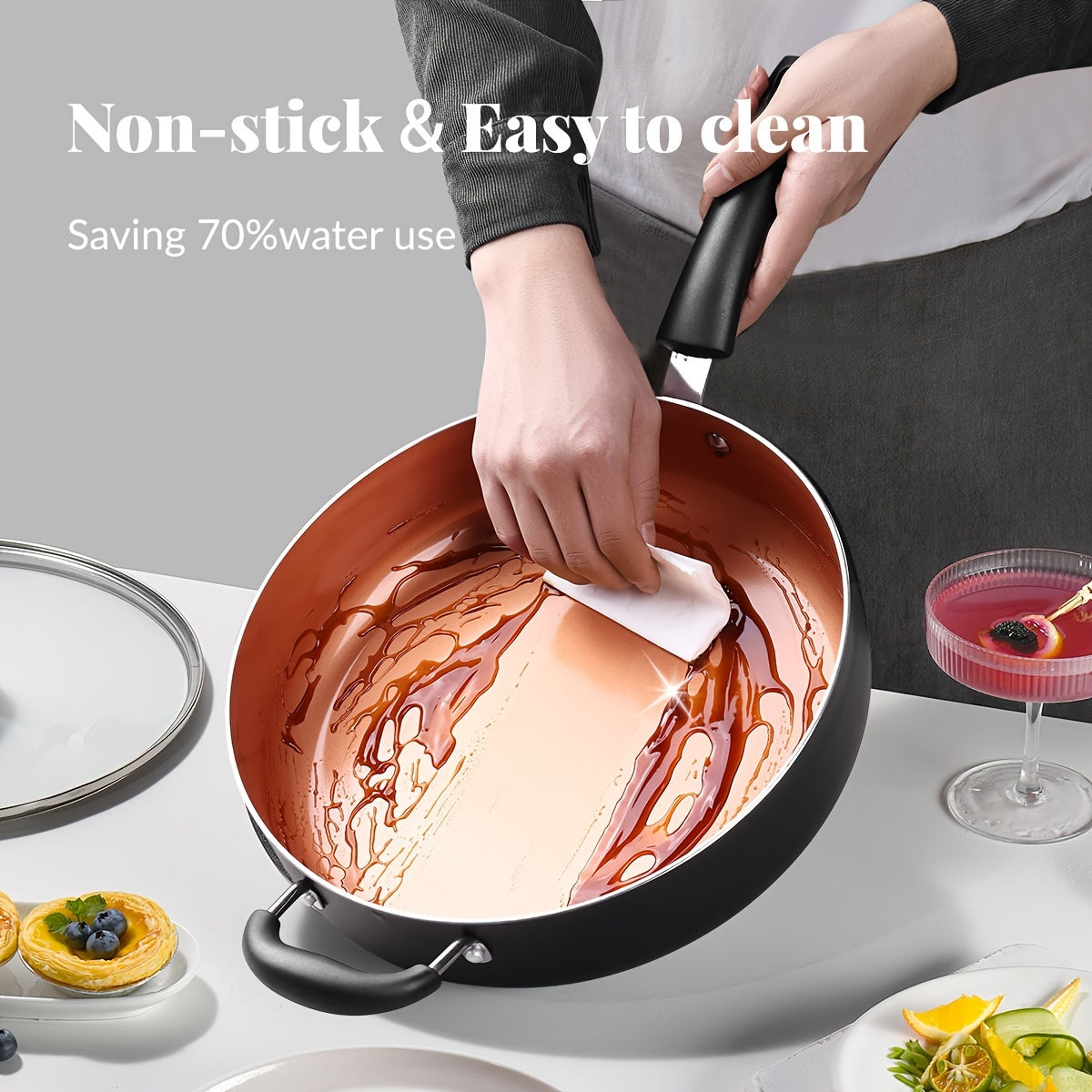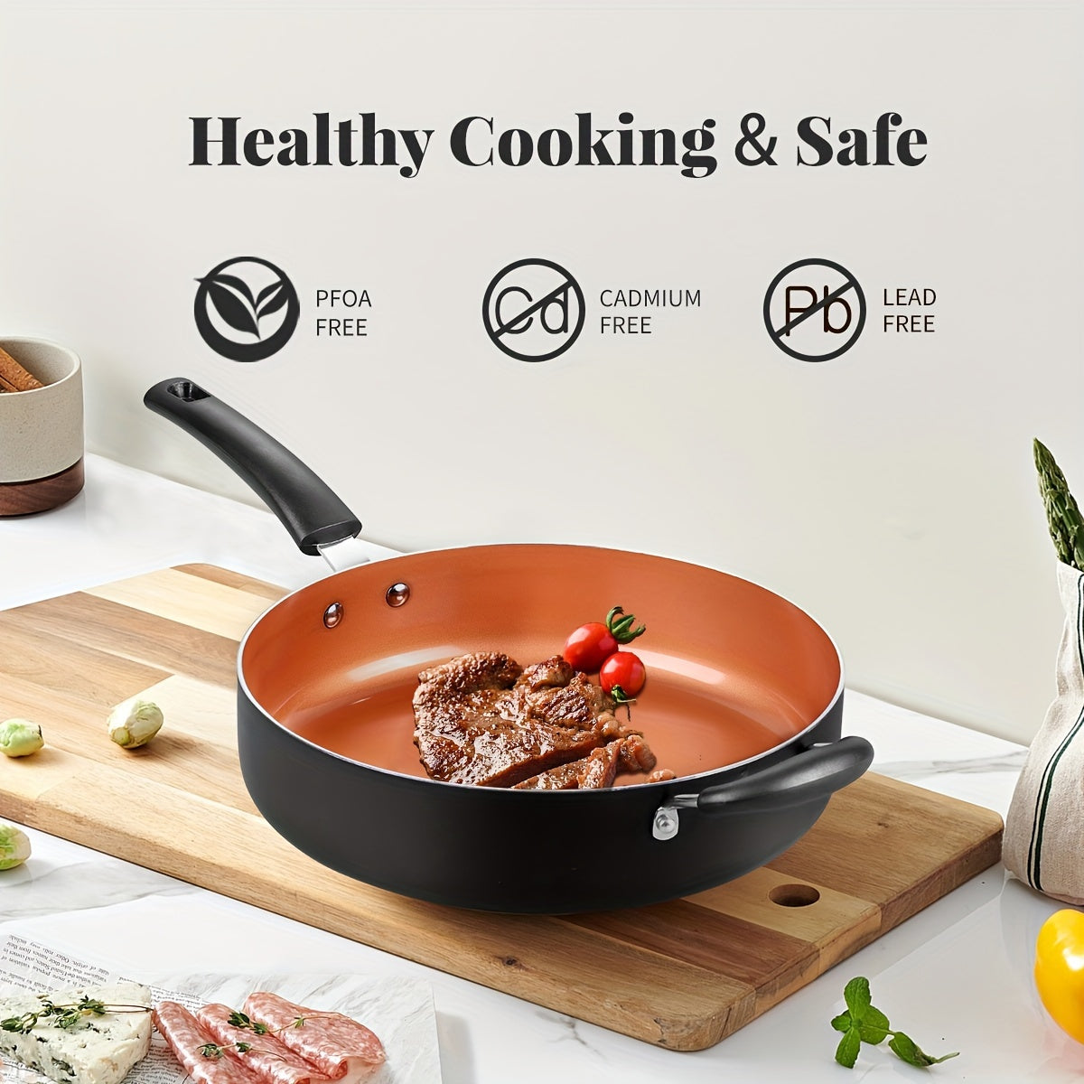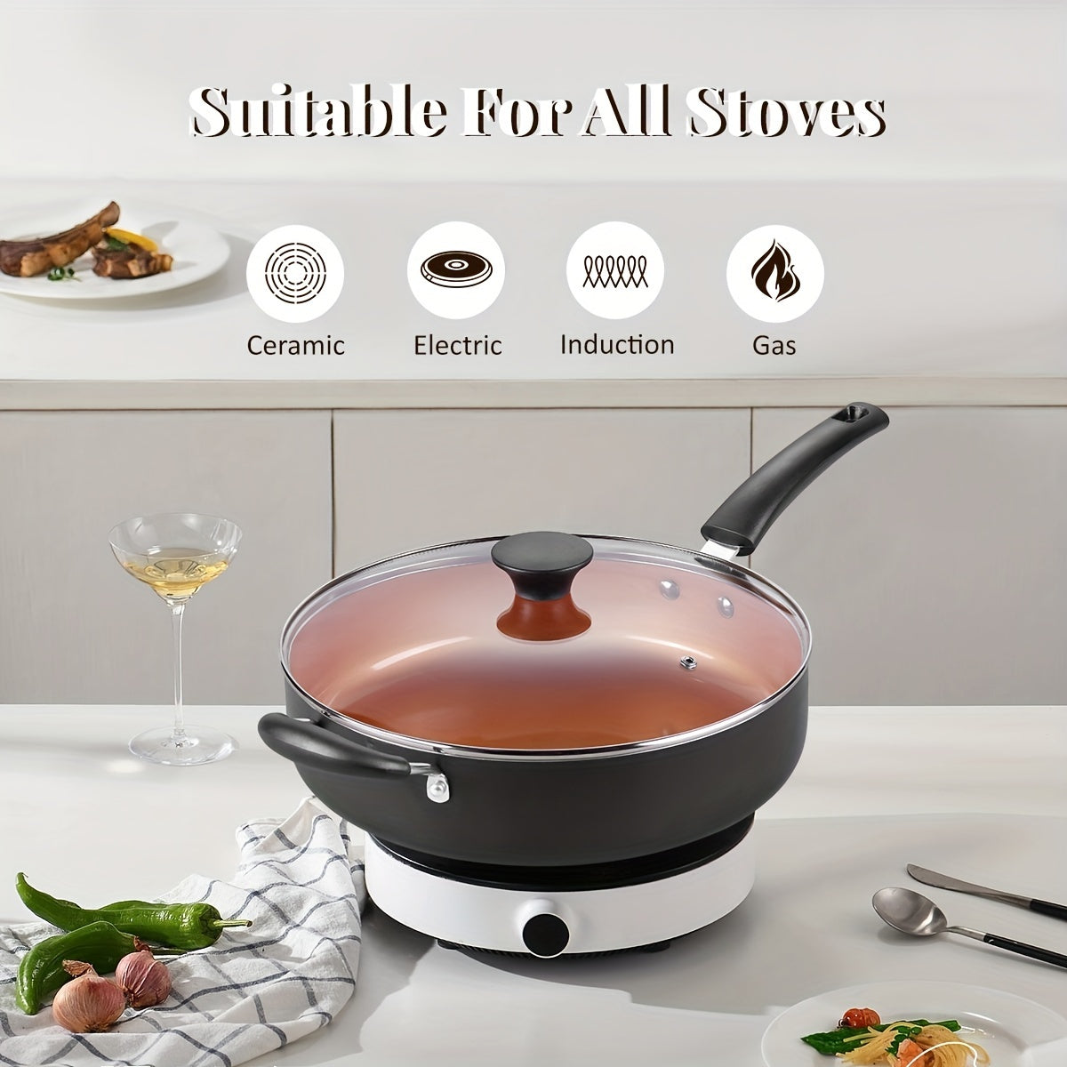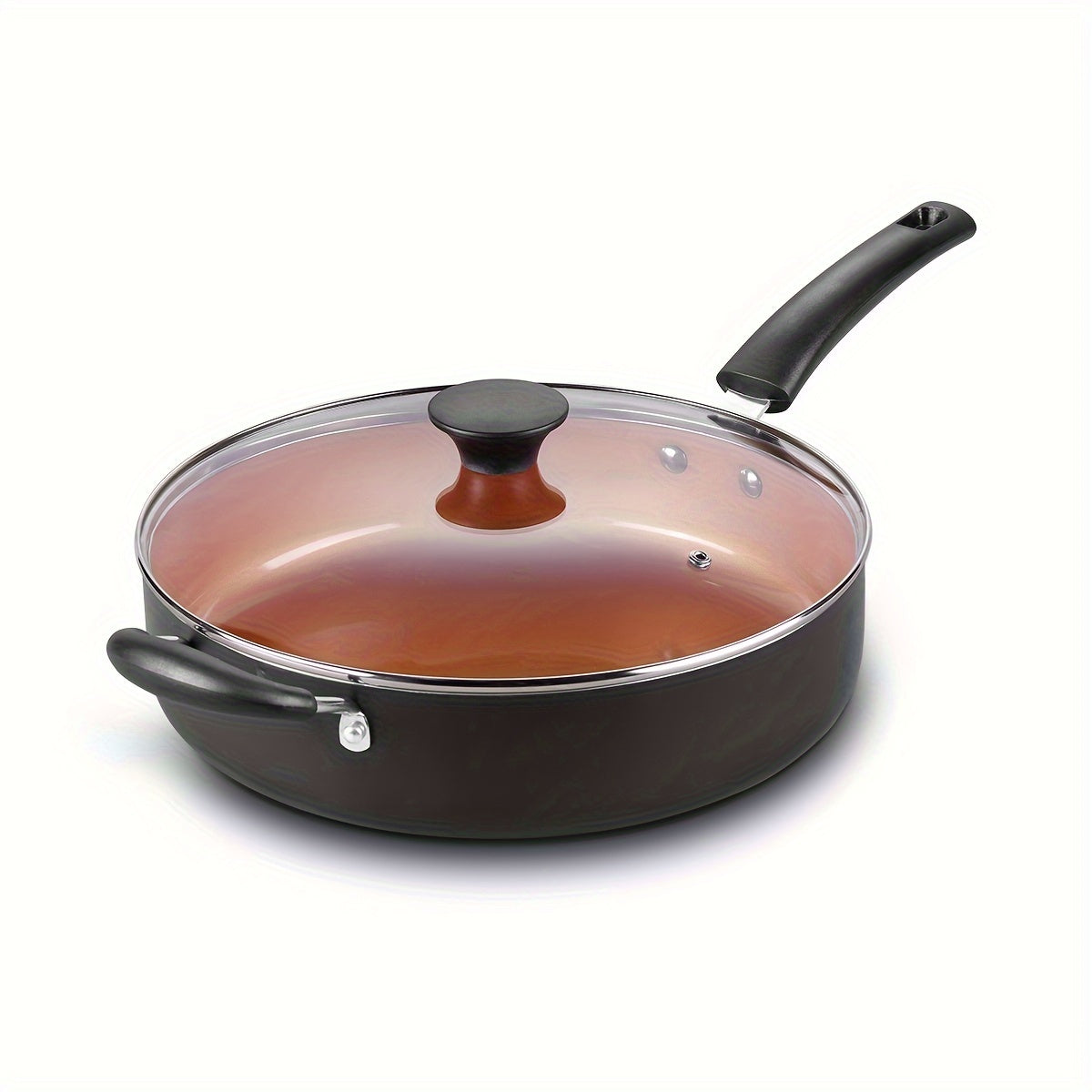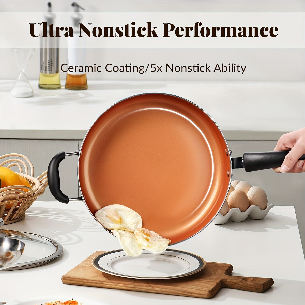 Большая антипригарная глубокая сковорода - 30,48 см, совместимая с индукцией, сковорода для жарки 5Qt с крышкой, керамическое покрытие, вспомогательная ручка, 100% без PFOA, PFOS, APEO - Здоровое приготовление пищи