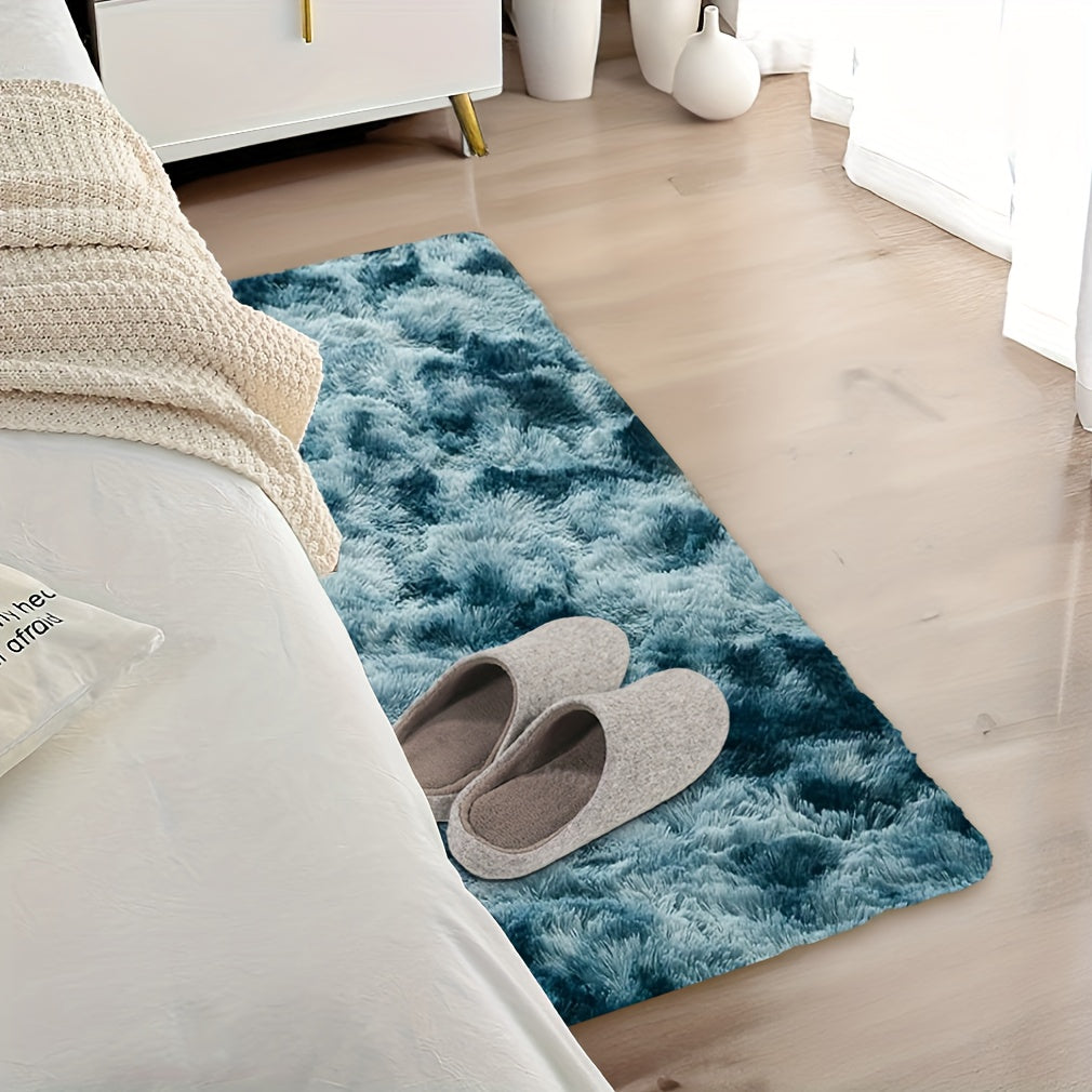 Большой мягкий комфортный длинный ворсистый искусственный меховой ковер с ковром из полиэстера для помещений, который можно стирать вручную. Универсальный для гостиной, спальни и общественных мест. Простой уход с современным градиентным дизайном.