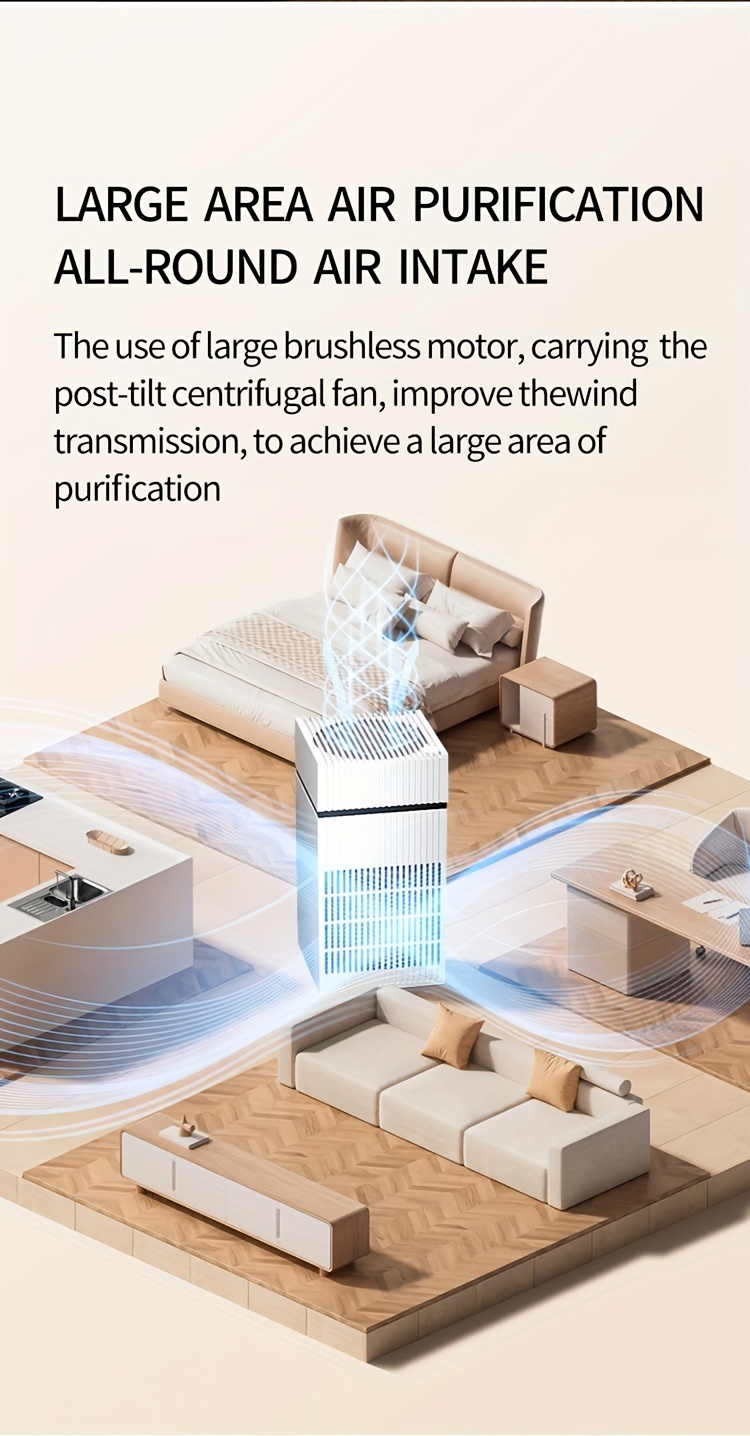 Большой космический ультра-тихий HEPA-очиститель воздуха с тройной системой фильтрации