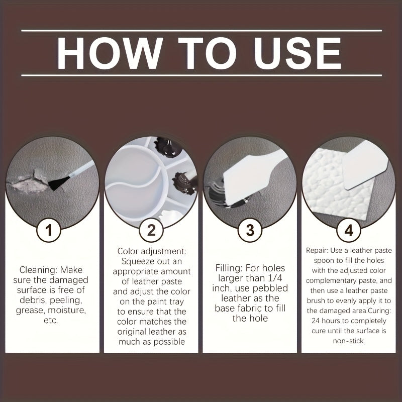Крем для ремонта кожаных и виниловых автомобильных сидений для всех поверхностей, 4-в-1