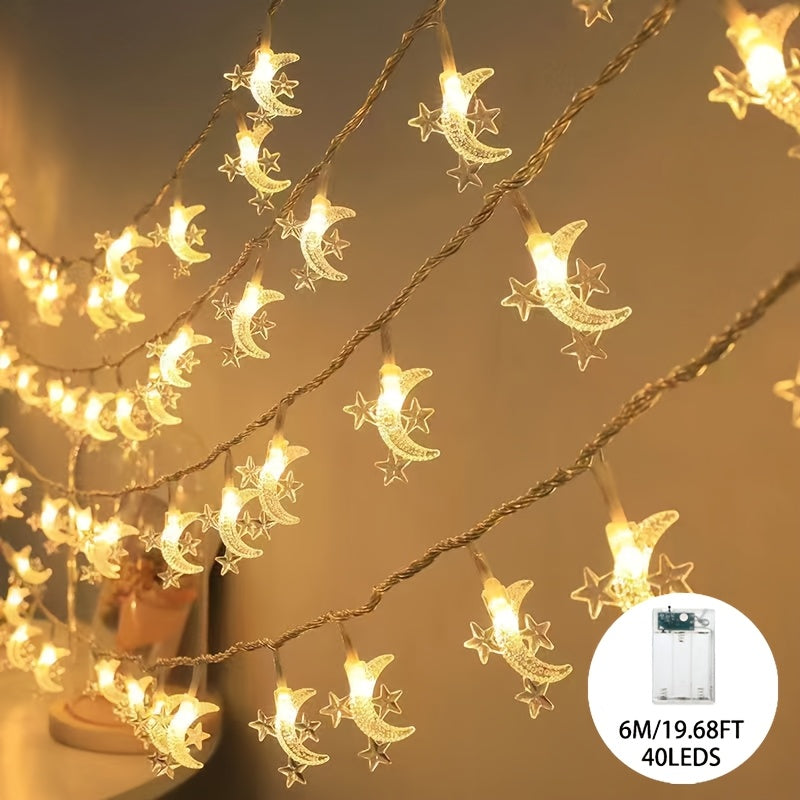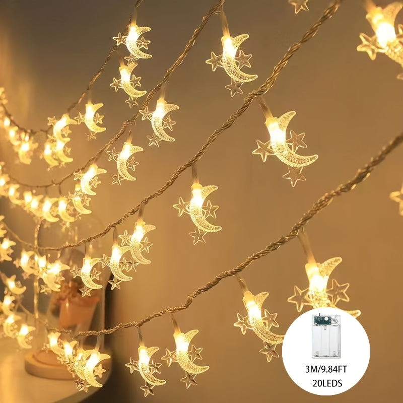 Светодиодные гирлянды Луна и Звезда на батарейках для свадебного и домашнего декора, длина 1,5 м, 3 м, 6 м