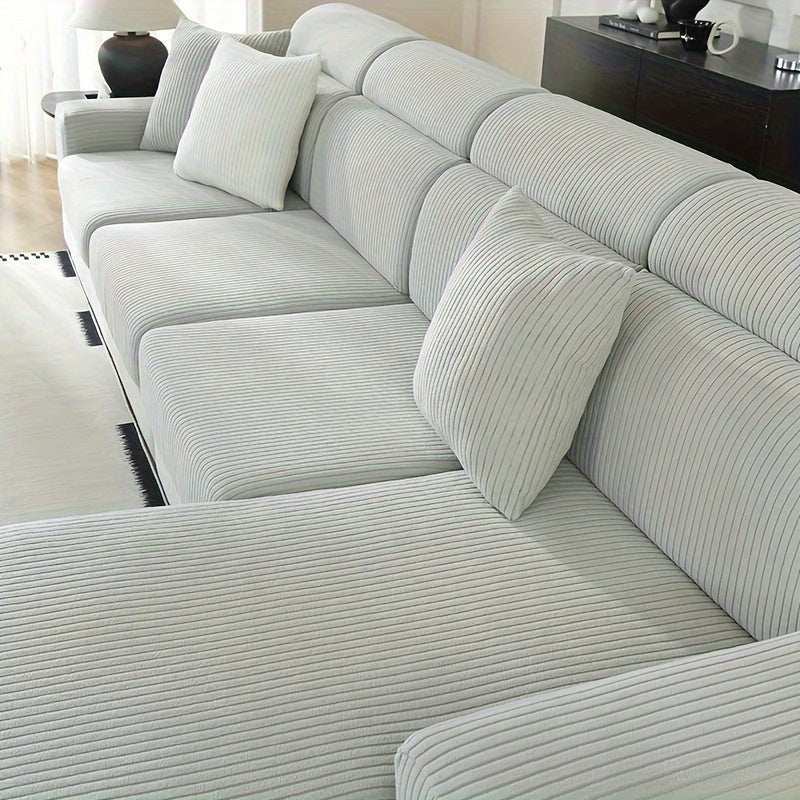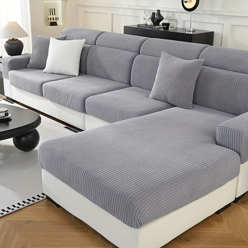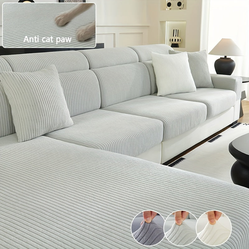 Светло-серая чехол для дивана, разработанный для защиты от царапин кошек, подходит для диванов на 1-4 места, изготовлен из нескользящей, безопасной для домашних животных жаккардовой ткани с рифленой текстурой, идеален для декора гостиной и спальни.