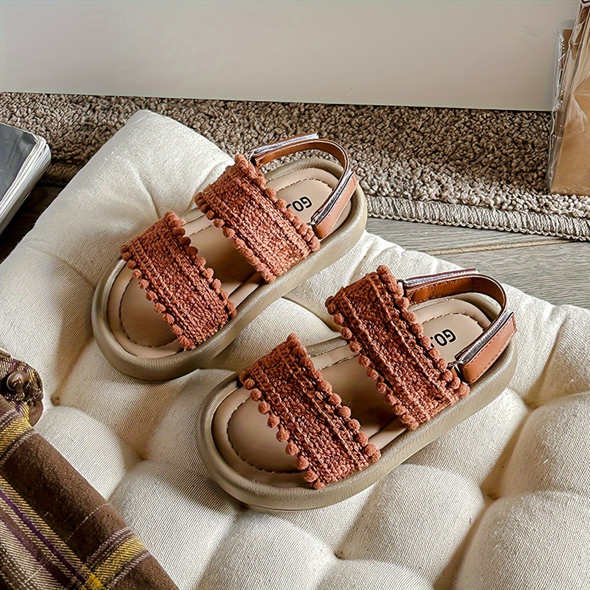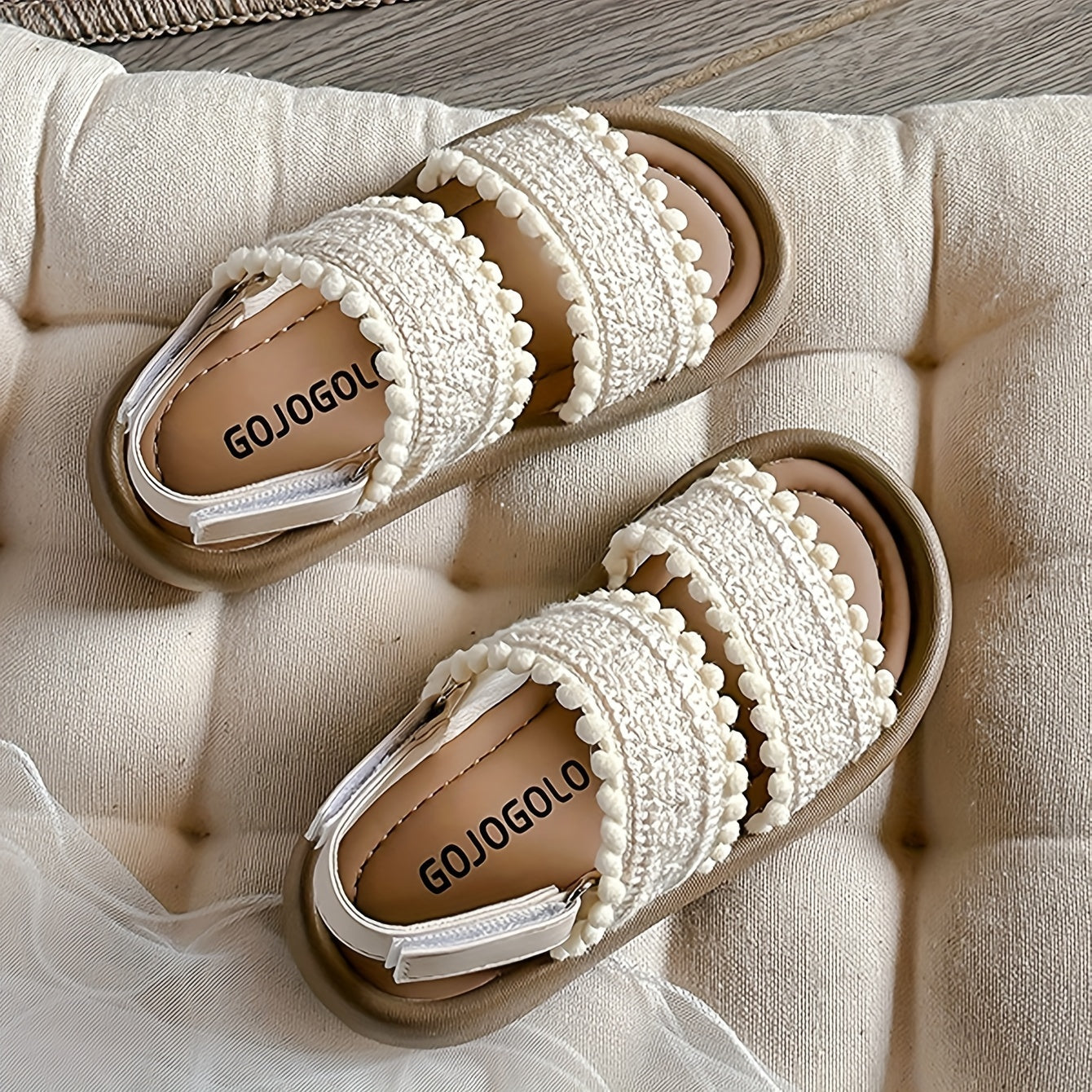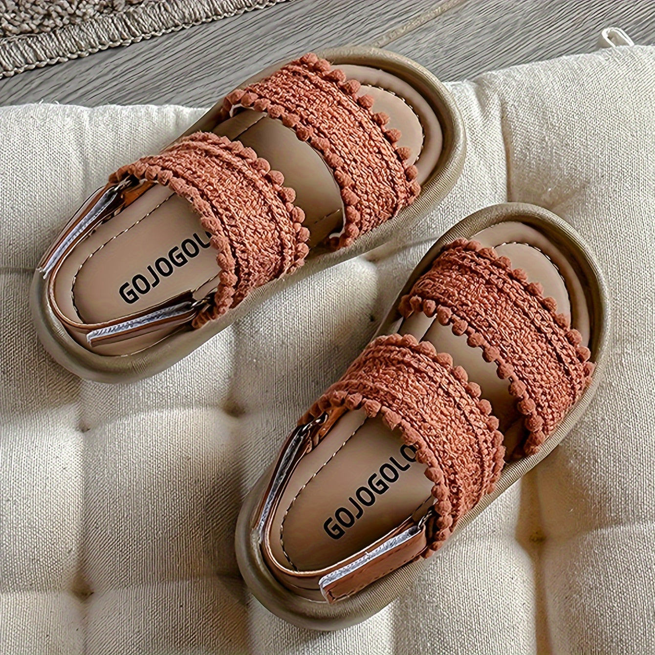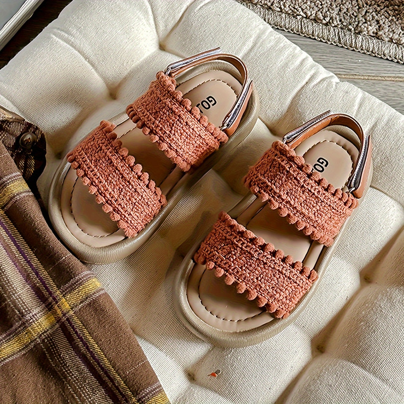 Летние сандалии с открытым носком для девочек, дышащая ткань, резиновая подошва, повседневная обувь