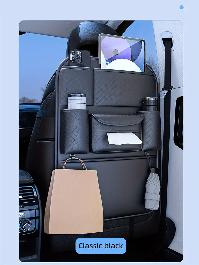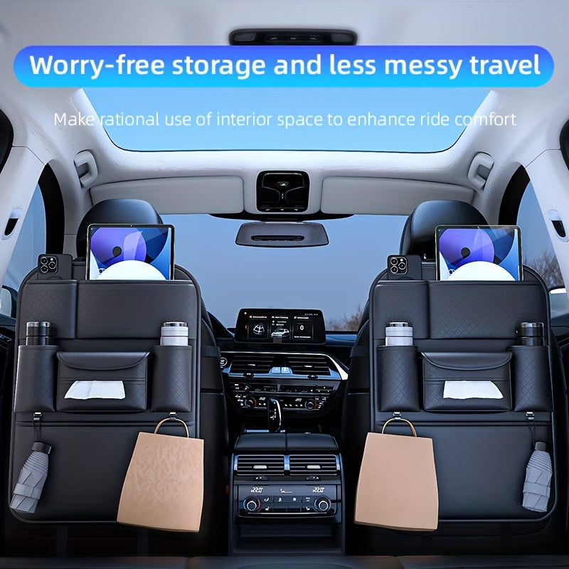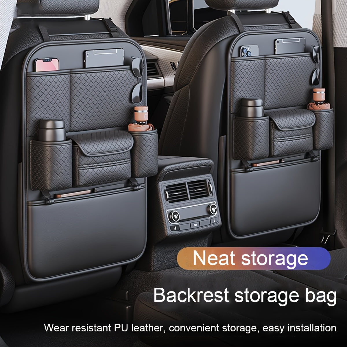 Органайзер для автомобильных сидений из искусственной кожи с большой вместимостью и сумкой для хранения на спинке