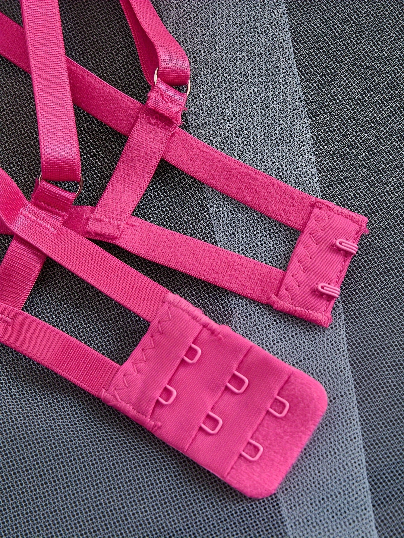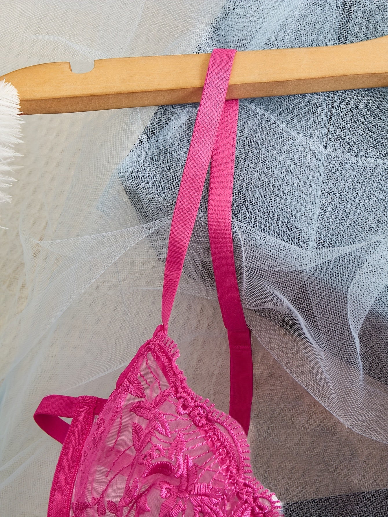 Комплект нижнего белья с тонкими бретельками, включающий интимные вещи, бюстгальтер и трусики в сексуальном дизайне.