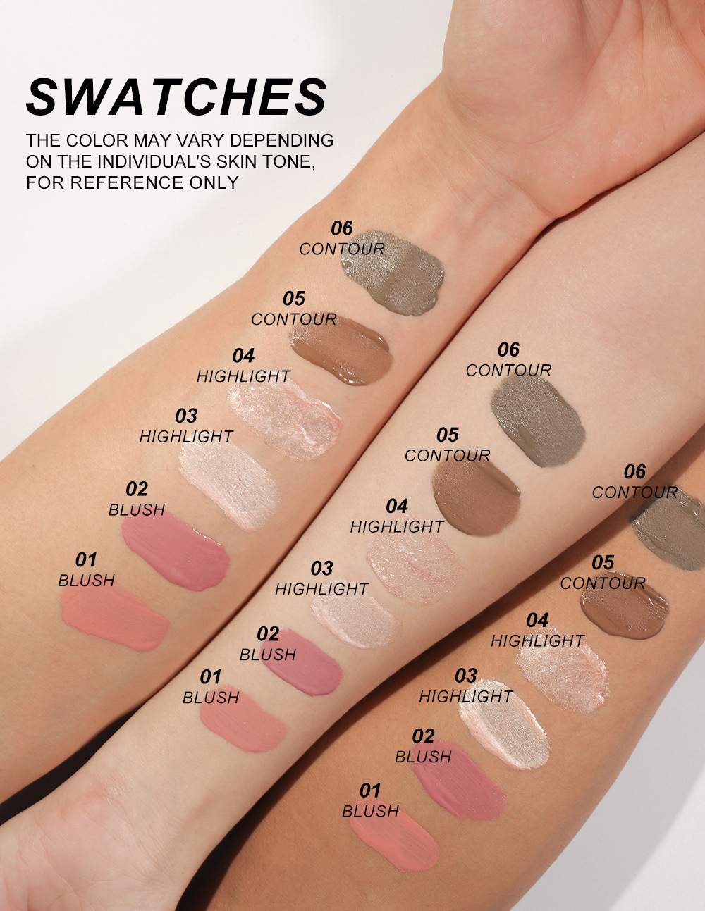 Набор жидких хайлайтеров-карандашей для контурирования лица и сияния, водостойкий, мультиоттеночный