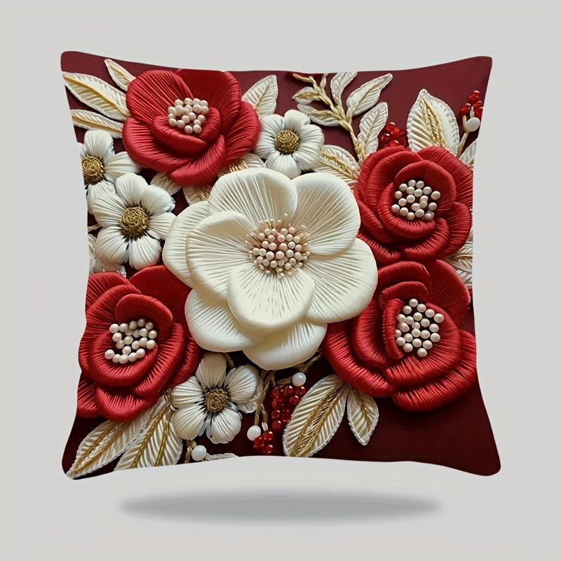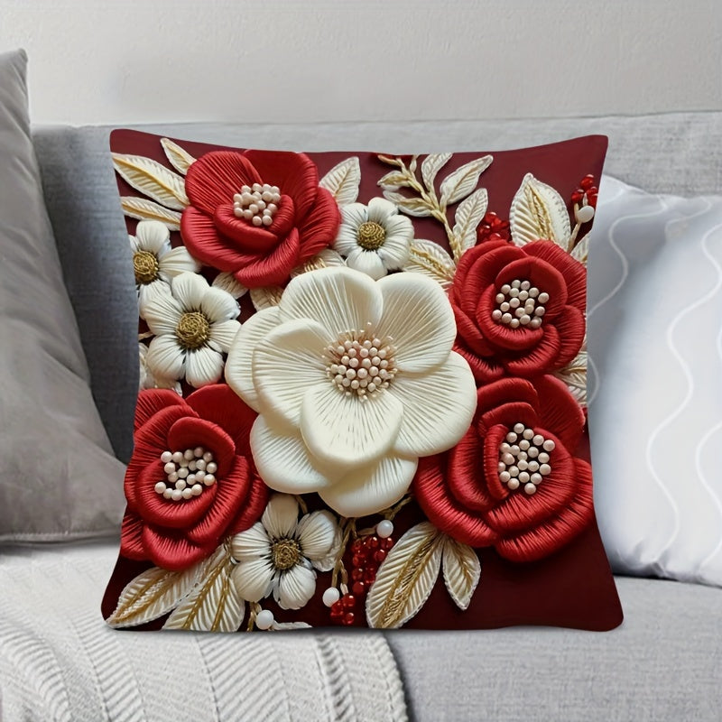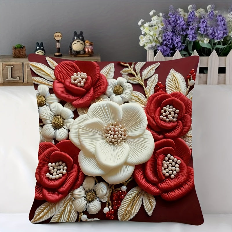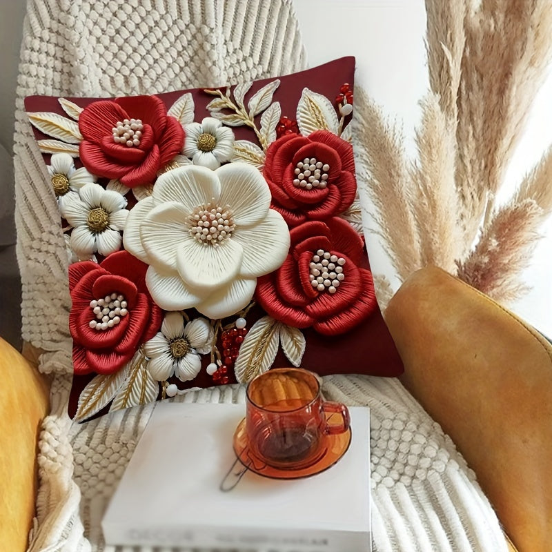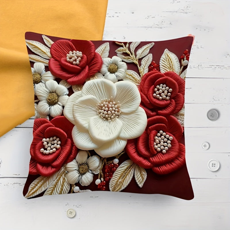 Чехол для подушки в стиле лоджа с цветочным узором, изготовленный из тканого полиэстера с невидимой молнией. Машинная стирка. Вставка для подушки не включена.