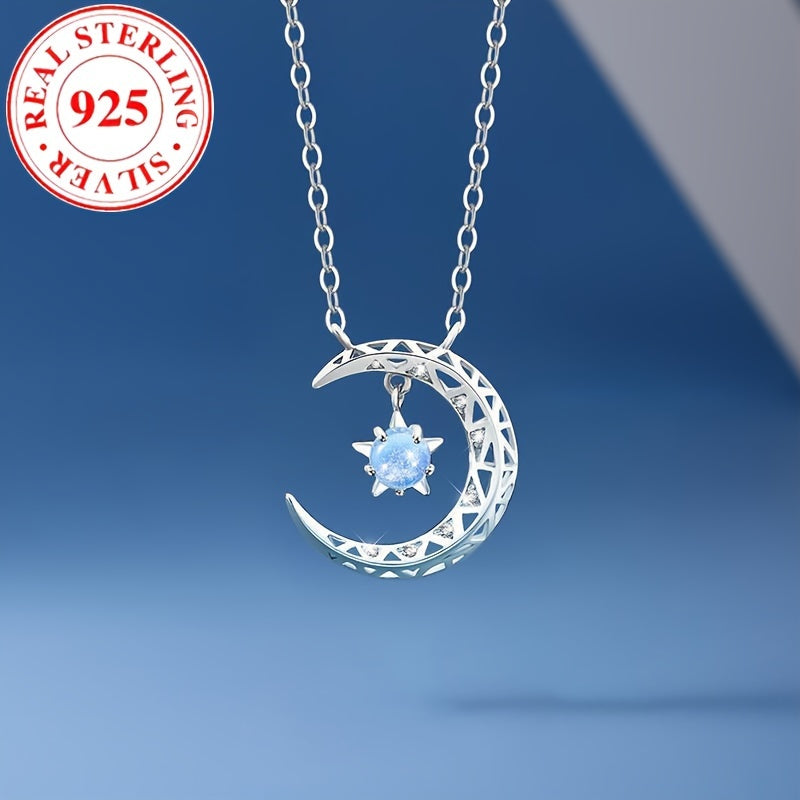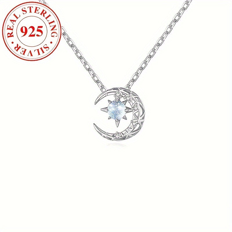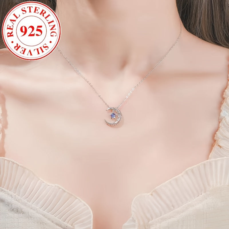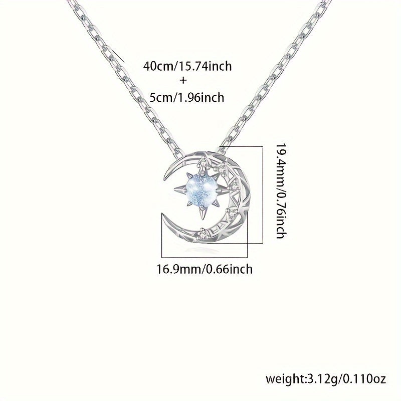 Роскошное ожерелье с подвеской в форме луны из серебра 925 пробы с синтетическим голубым цирконием, камень рождения июня - идеальный подарок для женщин на каждый день и особые случаи.
