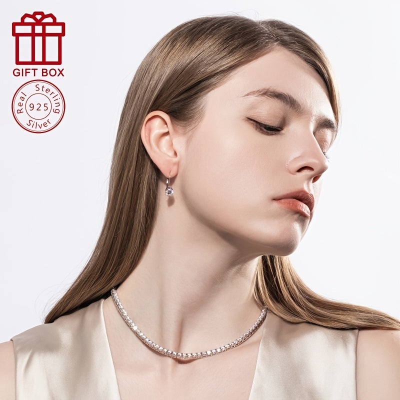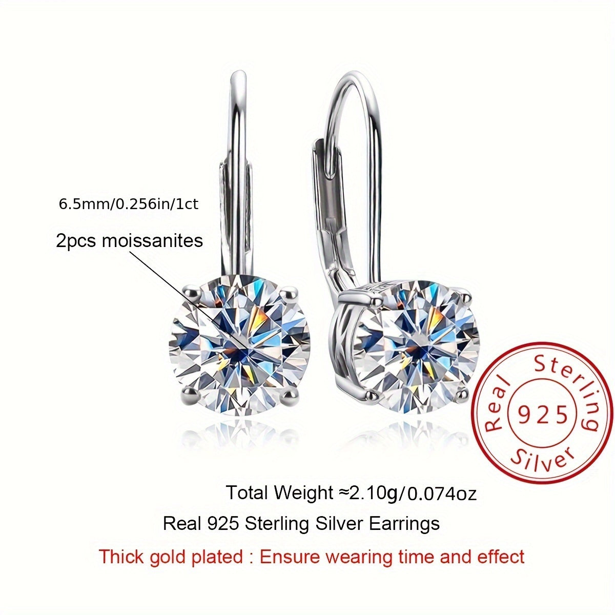 Роскошные и элегантные, эти великолепные серьги изготовлены из серебра 925 пробы и украшены ослепительным камнем моиссанит. Гипоаллергенные и легкие, весом примерно 2,1 г, они станут идеальным подарком для стильной девушки, которая любит сверкать.