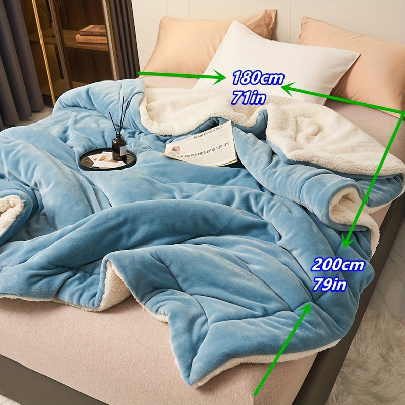 Роскошное двуслойное одеяло из мягкого молочного бархата и овечьего флиса, идеально подходит для того, чтобы оставаться в тепле зимой. Можно стирать в машине и использовать как универсальный аксессуар для постели.