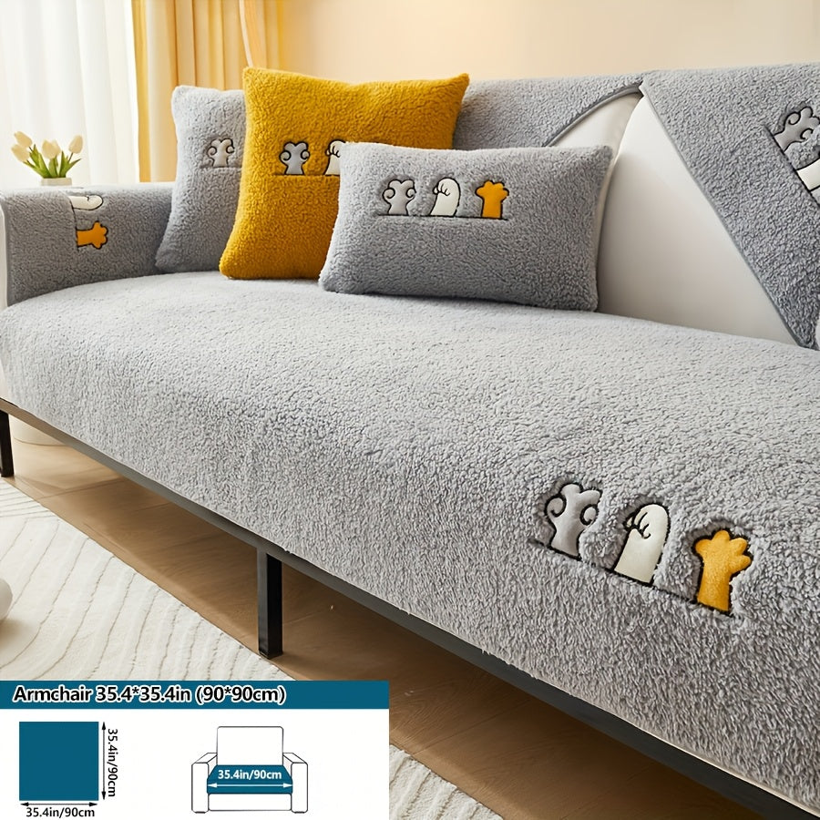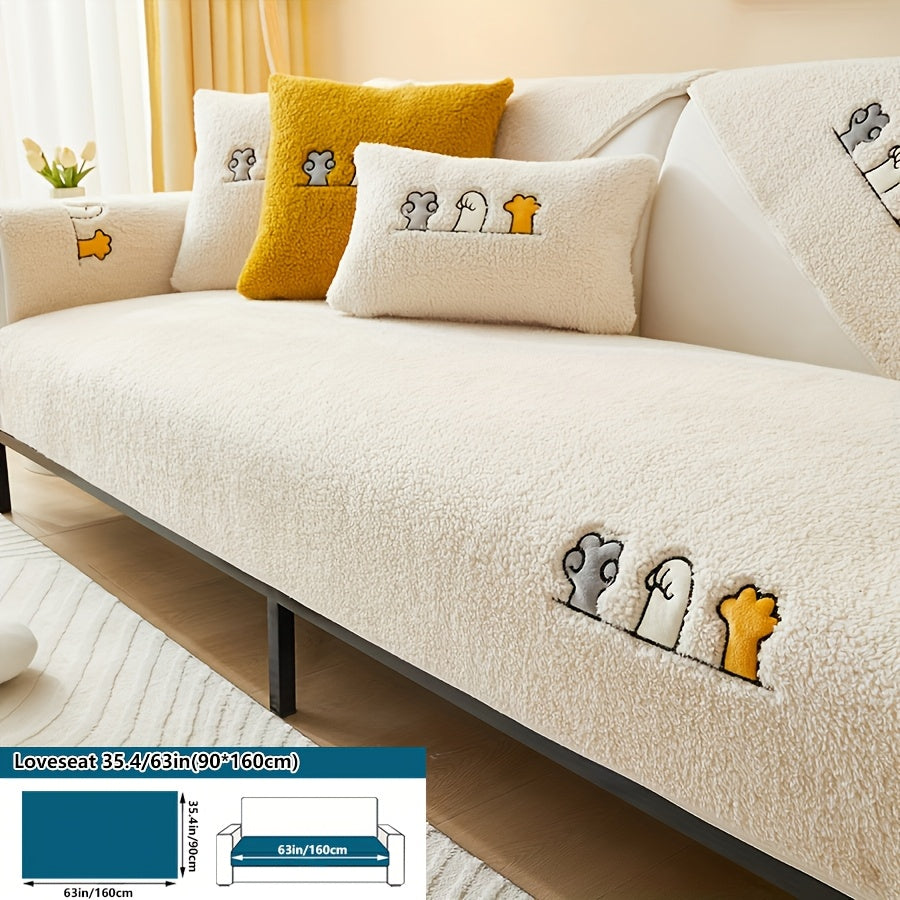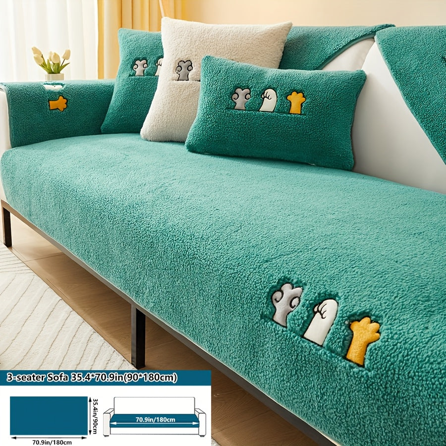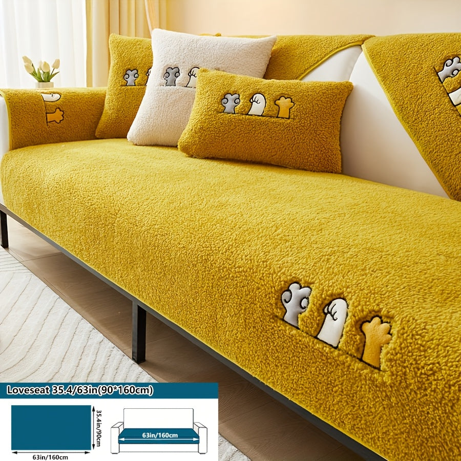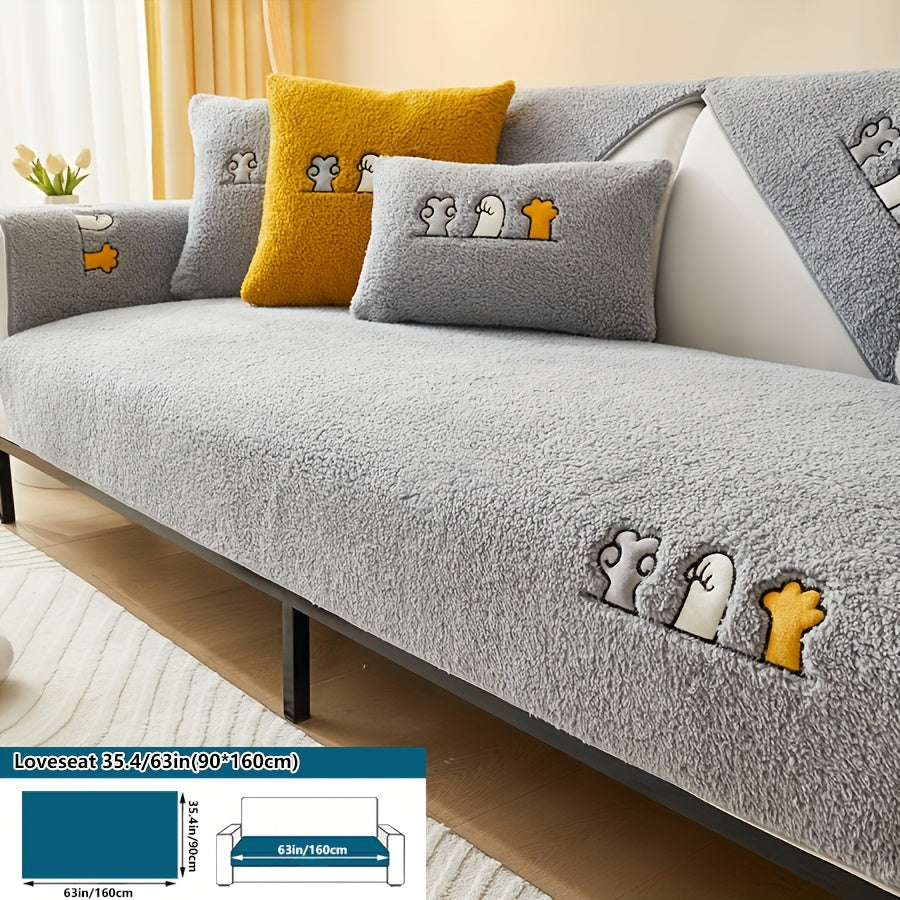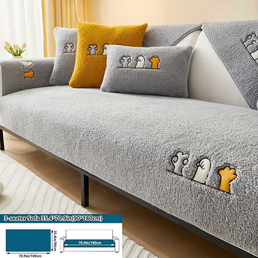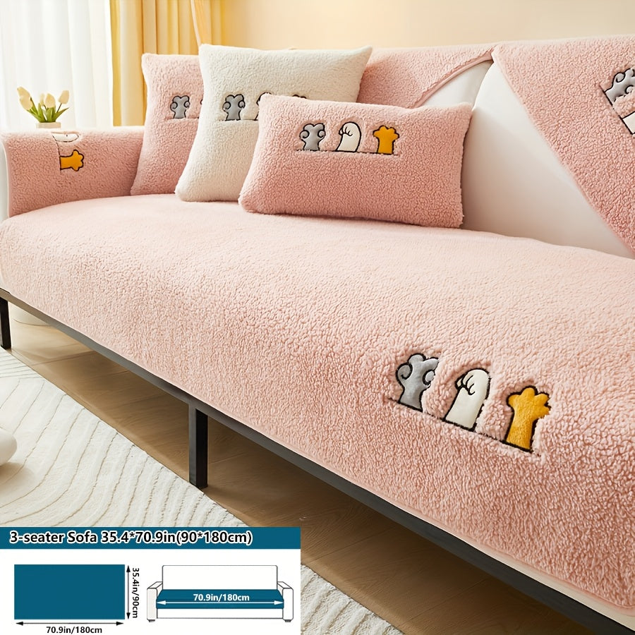 Роскошный фальшивый овечий плюшевый чехол для дивана на зиму, дружелюбный к домашним животным и стираемый в машине. Обеспечивает защиту от царапин и подходит для диванов от одного до четырех мест, а также для кроватей и подушек.