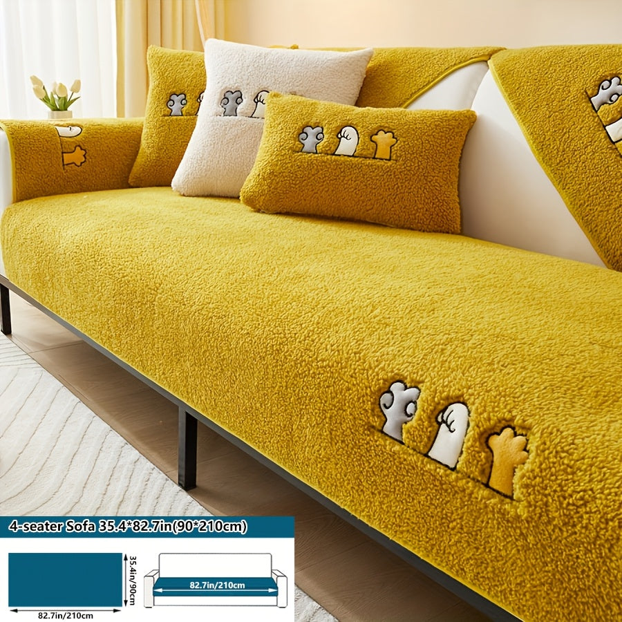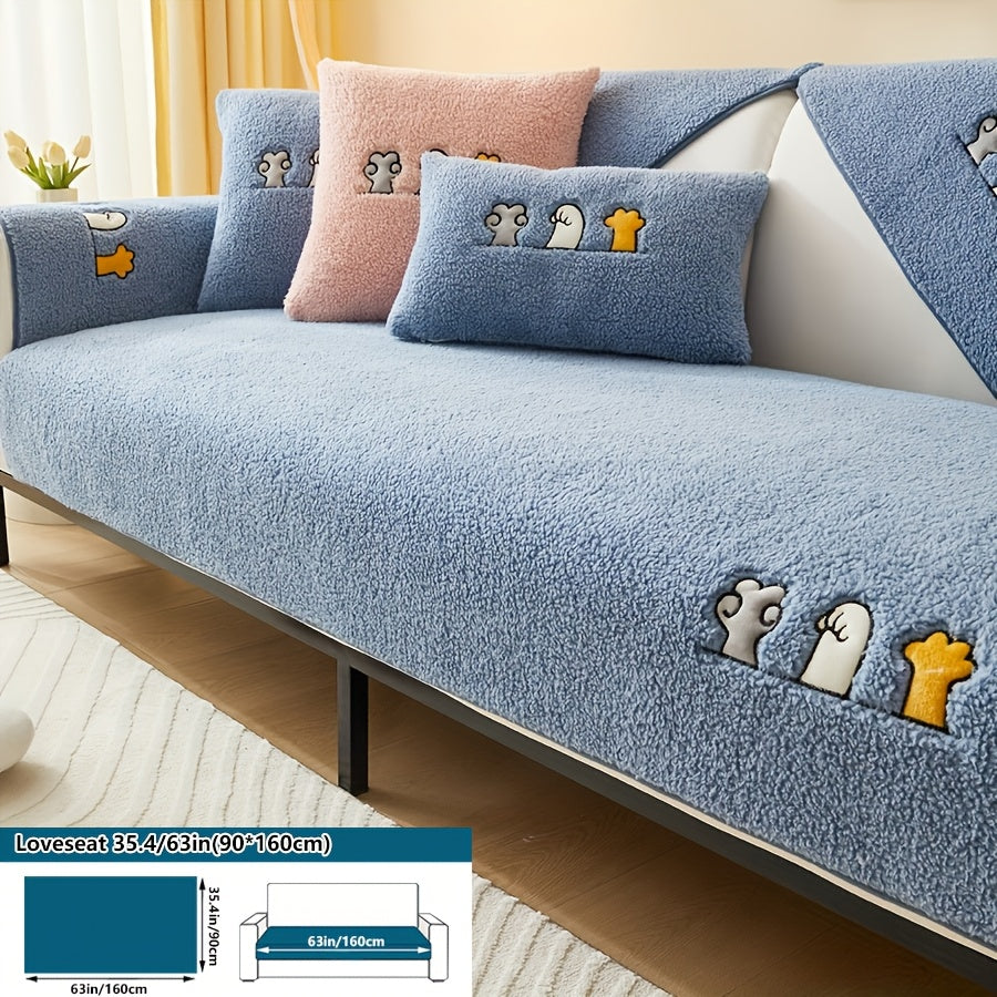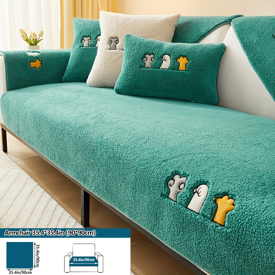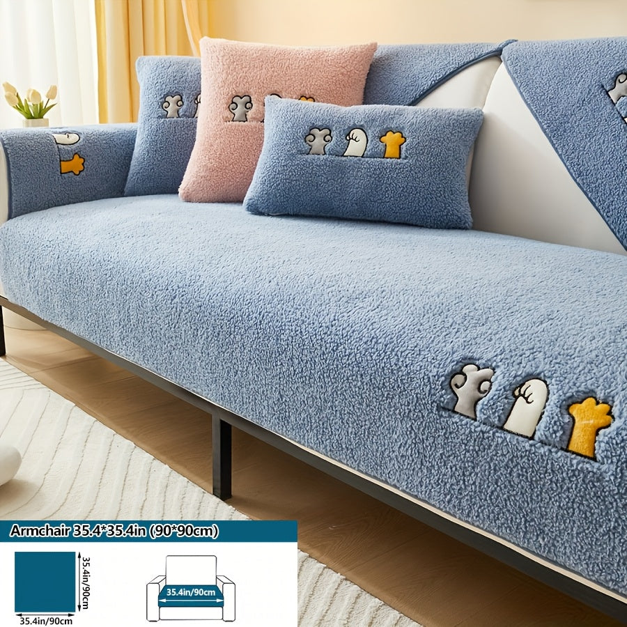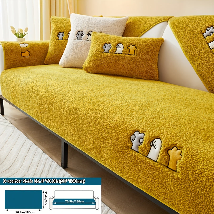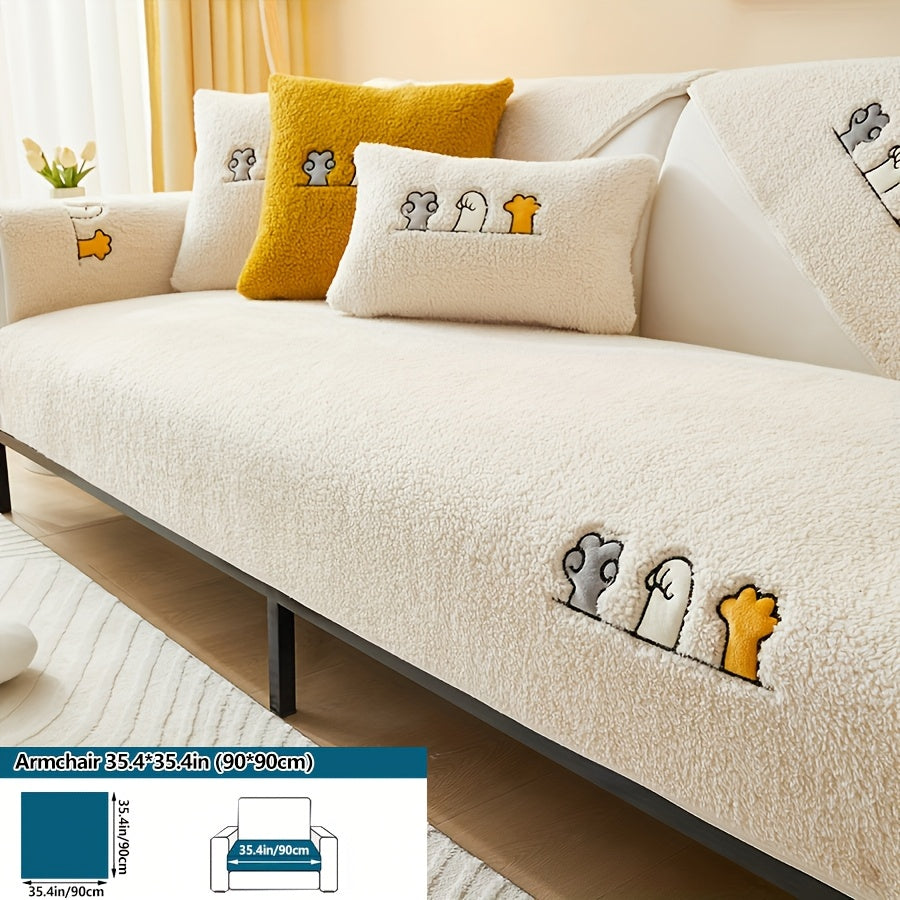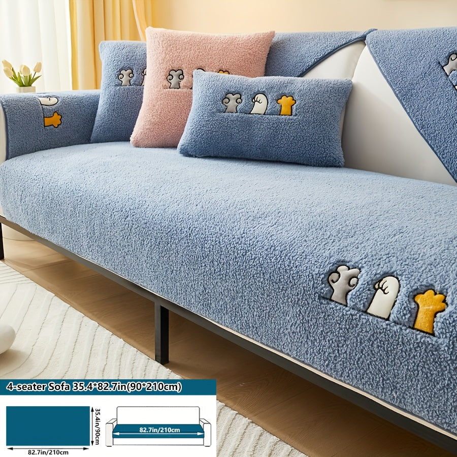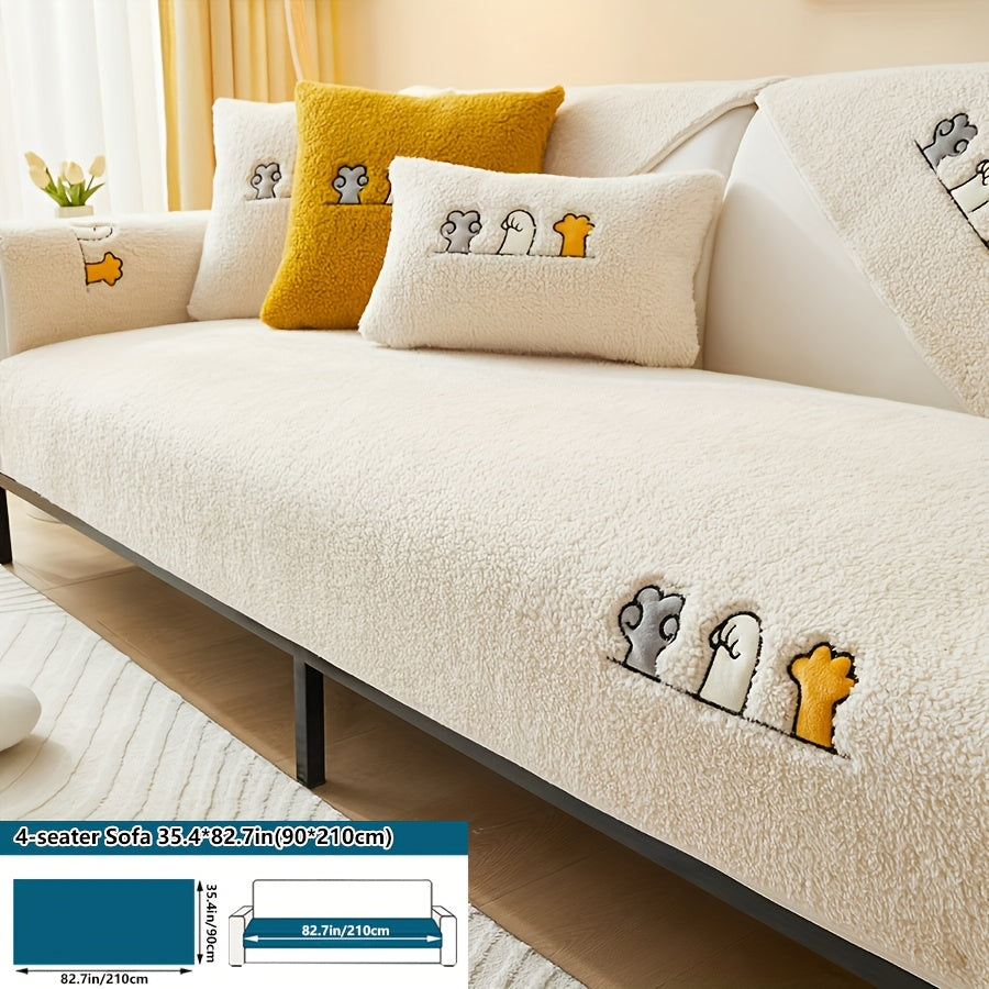 Роскошный фальшивый овечий плюшевый чехол для дивана на зиму, дружелюбный к домашним животным и стираемый в машине. Обеспечивает защиту от царапин и подходит для диванов от одного до четырех мест, а также для кроватей и подушек.