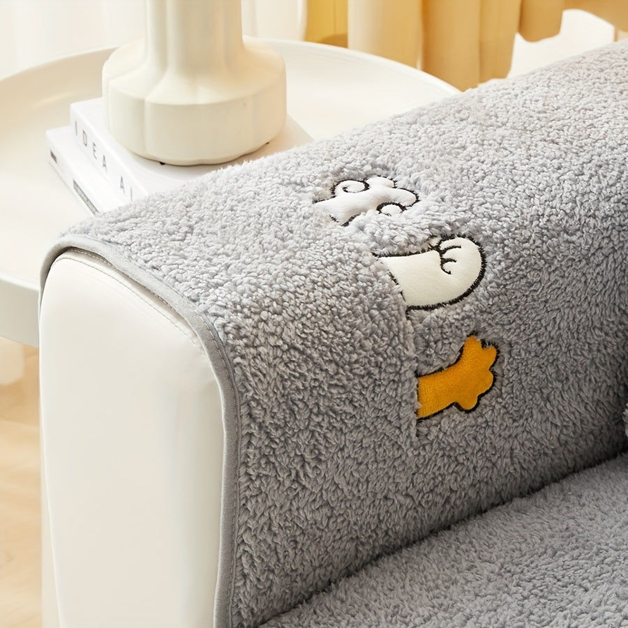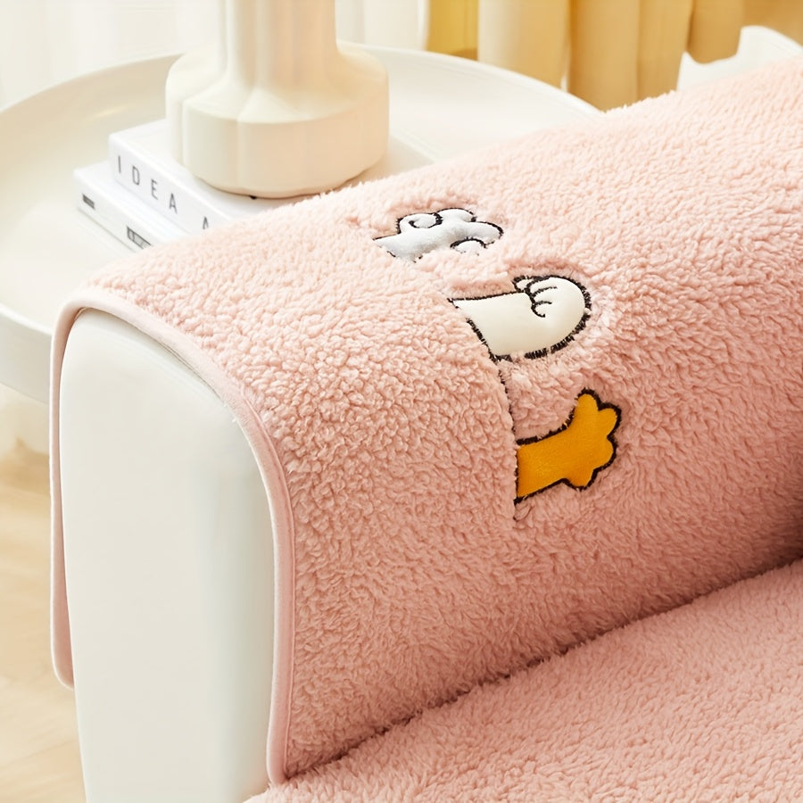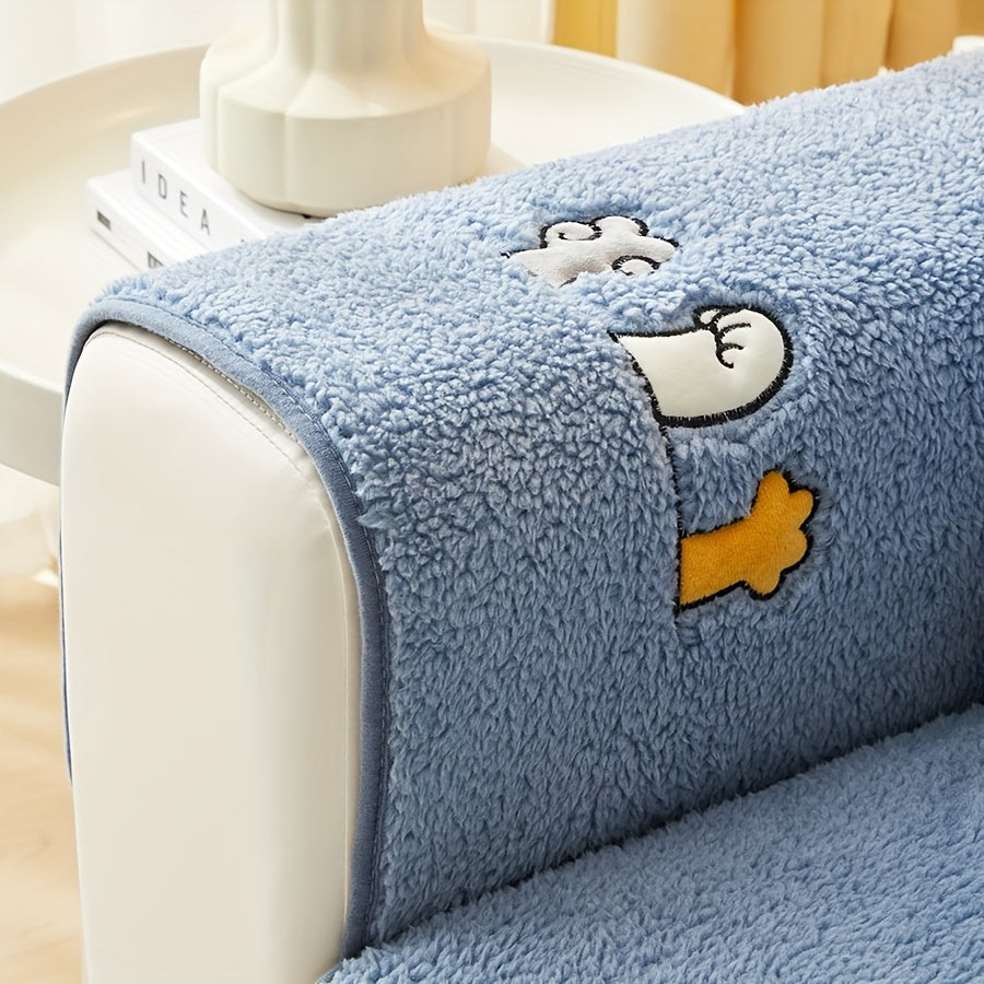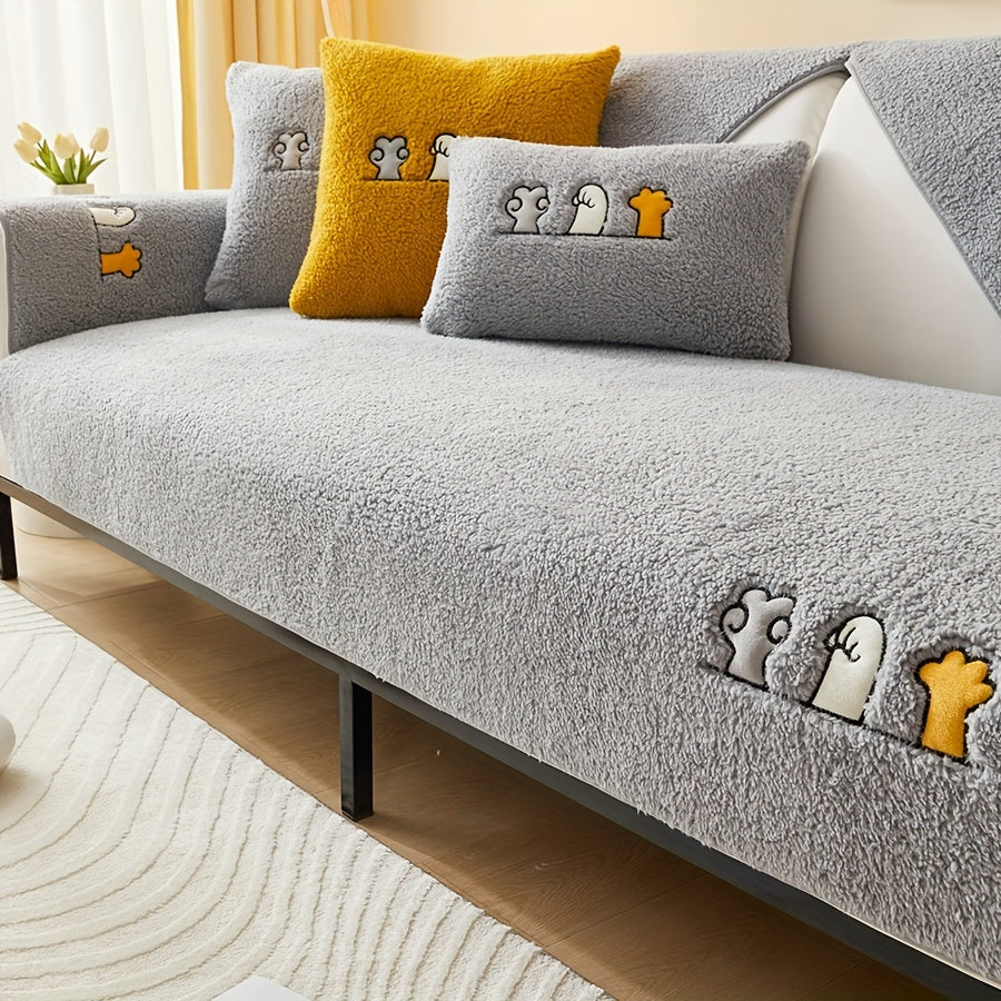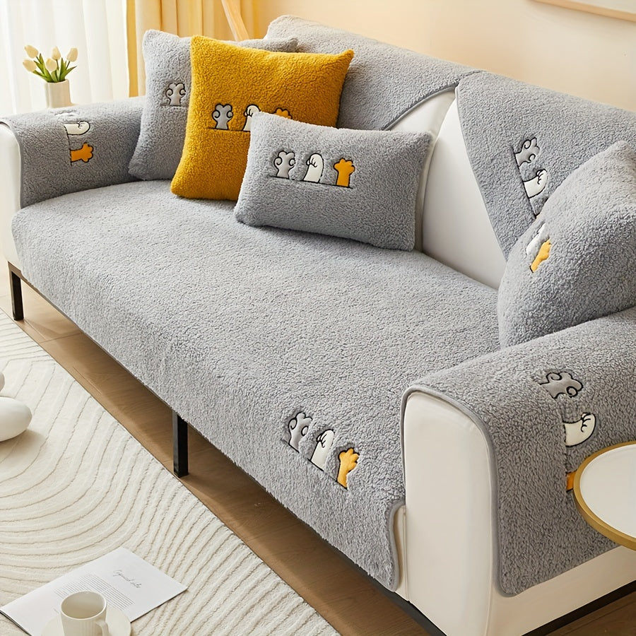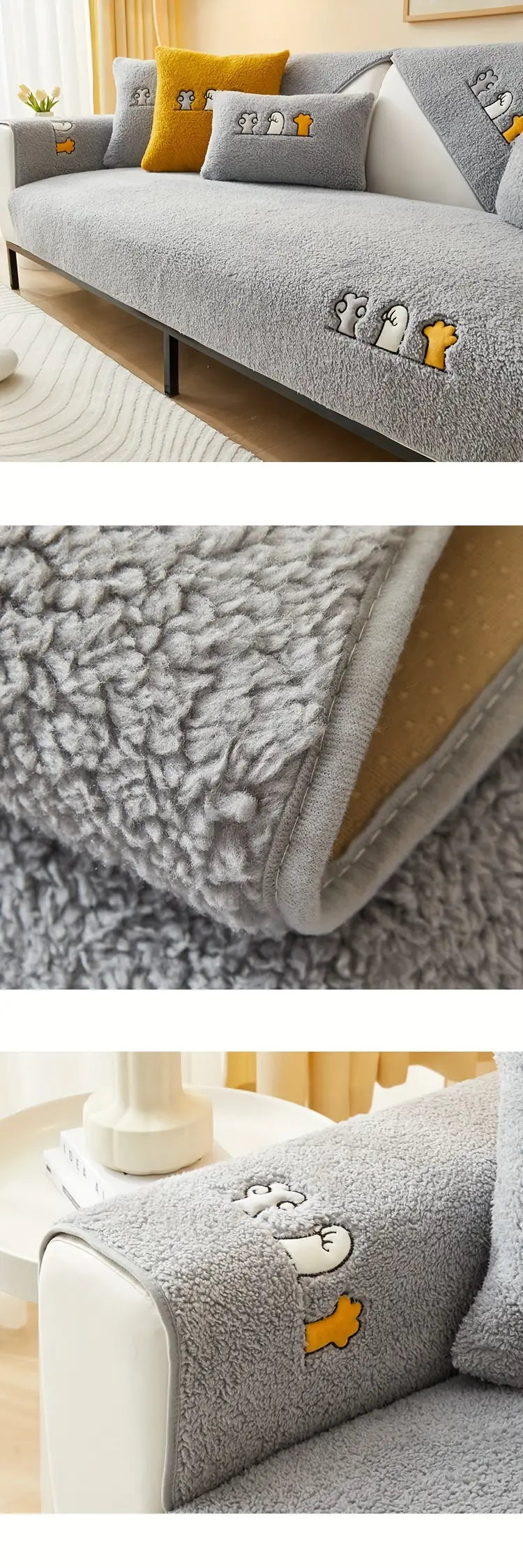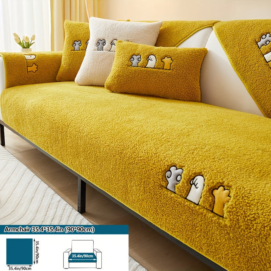 Роскошный фальшивый овечий плюшевый чехол для дивана на зиму, дружелюбный к домашним животным и стираемый в машине. Обеспечивает защиту от царапин и подходит для диванов от одного до четырех мест, а также для кроватей и подушек.