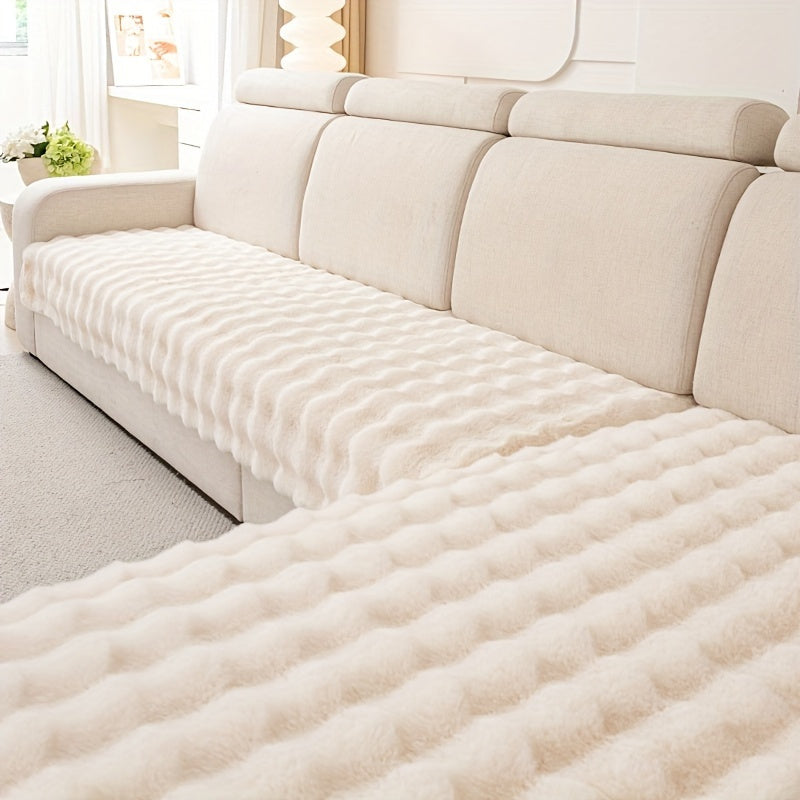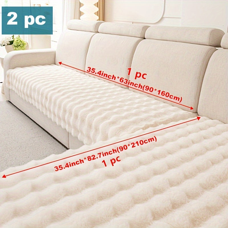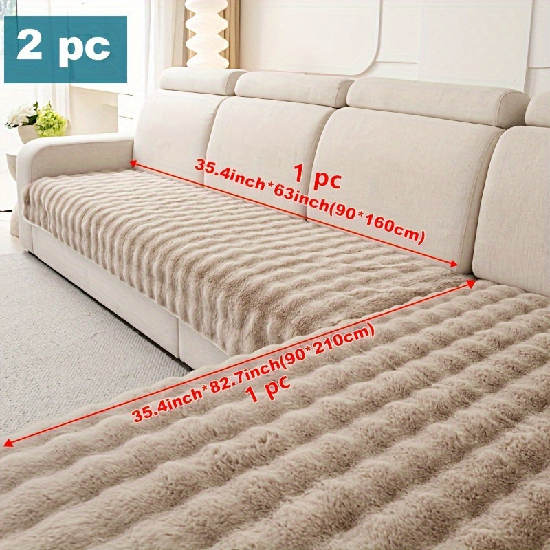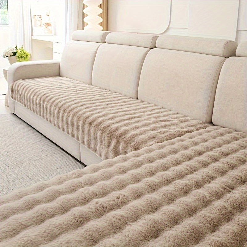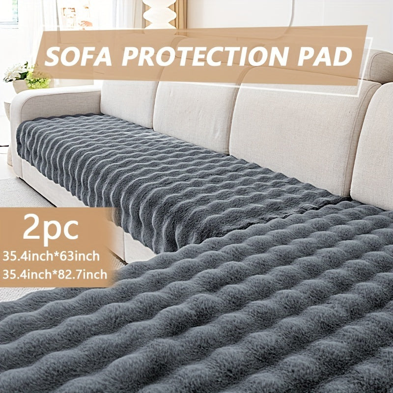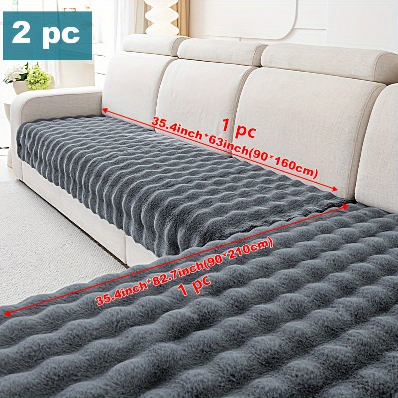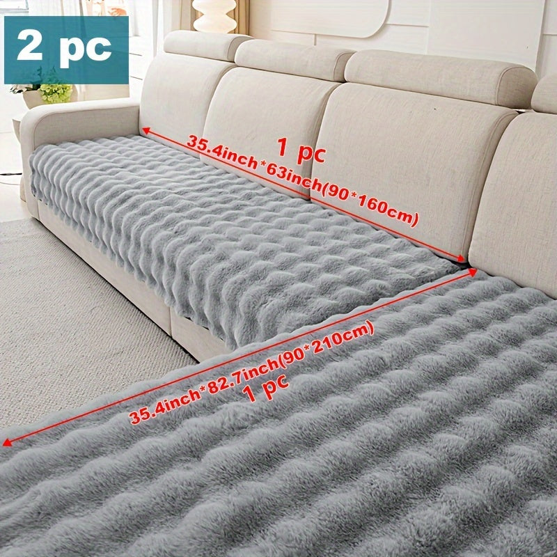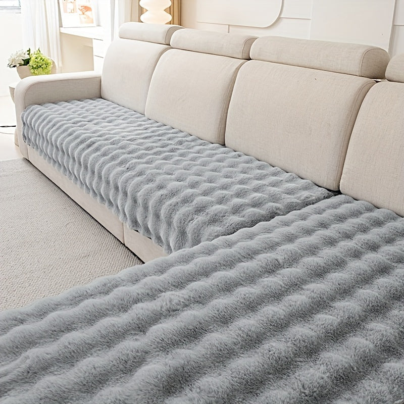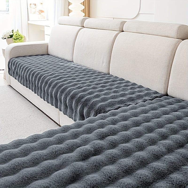 Набор защитных чехлов для диванов из искусственного кроличьего меха на 2/3/4 места, нескользящие, моющиеся в машине, серый
