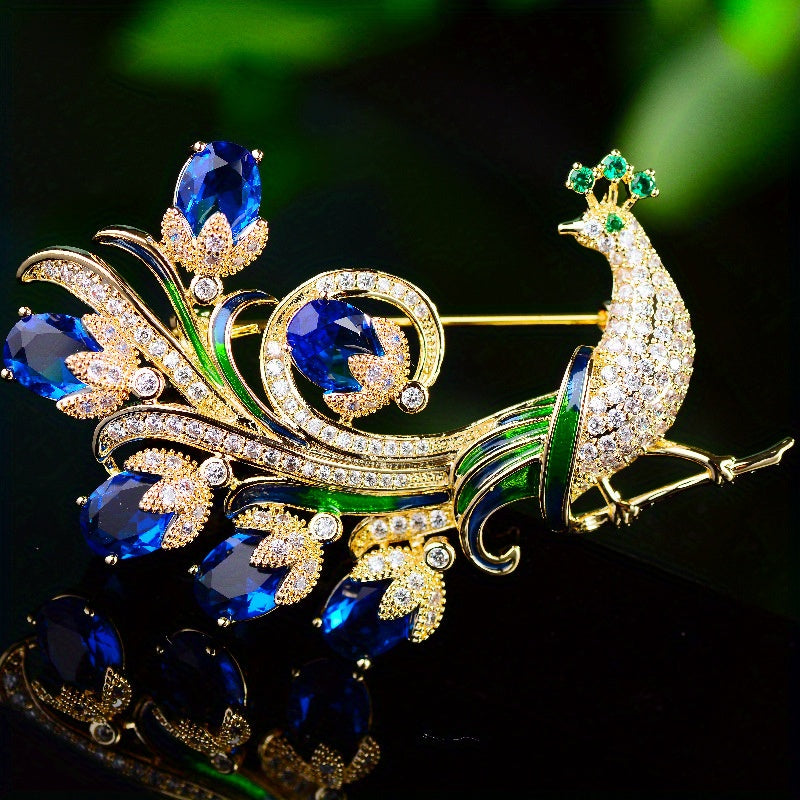 Роскошная брошка в виде павлина с стразами, имеющая яркий открытый дизайн, идеально подходит для женских пальто и кардиганов.