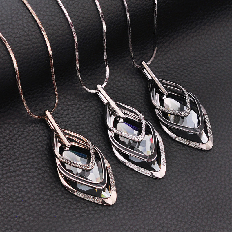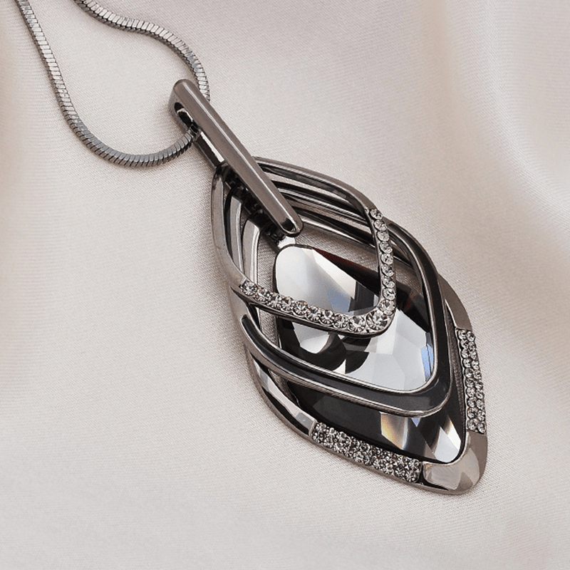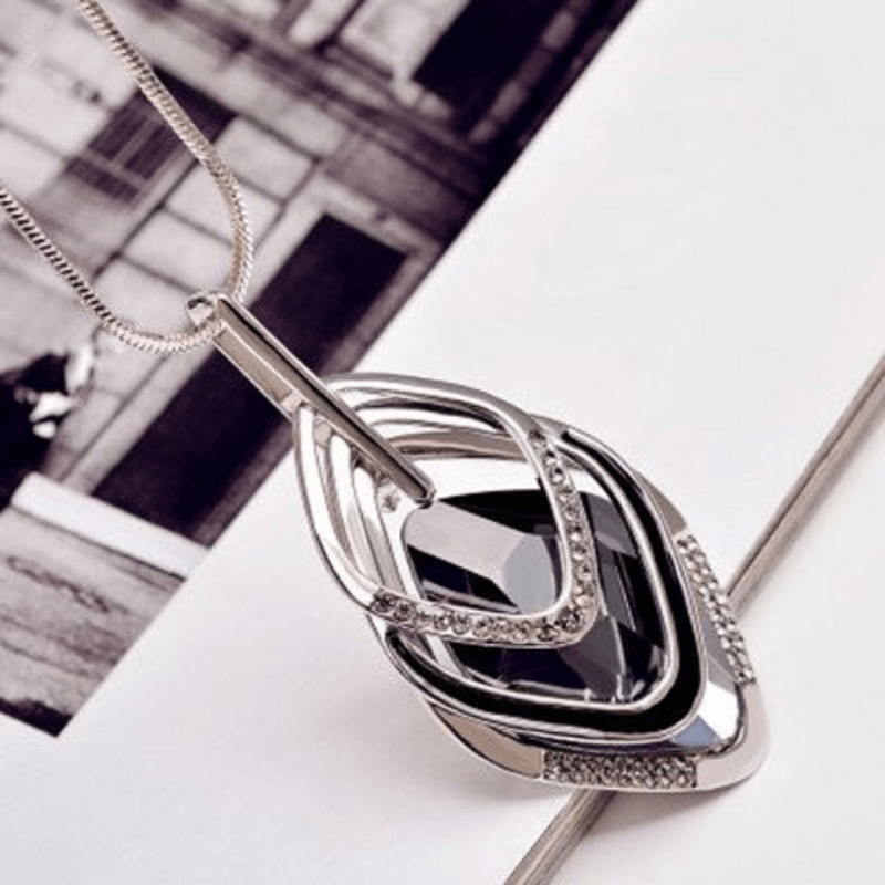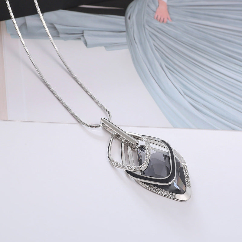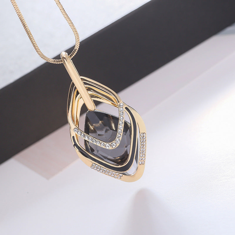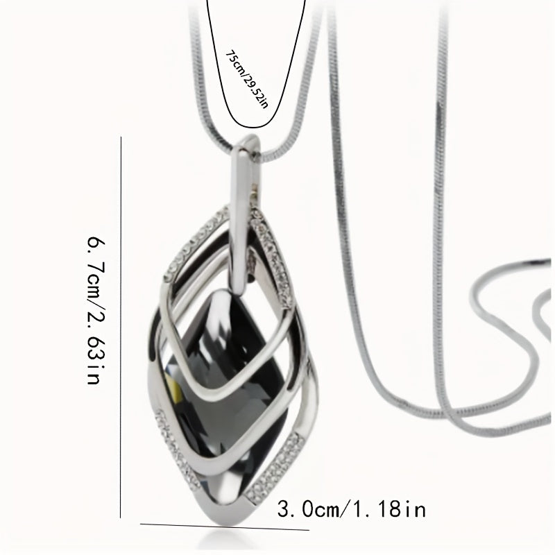 Роскошное ожерелье с геометрическим кулоном из страз и длинной цепочкой для свитеров