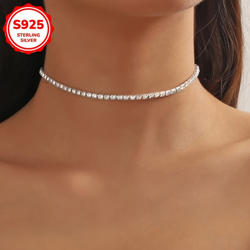 Роскошное ожерелье из стерлингового серебра S925 с синтетическим кубическим цирконием и камнем месяца марта, идеально подходит для повседневной носки или особых случаев, идеально для стиля отдыха в любое время года.