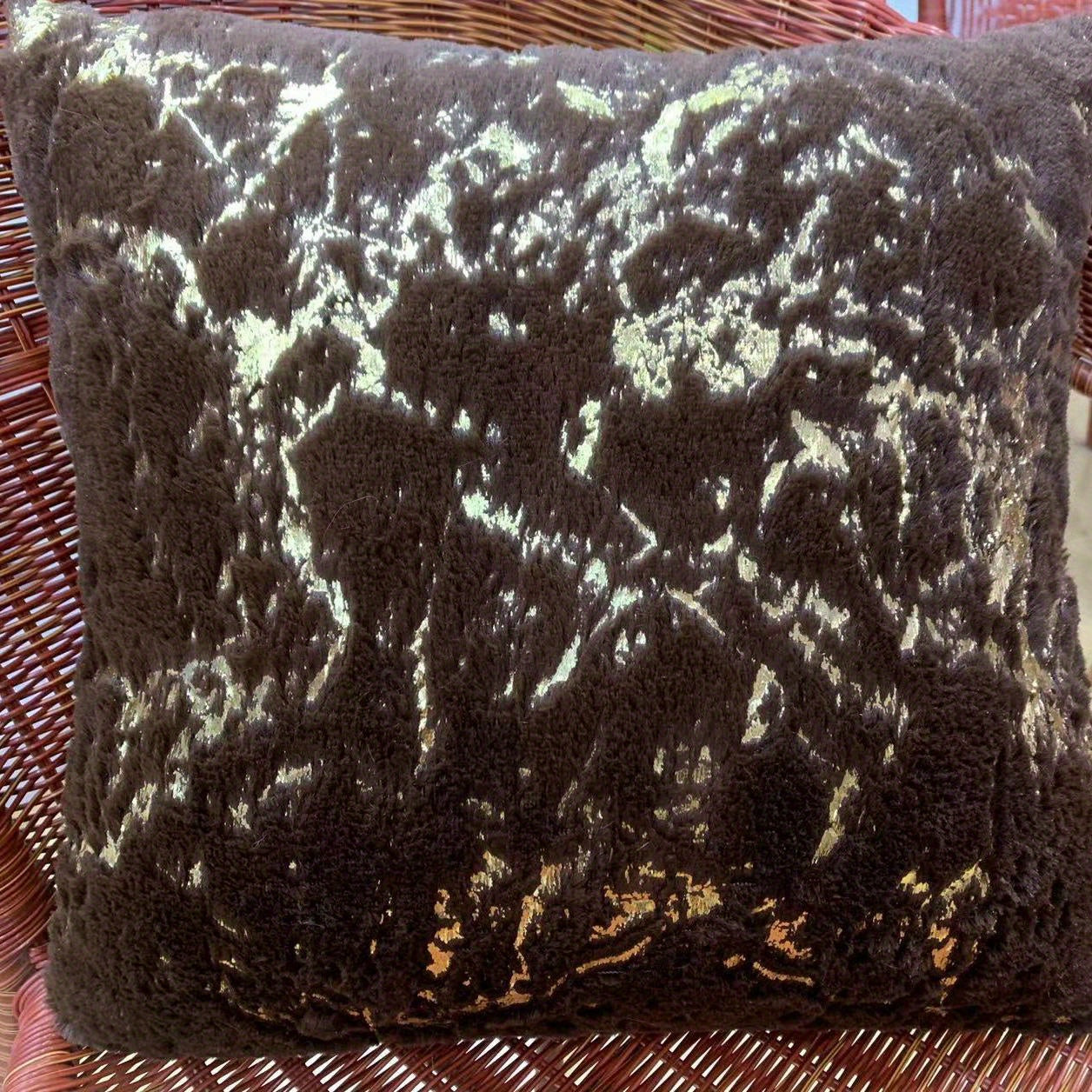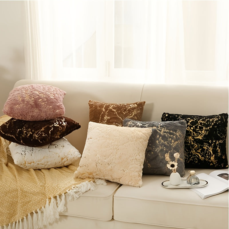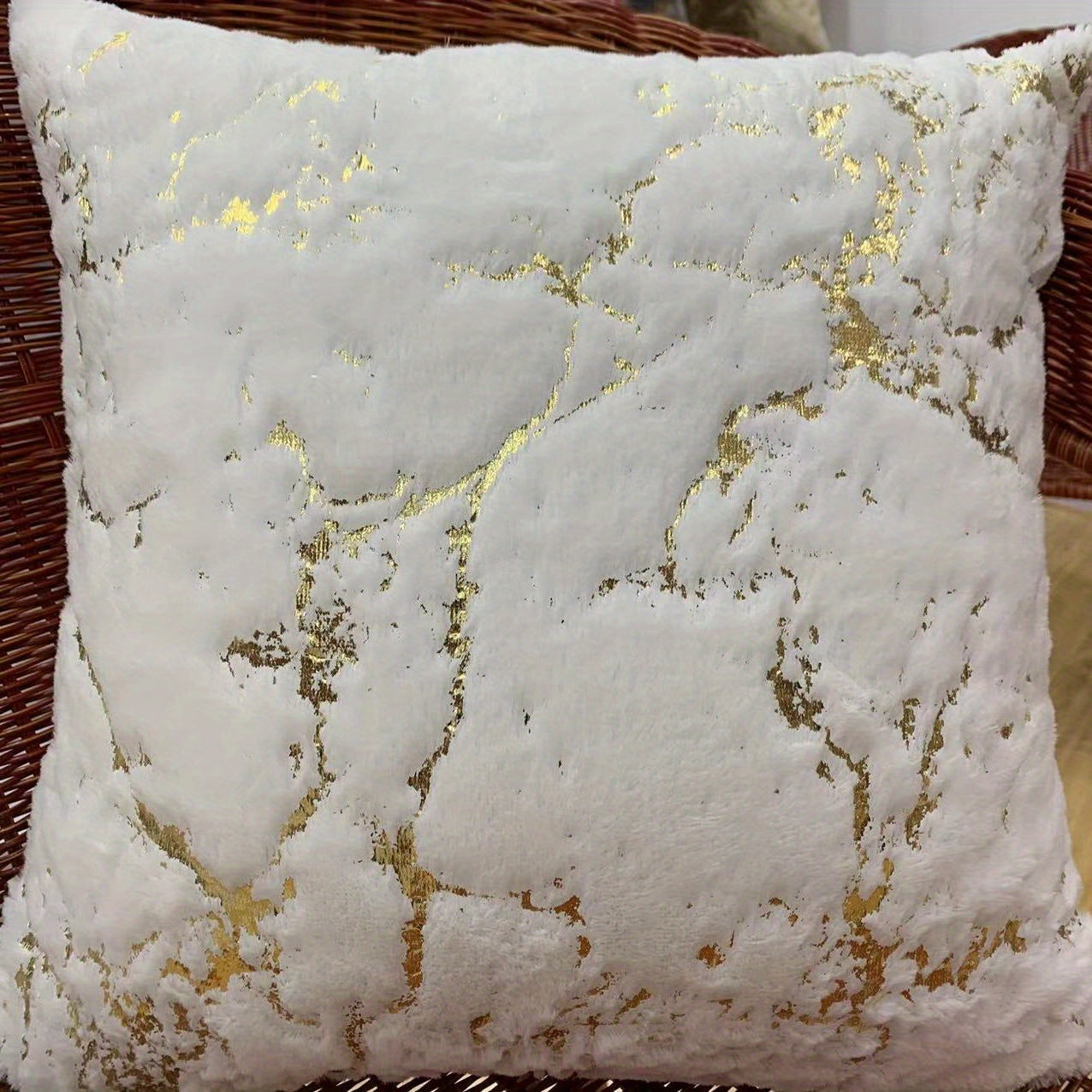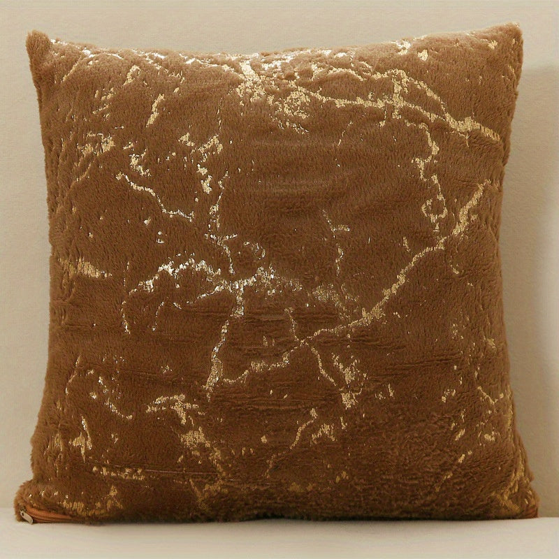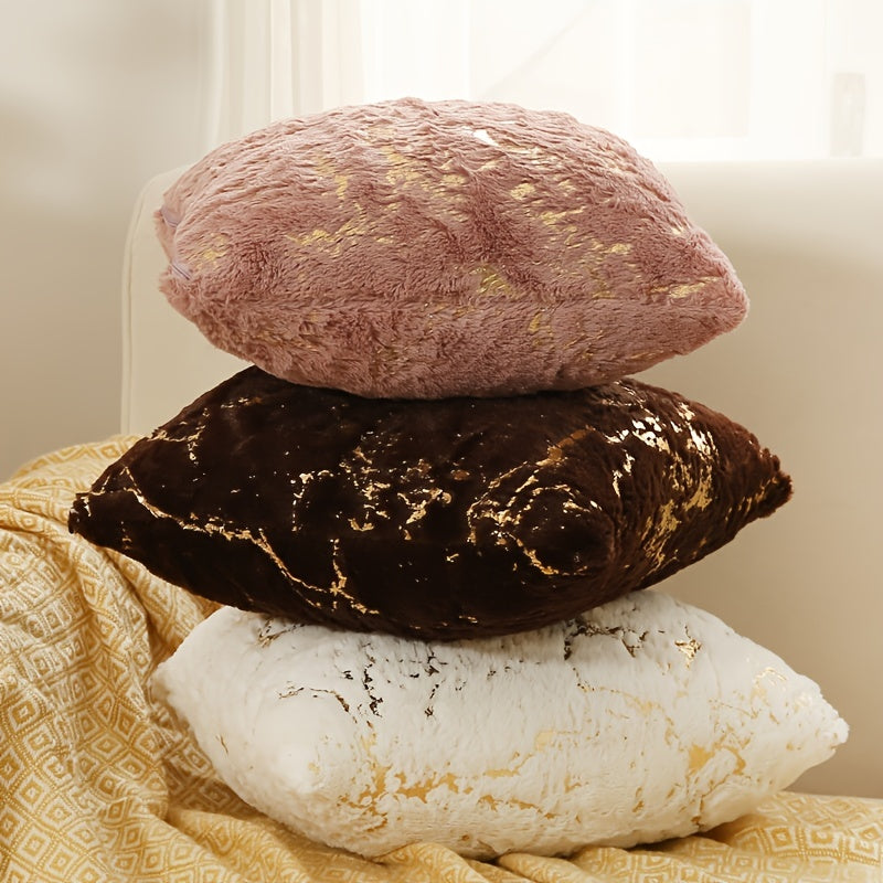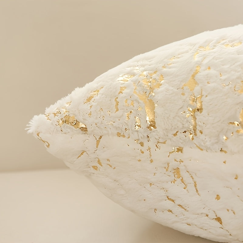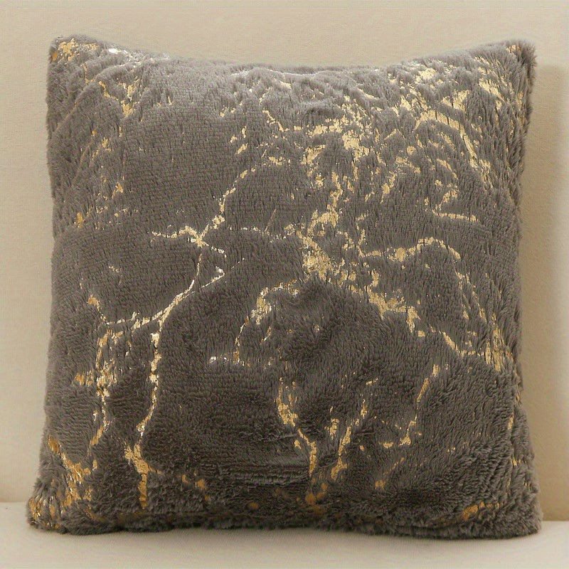Роскошная подушка с чехлом из искусственного меха с позолоченными полосами, с застежкой на молнии и машинной стиркой. Идеально подходит для дивана, спальни, автомобиля. Размер: 45,72x45,72 см.