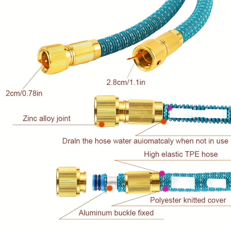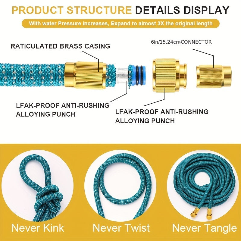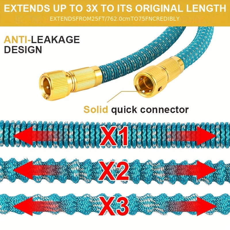 Расширяемый резиновый садовый шланг для полива и мойки автомобиля с универсальными соединителями
