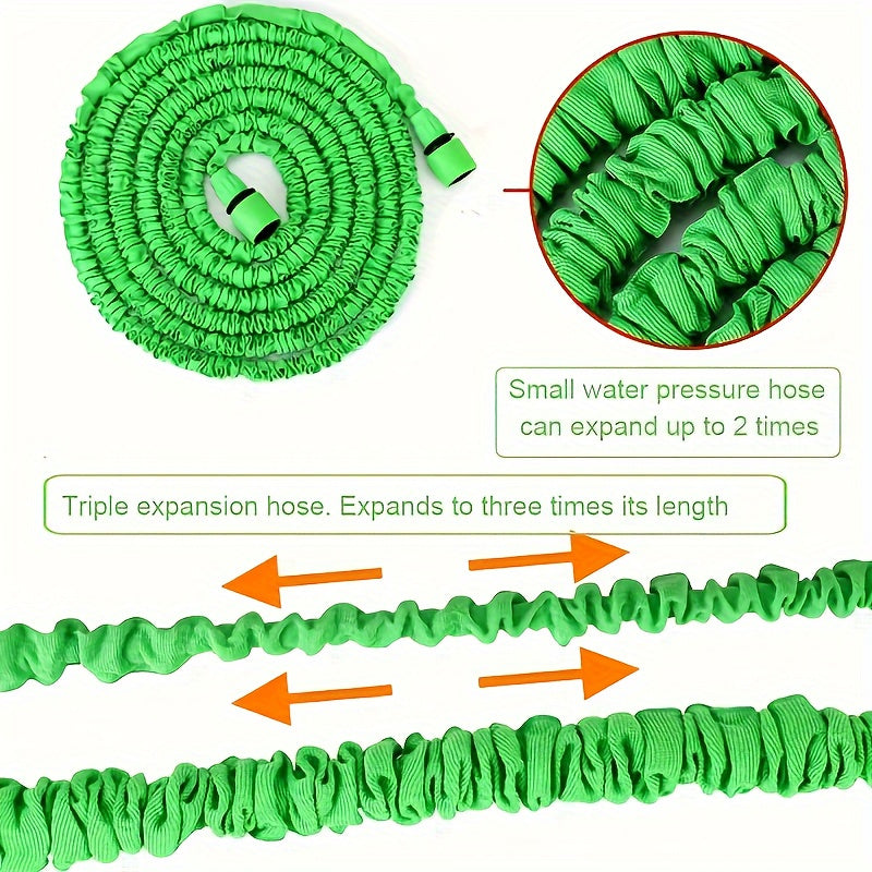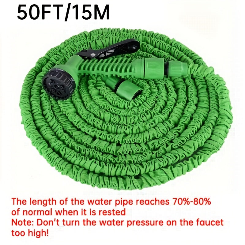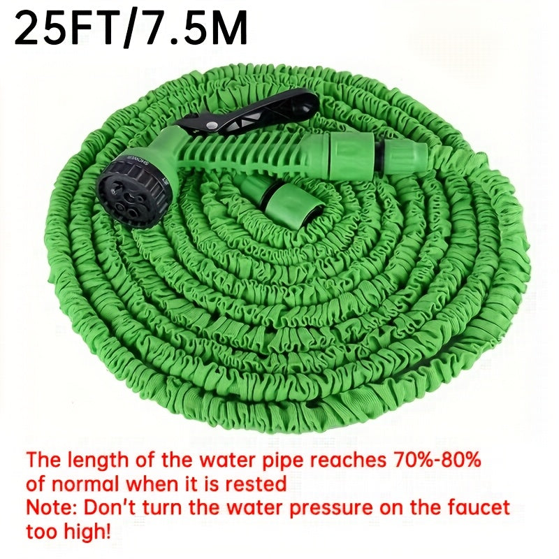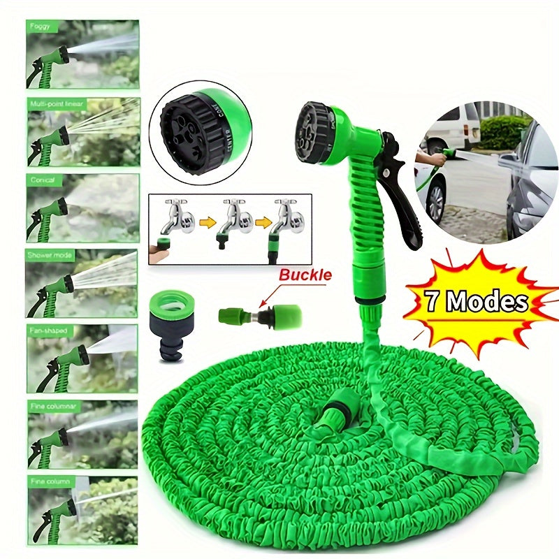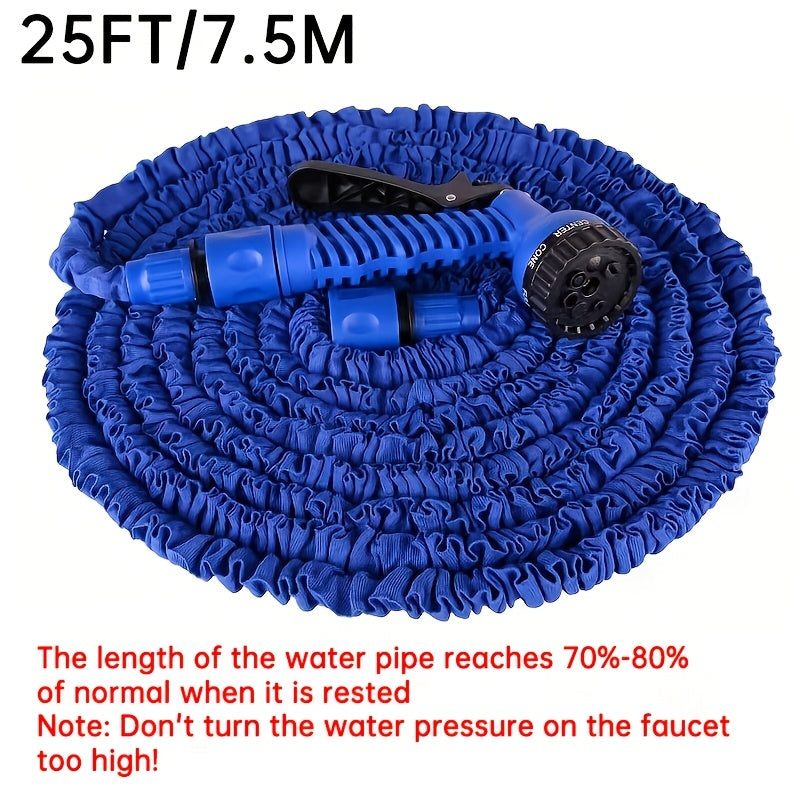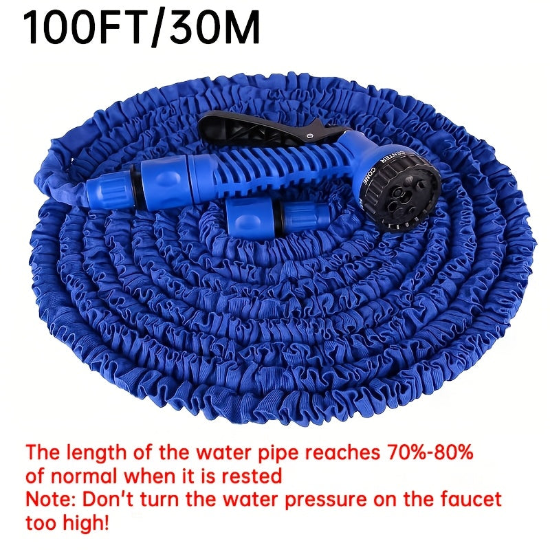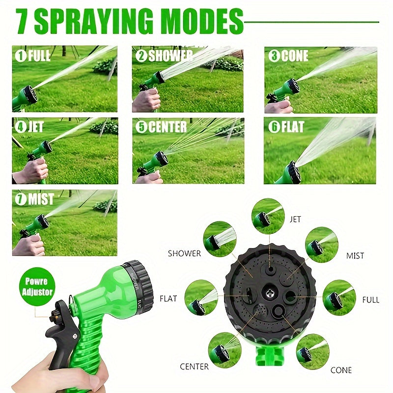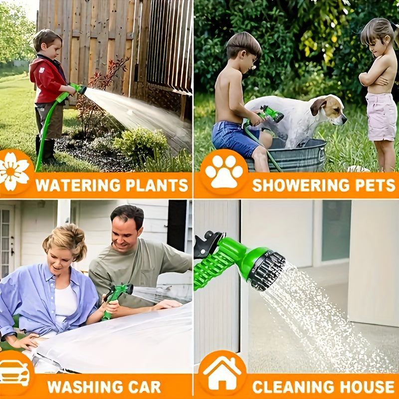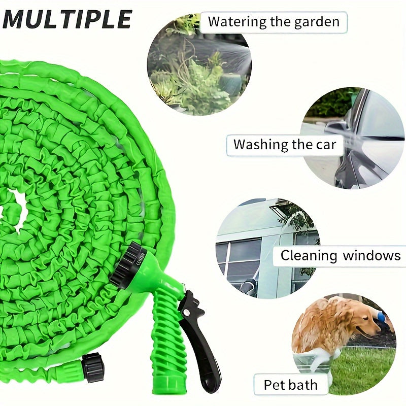 Волшебный выдвижной садовый шланг с высоким давлением и многофункциональными возможностями, включает в себя выдвижную насадку, резиновый материал, соединители, инструмент для чистки и удаление пыли. Поставляется в