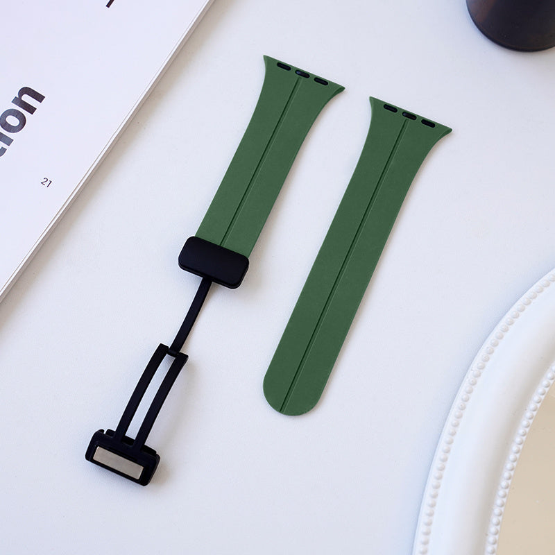 Магнитный силиконовый ремешок для iWatch с складной пряжкой, совместимый с Series 9-3 в различных размерах.