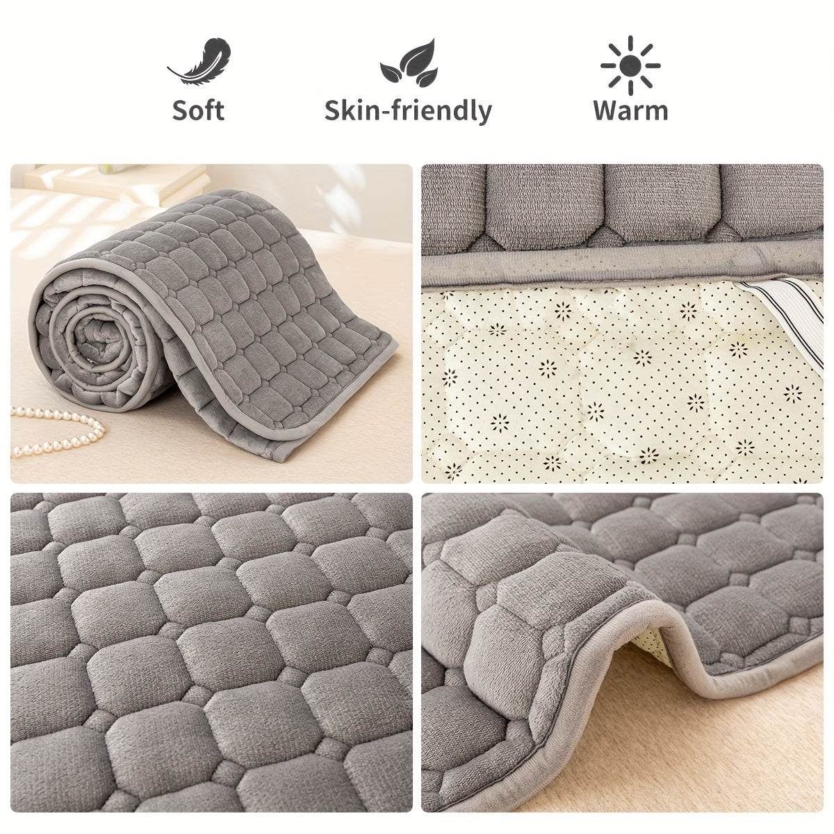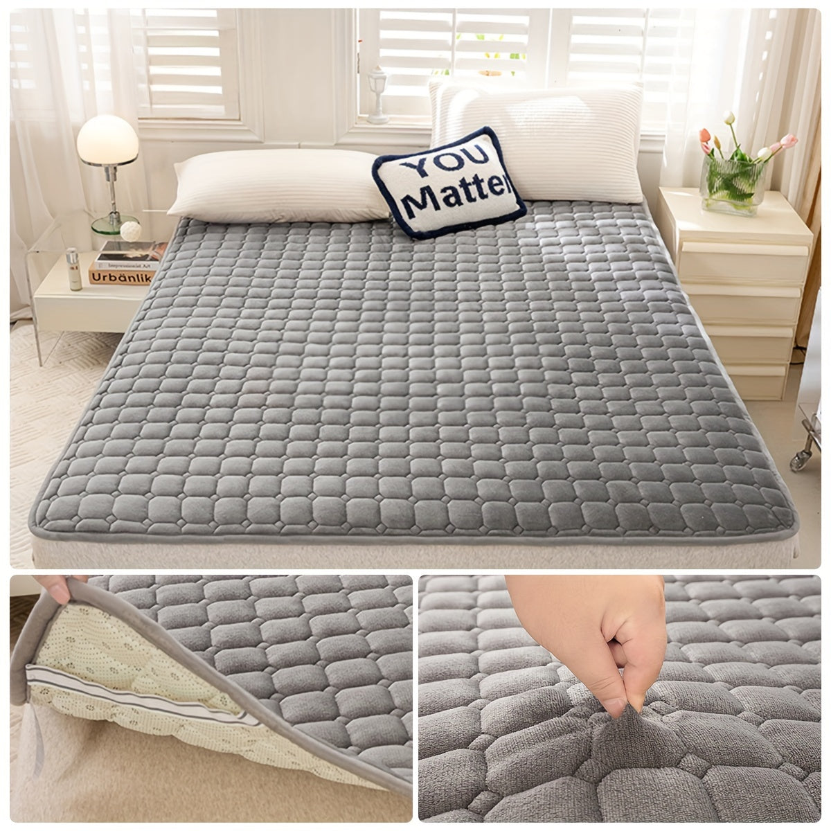 Наматрасник: 1 шт. Мягкий стеганый футонный матрас (подушка не включена) - Толстый, дружелюбный к коже, складной для комфорта. Идеально подходит для кемпинга, гостевых комнат, общежитий. Легко транспортировать и устанавливать.