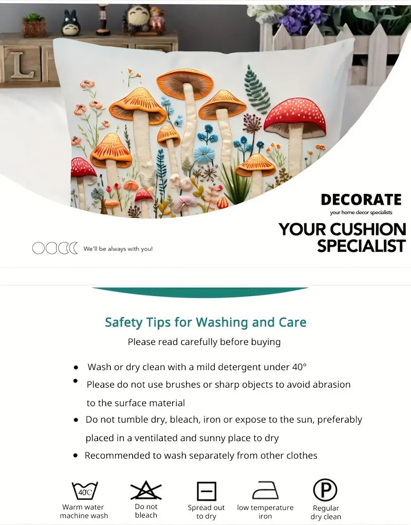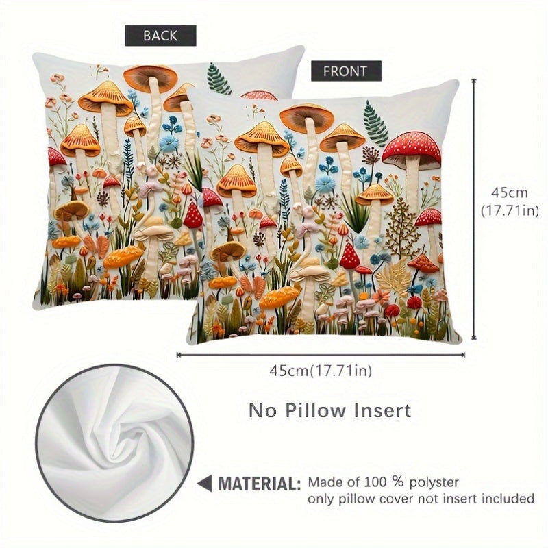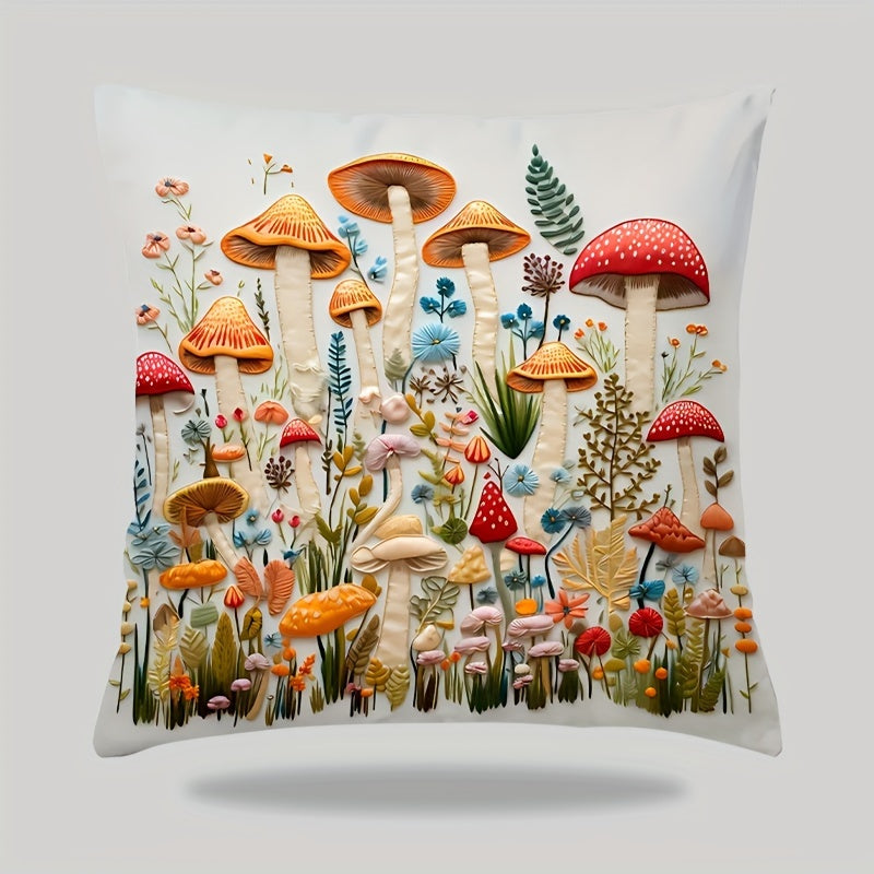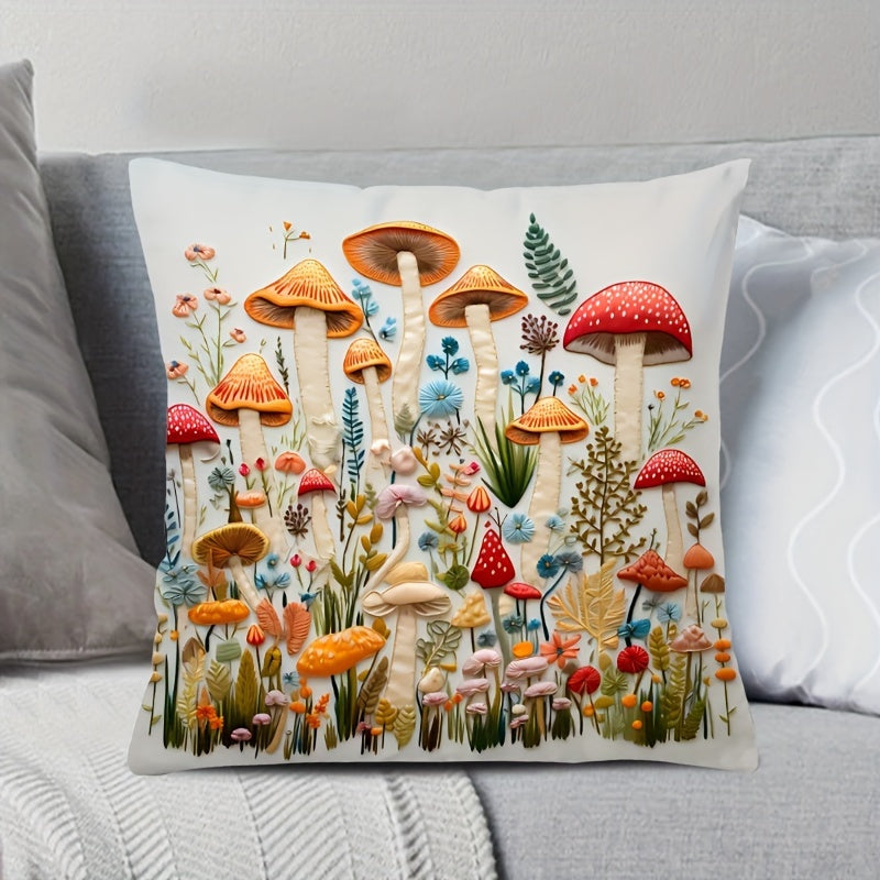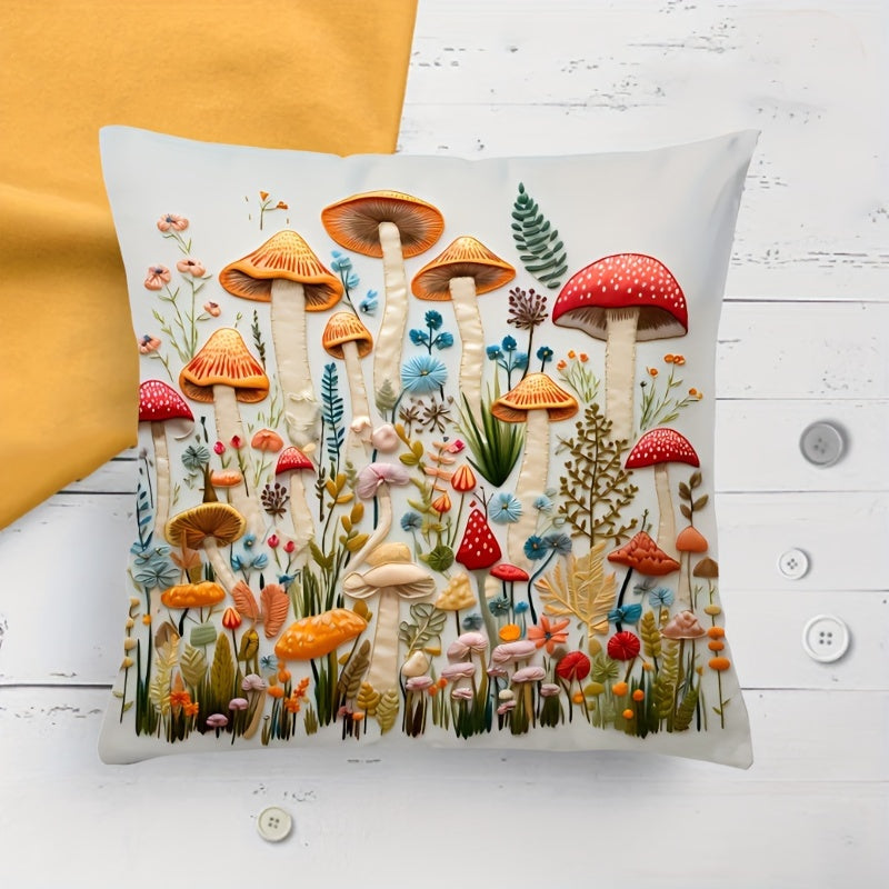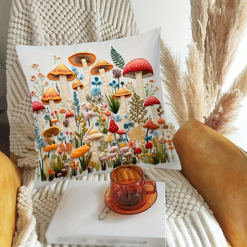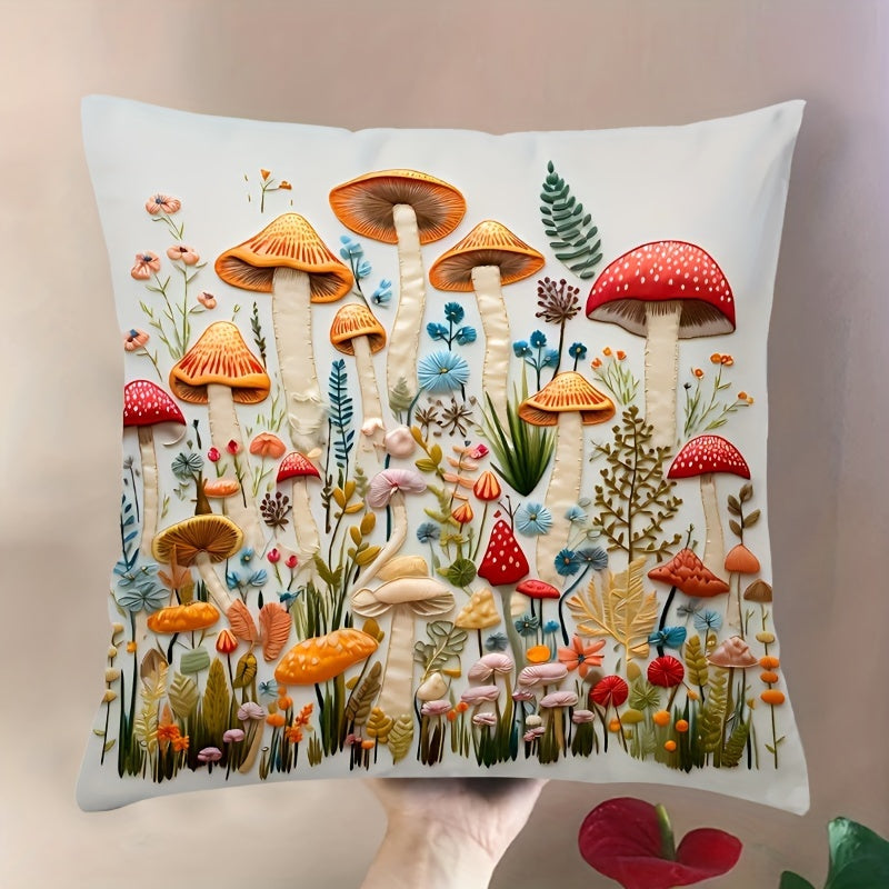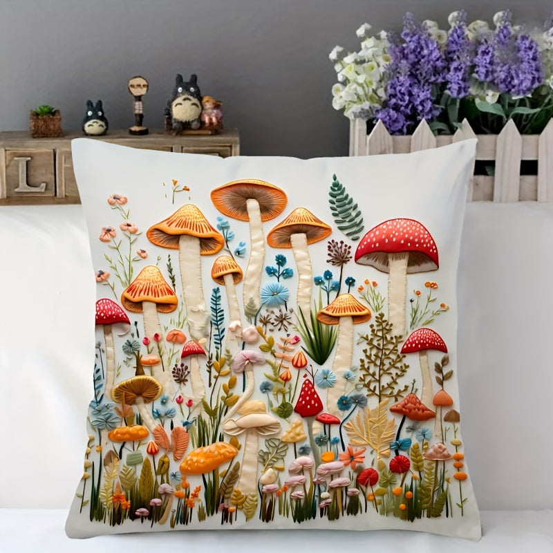 Полиэстеровая наволочка на подушку с цветочным и грибным принтом, декоративная подушка для гостиной и спальни, 1 шт.