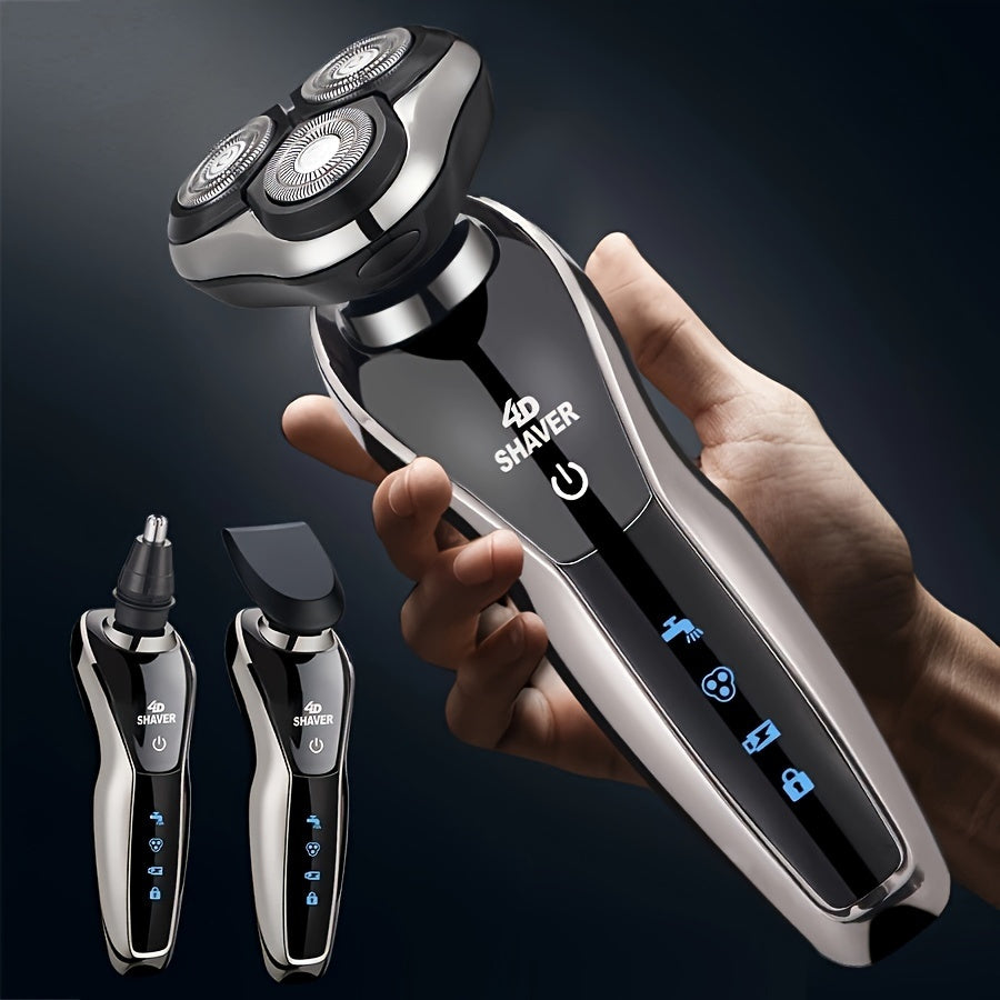 Мужской электробритва 3-в-1 с триммером для носовых волос, перезаряжаемый через USB, 3D-плавающее лезвие