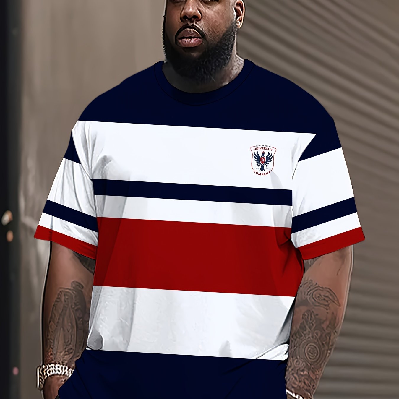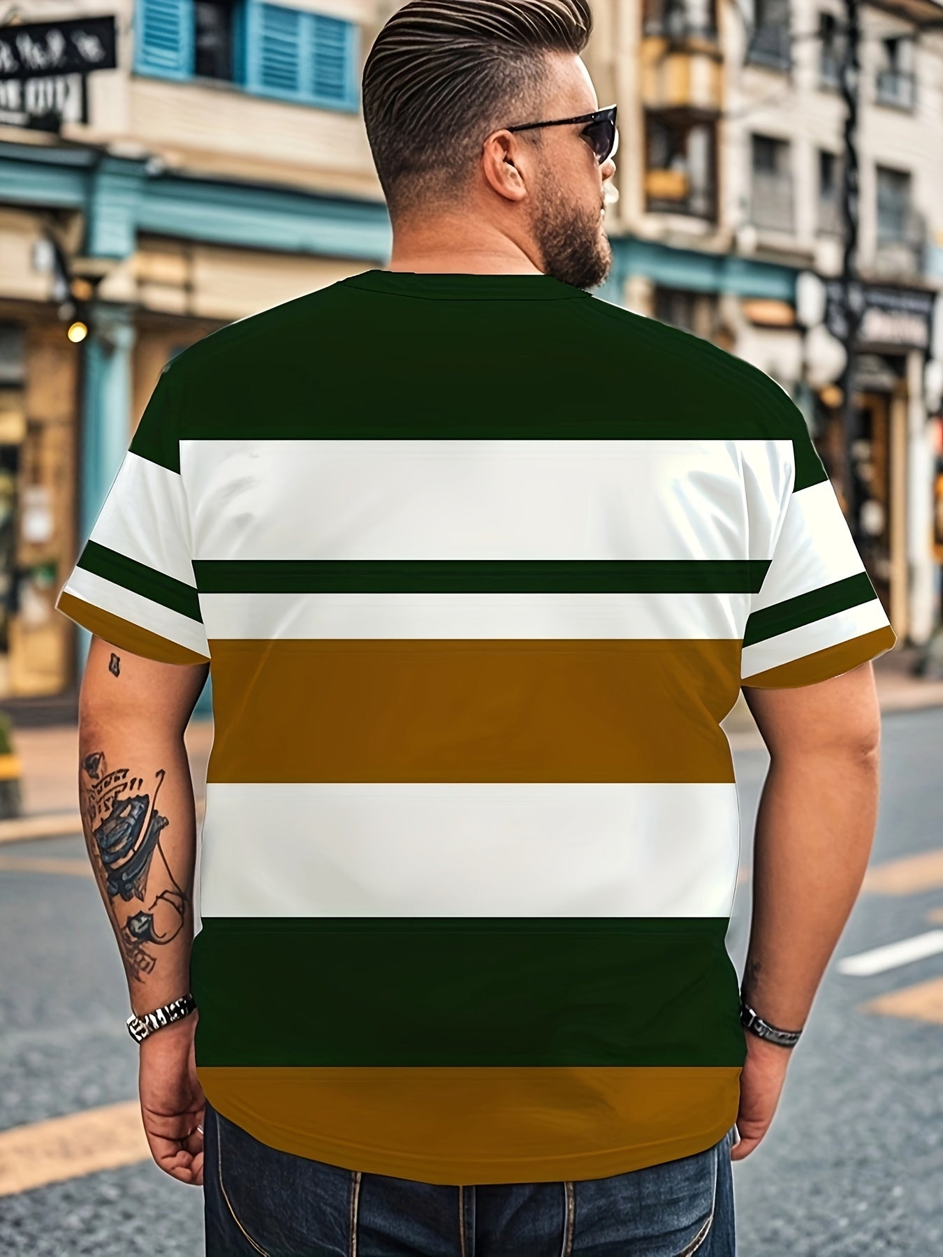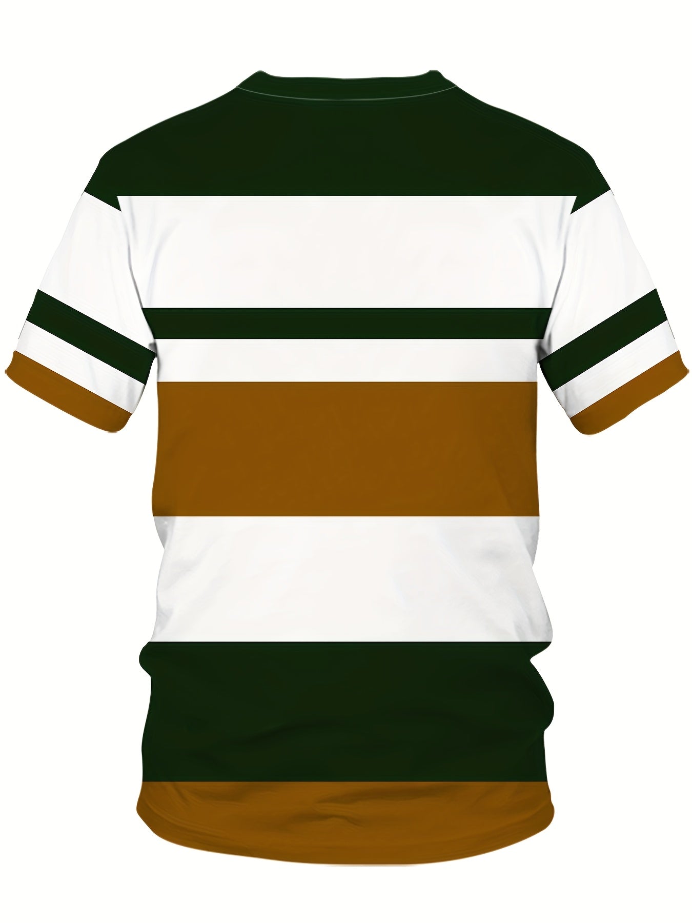 Мужская футболка с 3D полосатым принтом, короткий рукав, круглый вырез, большой размер, полиэстеровая смесь