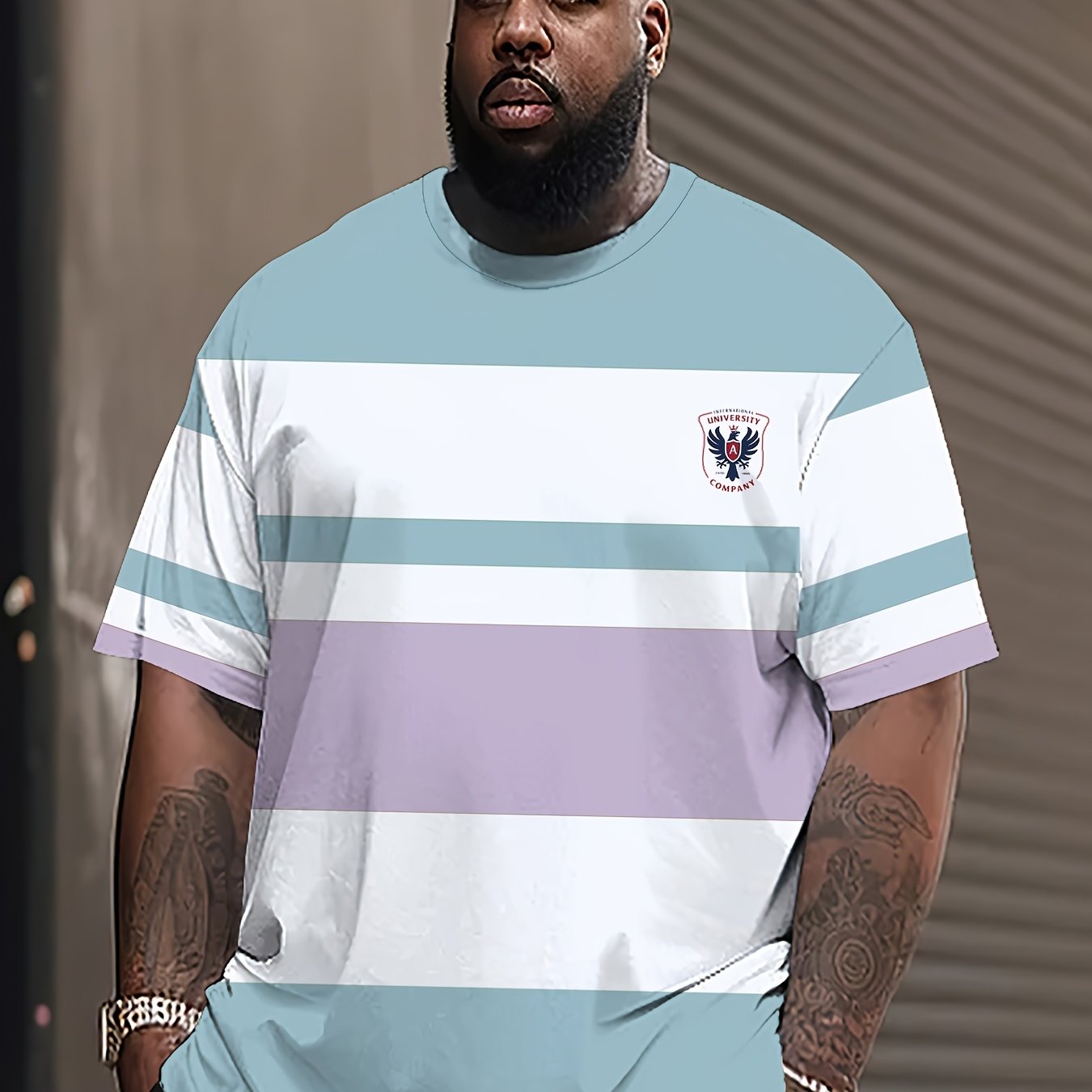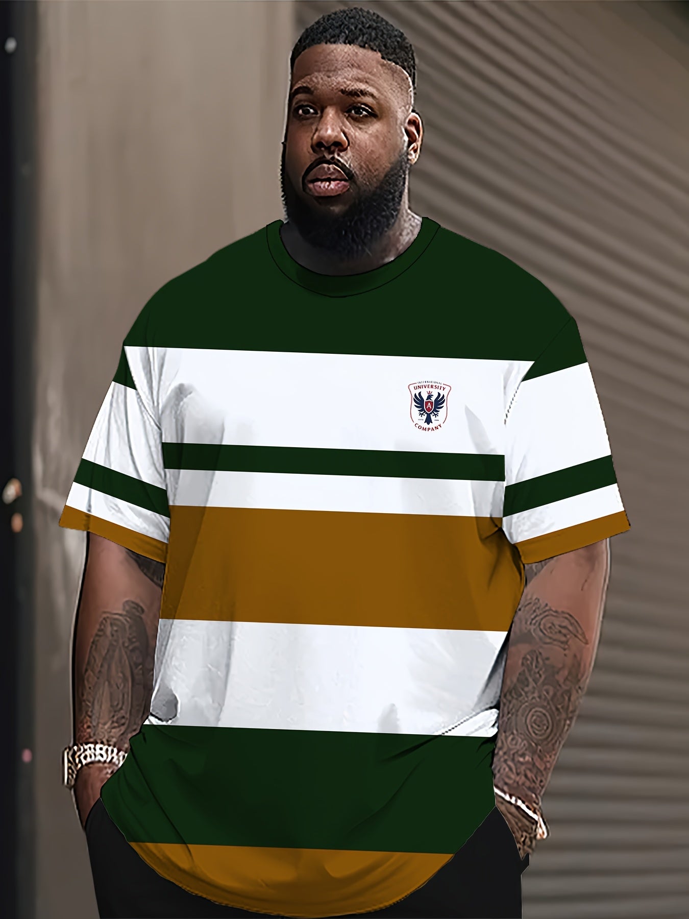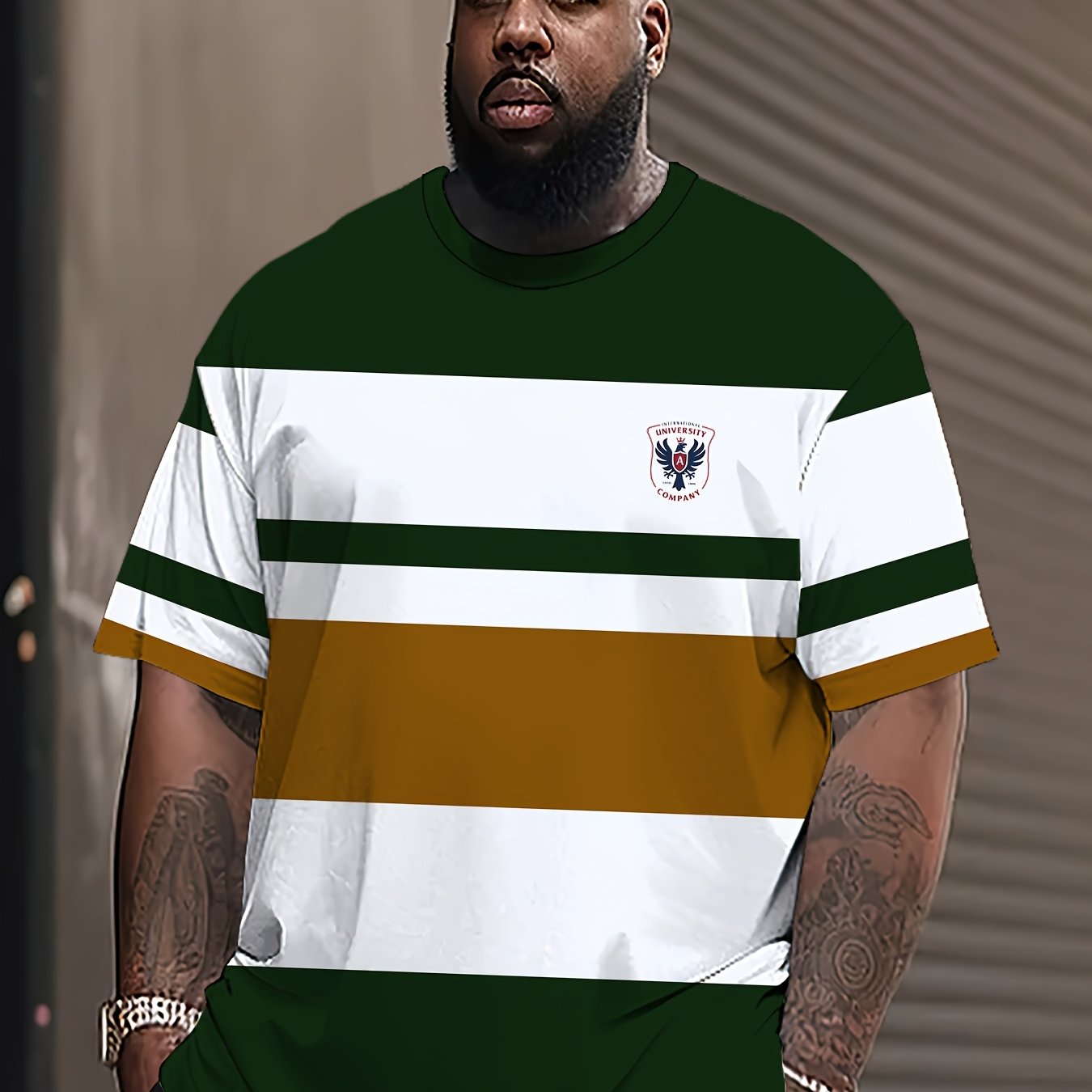 Мужская футболка с 3D полосатым принтом, короткий рукав, круглый вырез, большой размер, полиэстеровая смесь