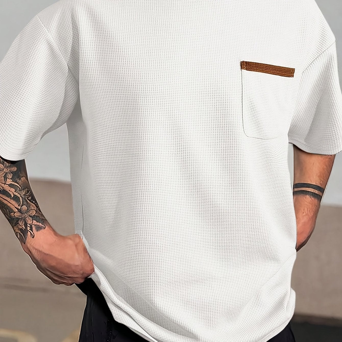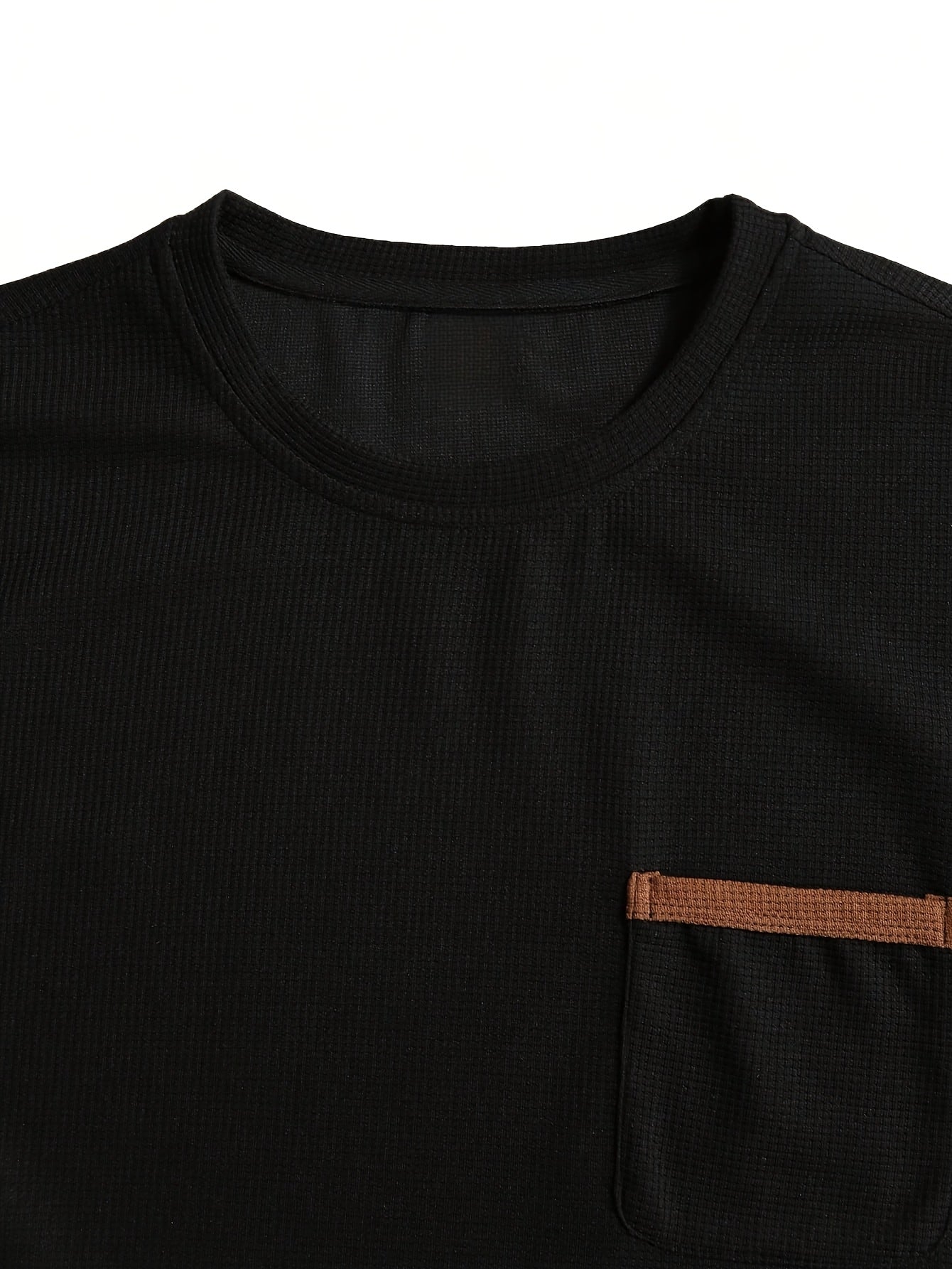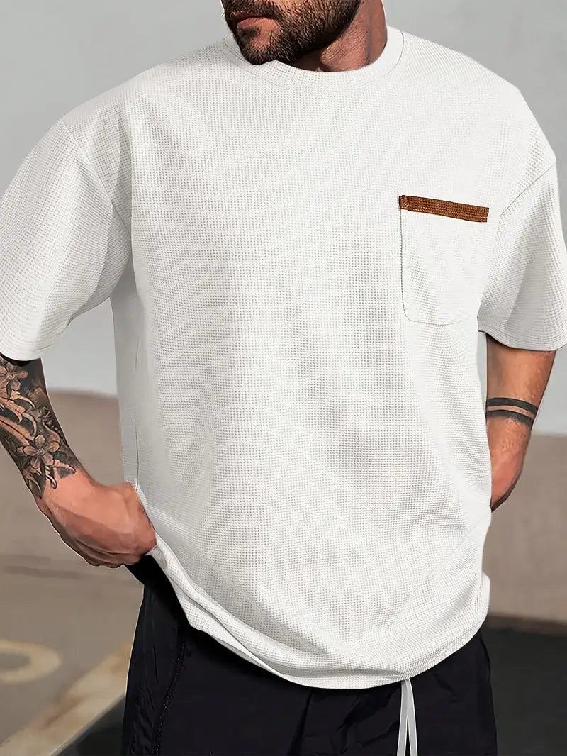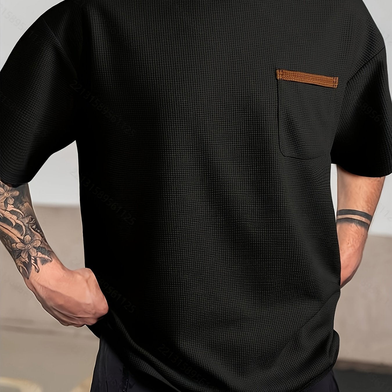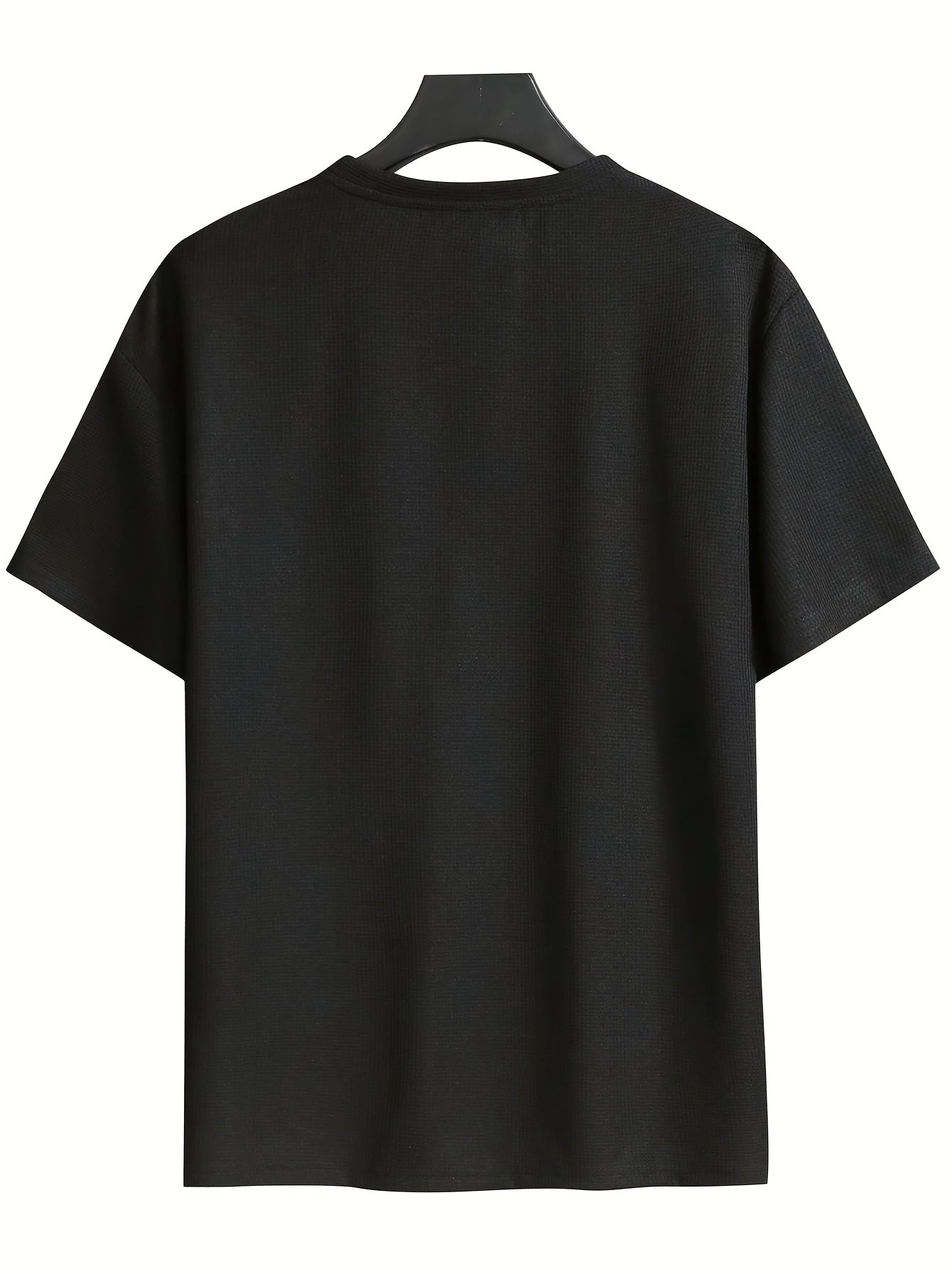 Мужская черная футболка из вафельной вязки, повседневная, с коротким рукавом, большой размер, полиэстер спандекс