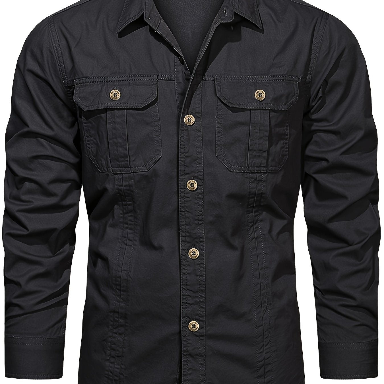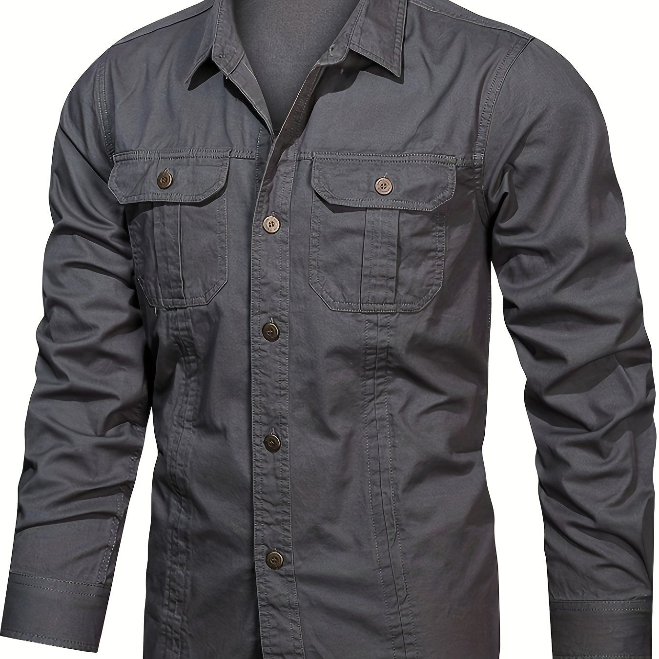 Мужская хлопковая рубашка-карго с длинным рукавом, нагрудные карманы, повседневная, для отдыха, на открытом воздухе, весна, осень