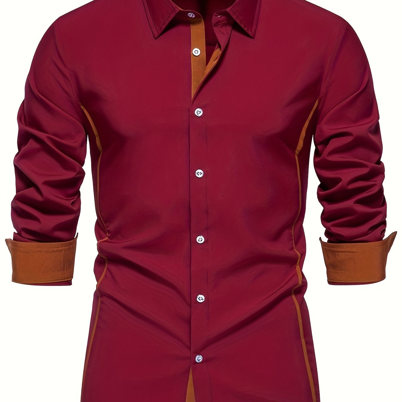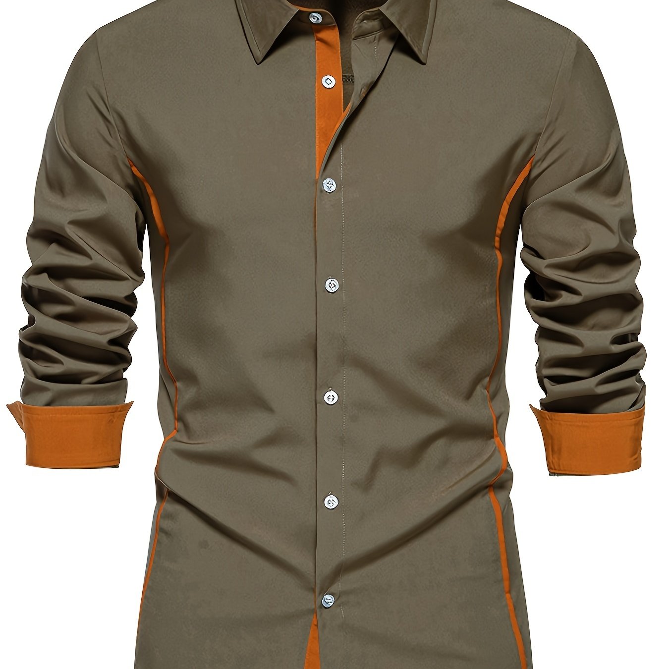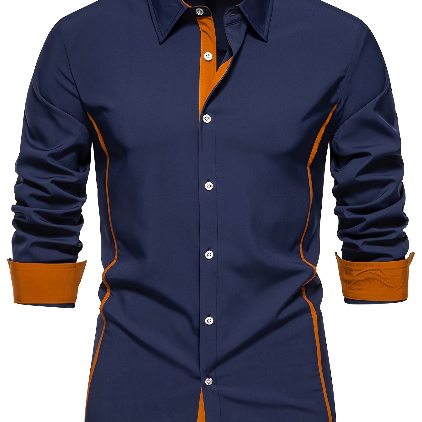 Мужская повседневная рубашка с цветными блоками и длинными рукавами, полиэстер, весна-осень