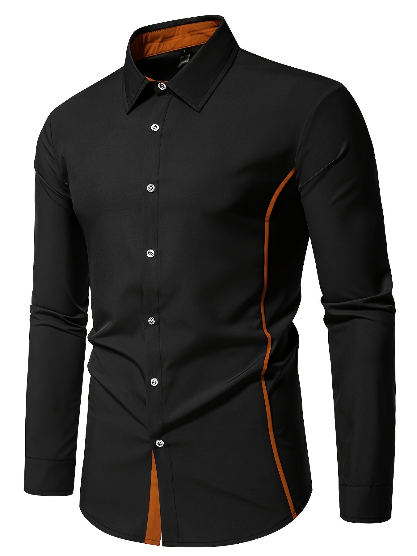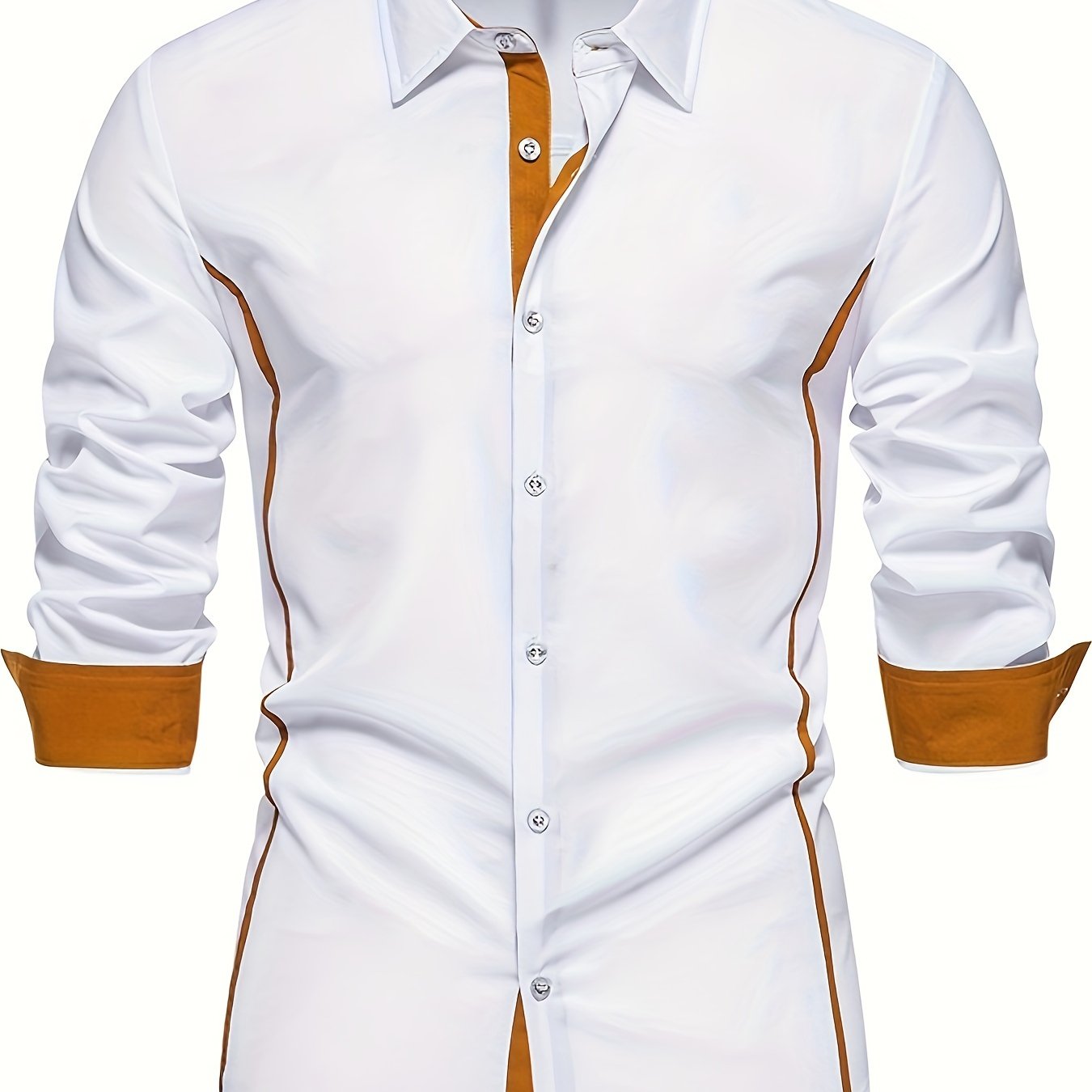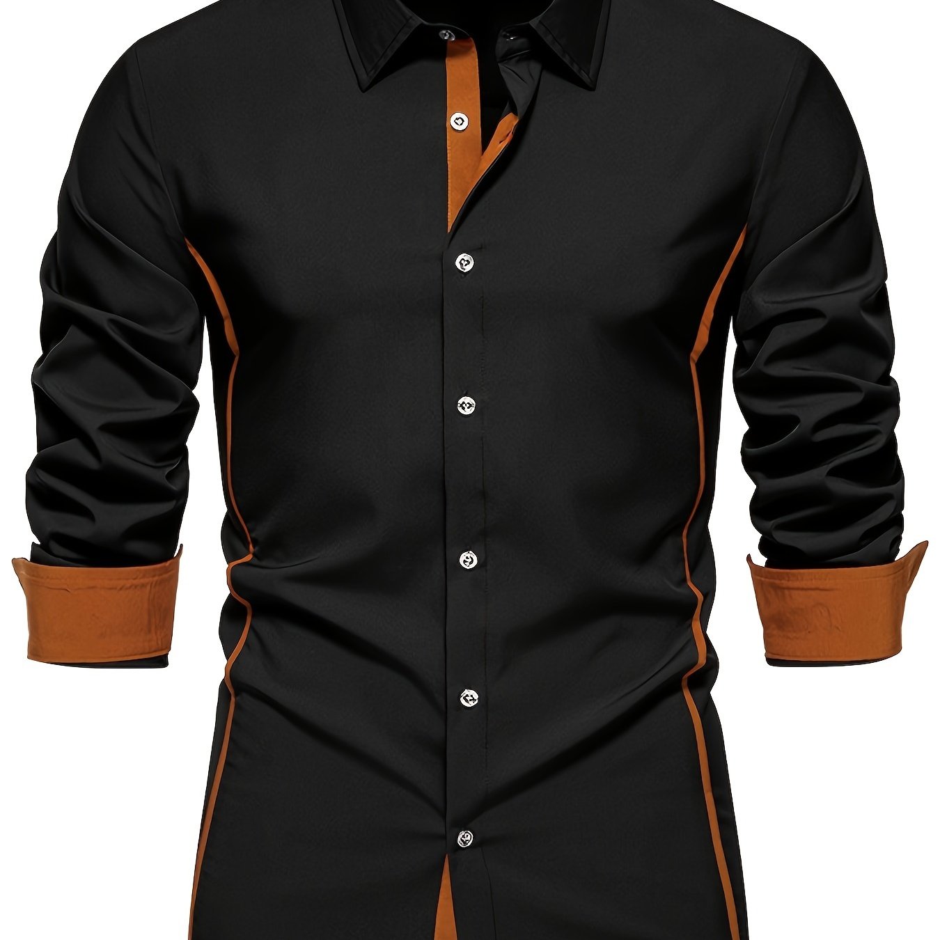Мужская повседневная рубашка с цветными блоками и длинными рукавами, полиэстер, весна-осень