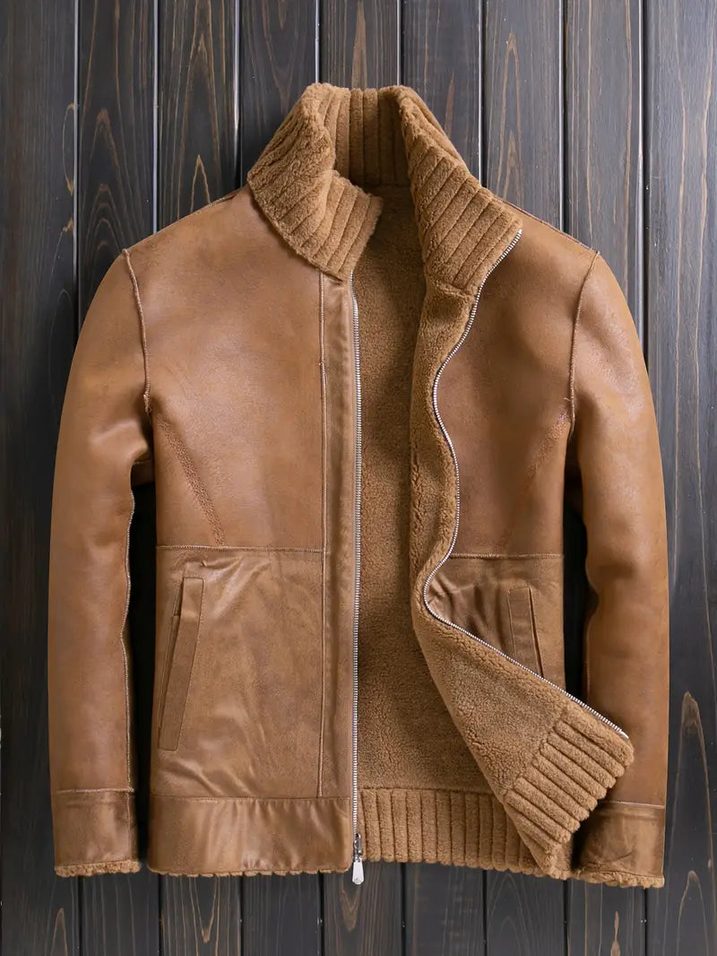 Мужская куртка из искусственного меха, шерсть, полиэстер, однотонный, с воротником-стойкой, на молнии, устойчивость к холоду, для улицы
