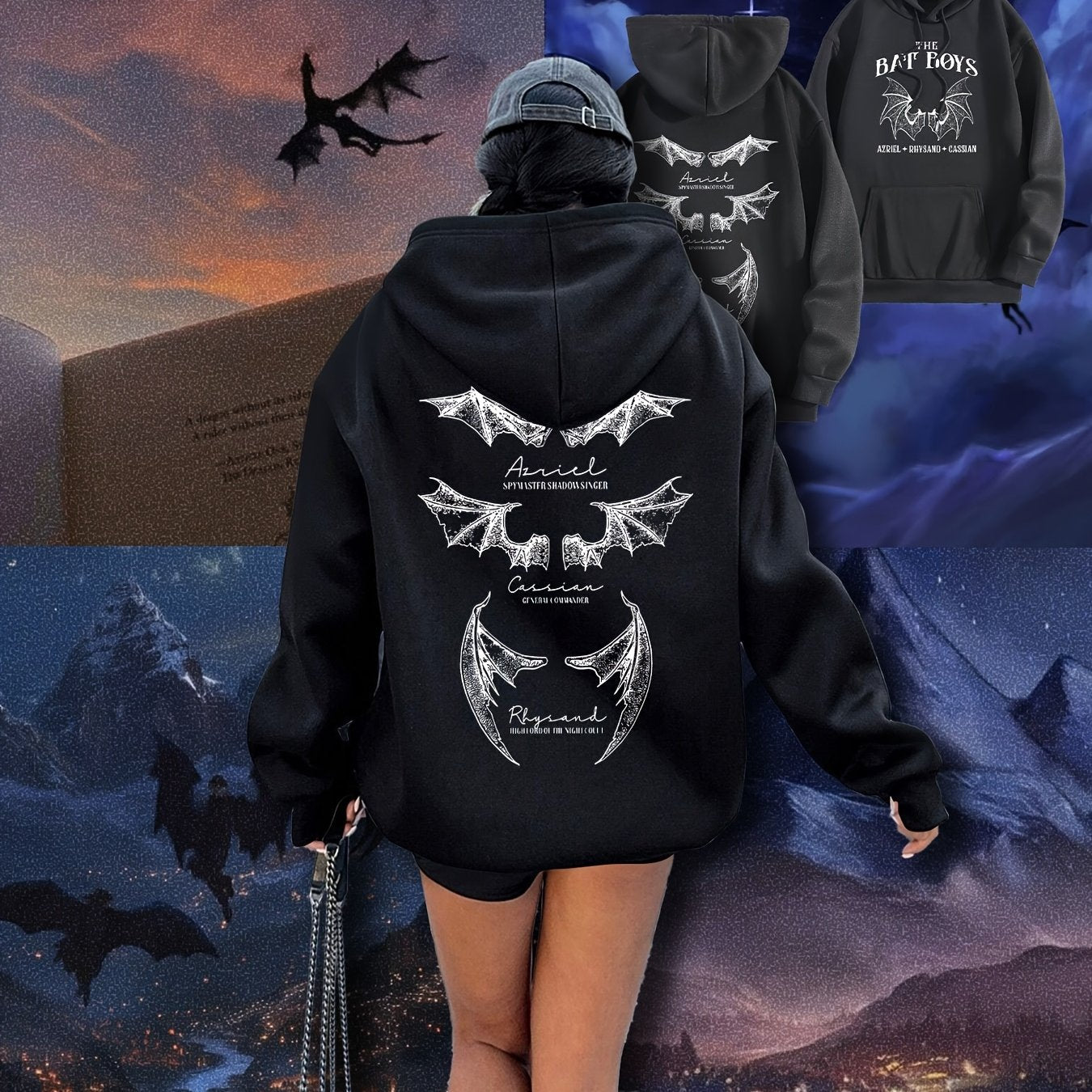 Мужская повседневная толстовка с черной летучей мышью, иллюстрация, карманы, осень-зима, комфорт