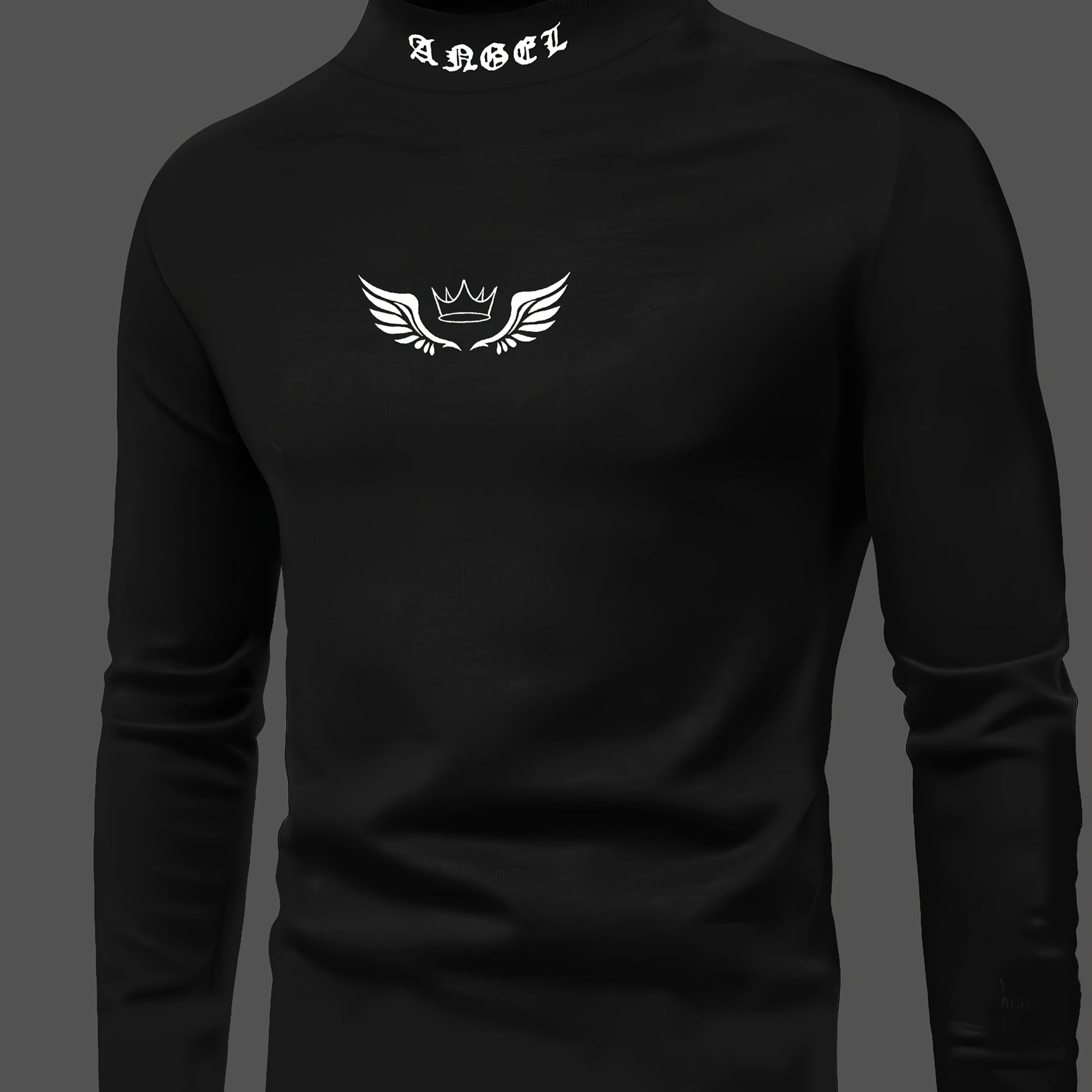 Мужская спортивная футболка с длинным рукавом из полиэстера с принтом короны Royal Winged, высокий воротник, повседневная осень-зима