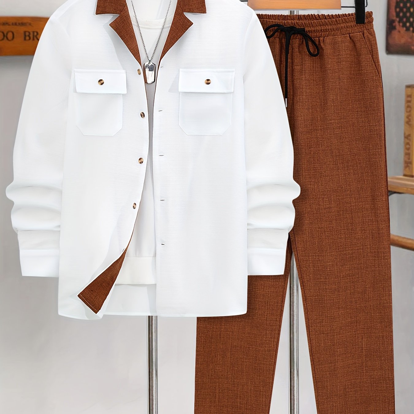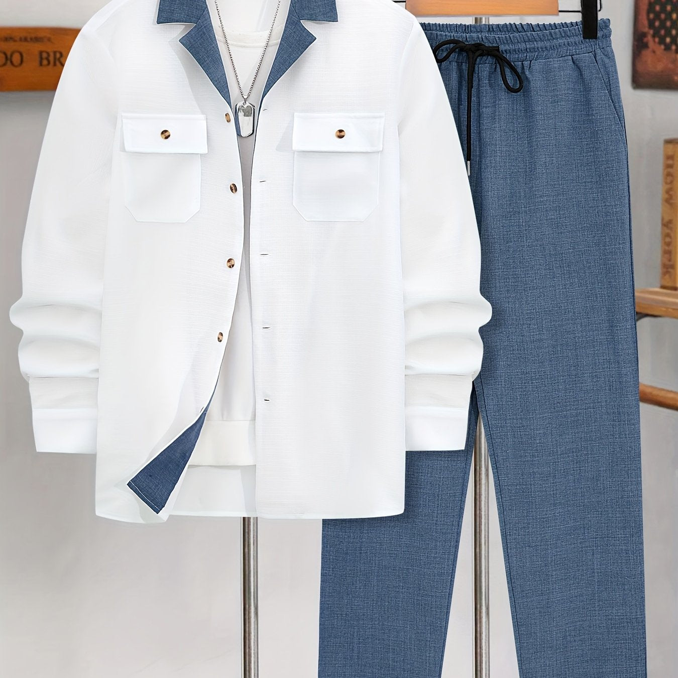 Мужской повседневный костюм из полиэстера с длинным рукавом, жакетом на пуговицах и брюками, большой размер, для весны и осени