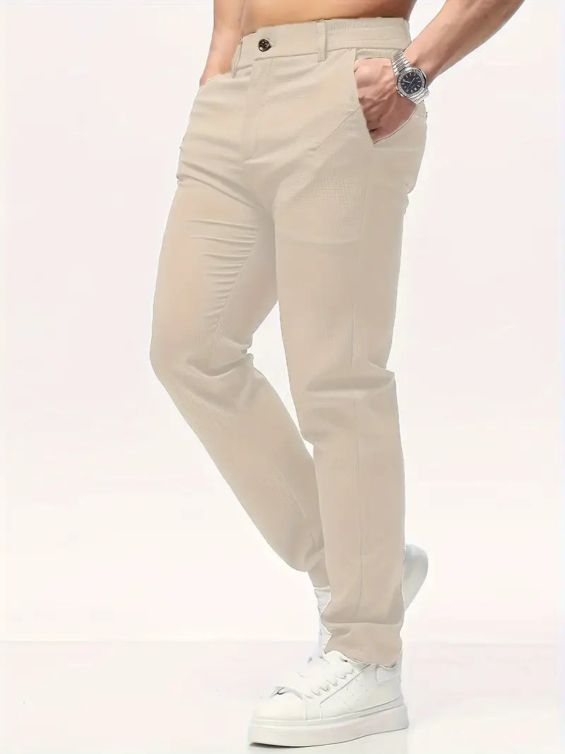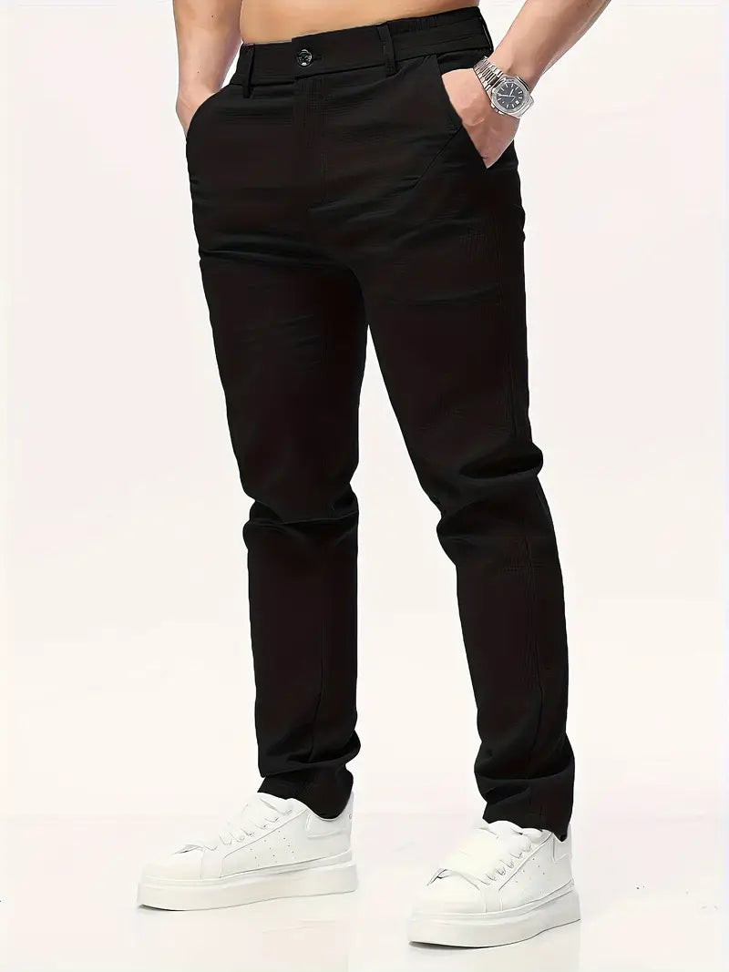 Мужские повседневные полиэстеровые брюки однотонного цвета классического кроя для весны и осени
