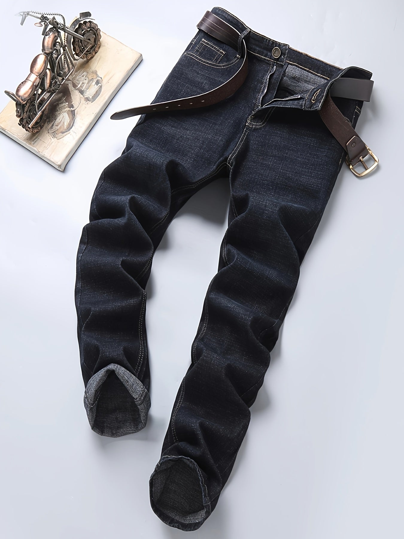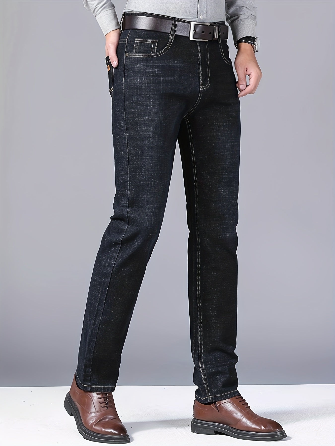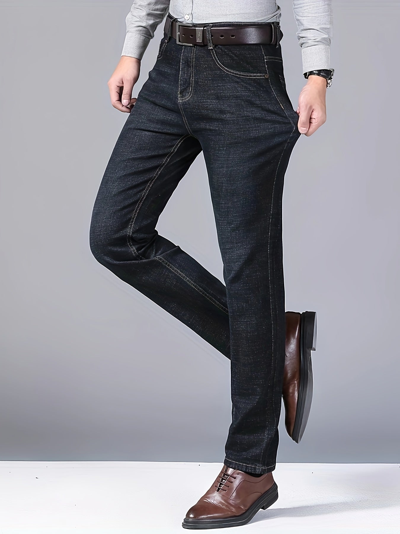 Мужские брюки чинос классического кроя однотонного цвета для всех сезонов из денима
