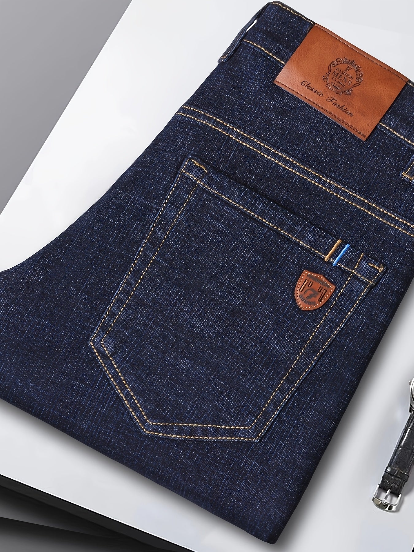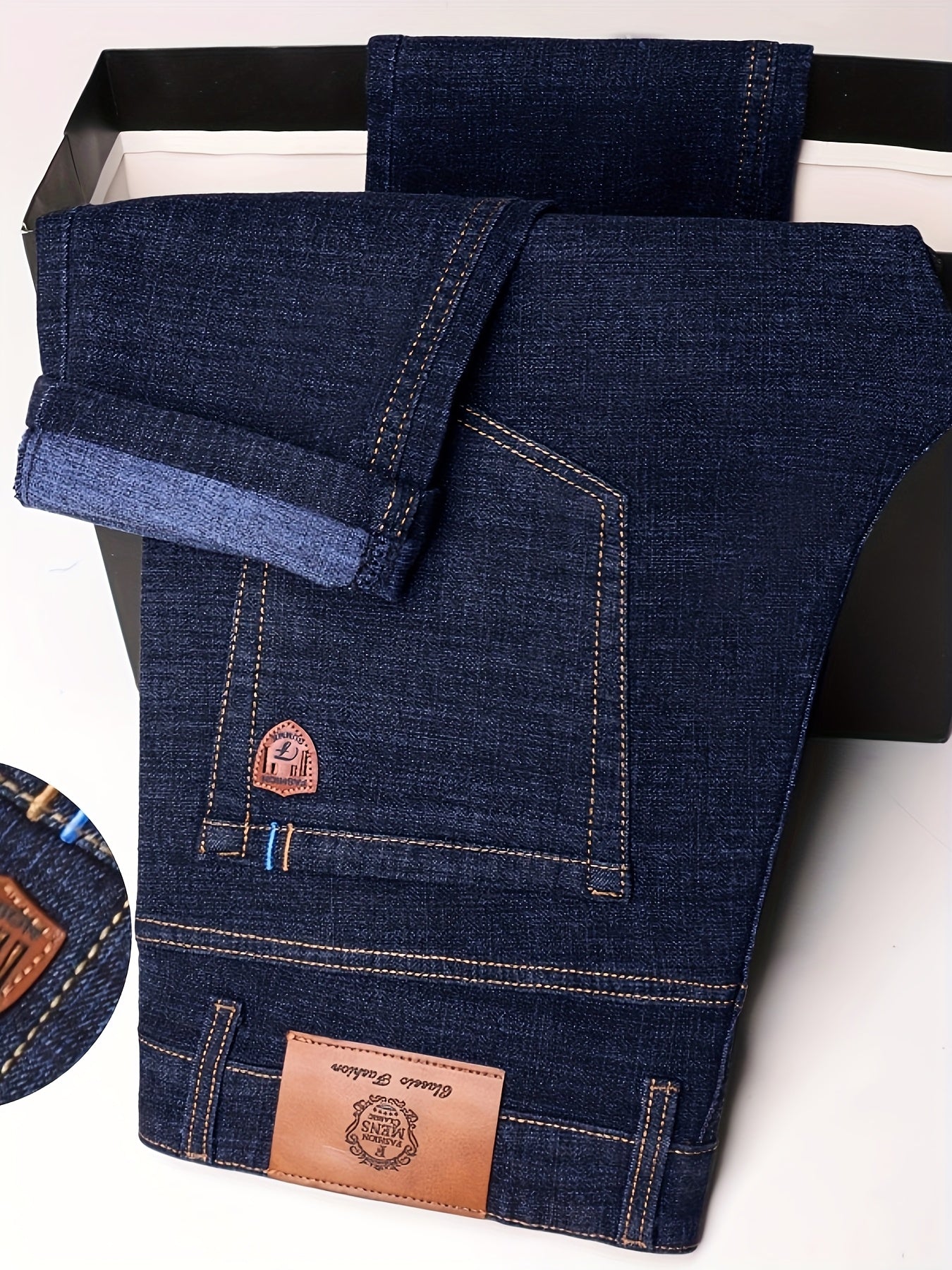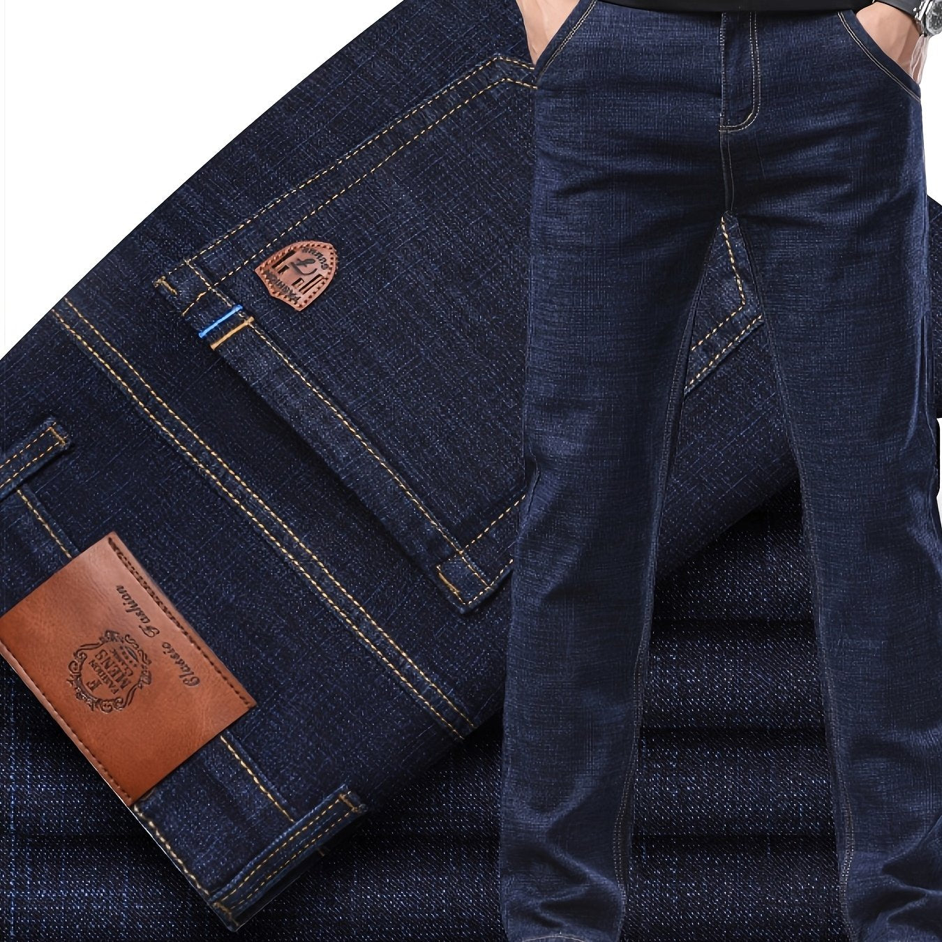 Мужские узкие эластичные хлопковые деловые повседневные джинсы синий классический крой