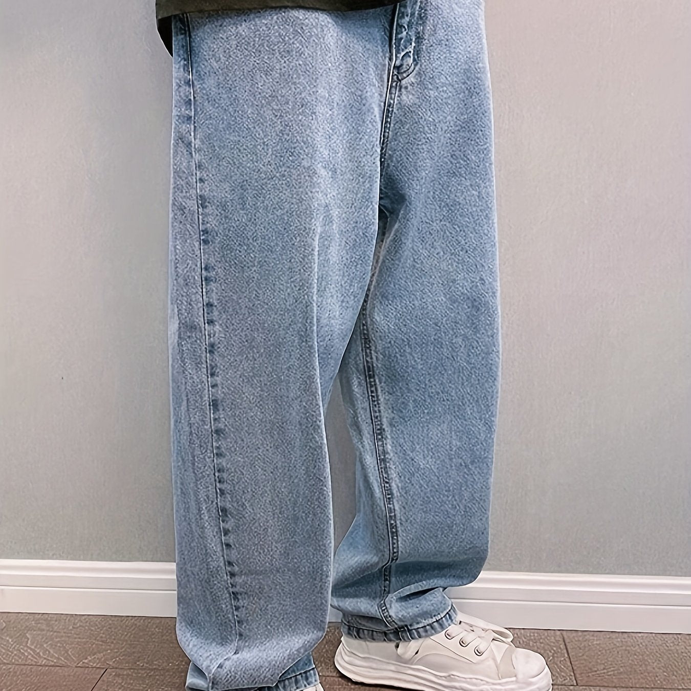 Мужские широкие джинсы из хлопкового микса в стиле casual street, универсальные джинсы на все сезоны