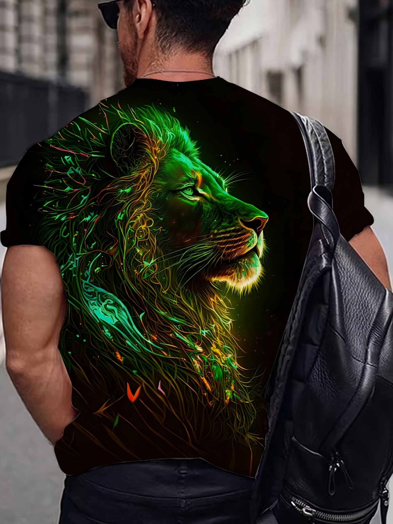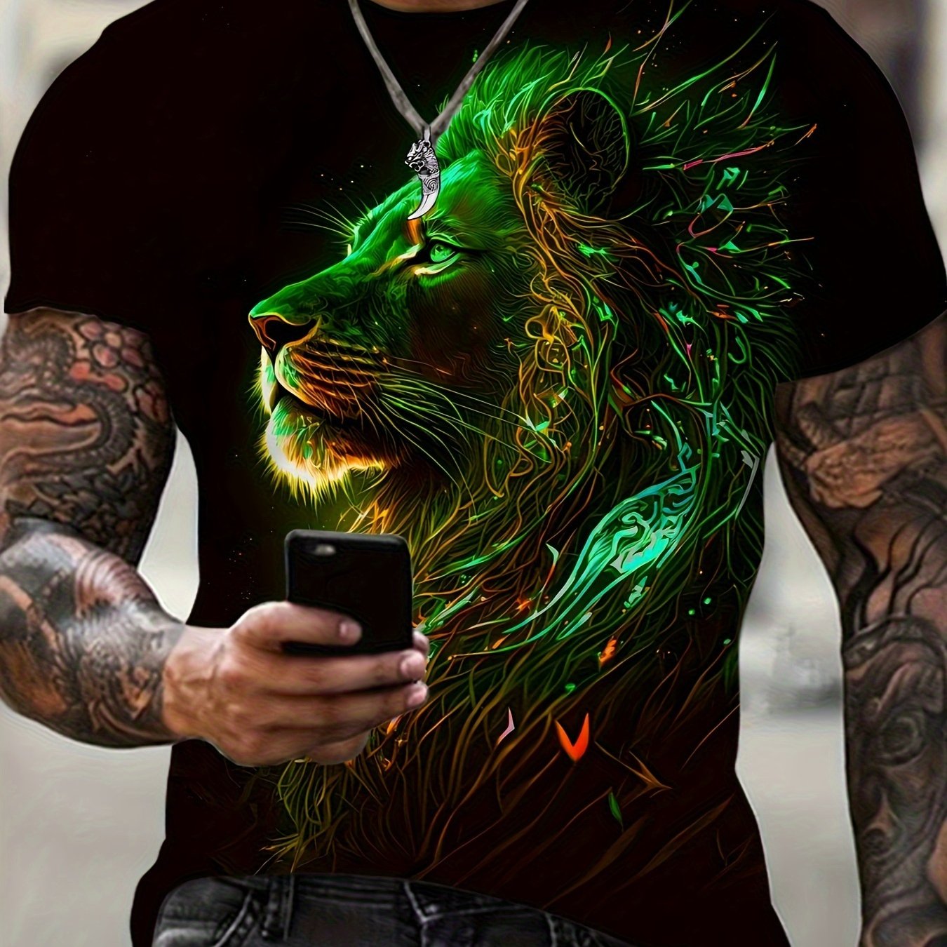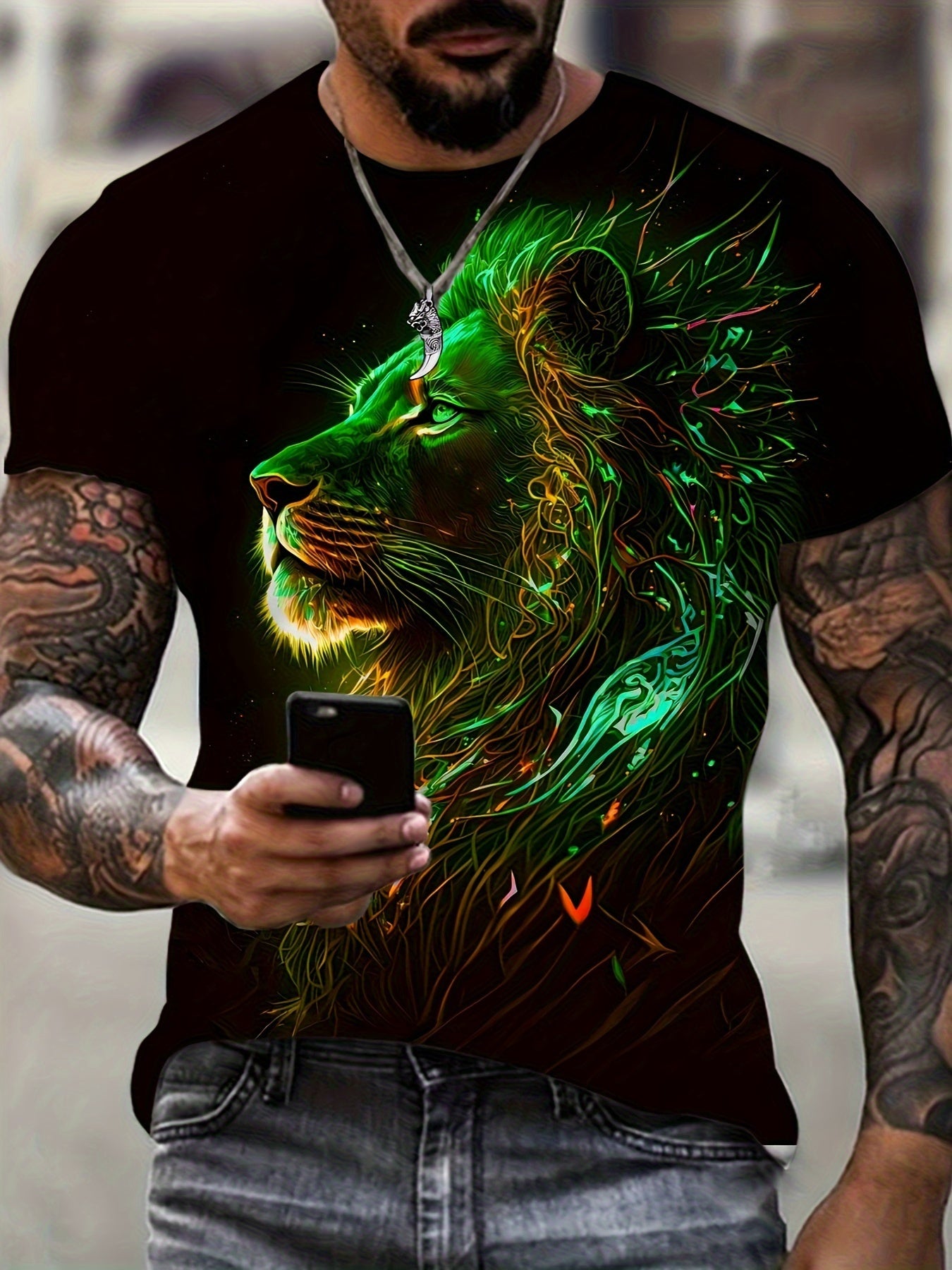 Мужская футболка с коротким рукавом и цифровым принтом льва, смесь полиэстера, повседневное лето, спорт