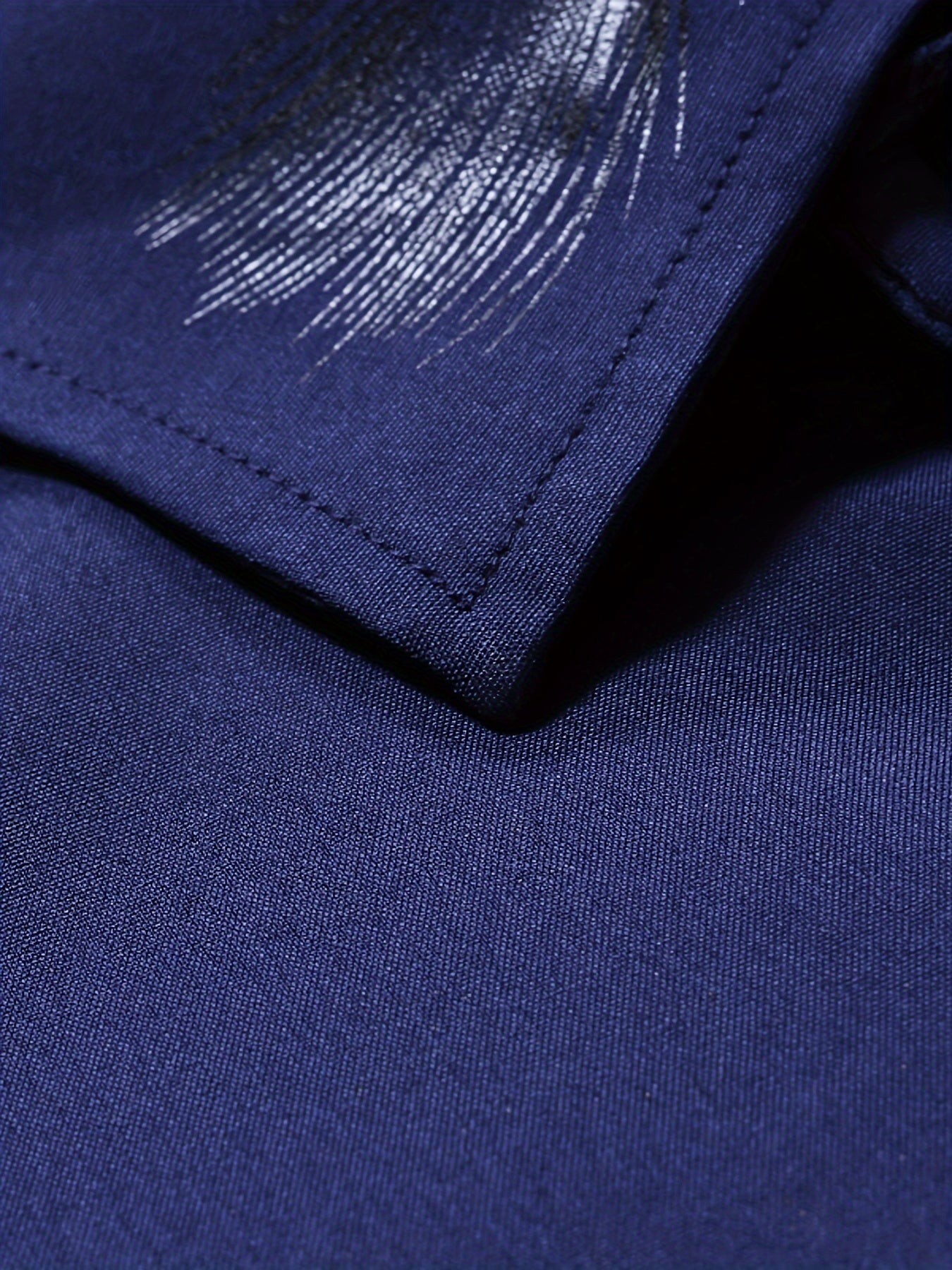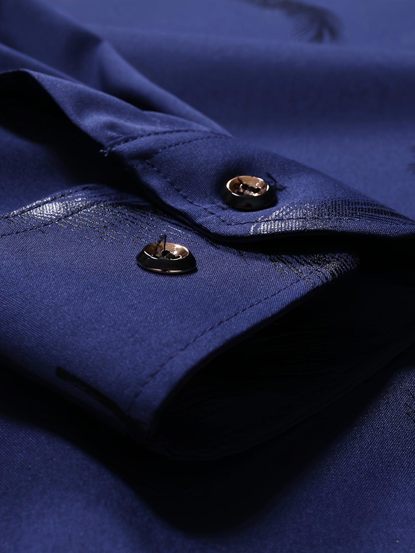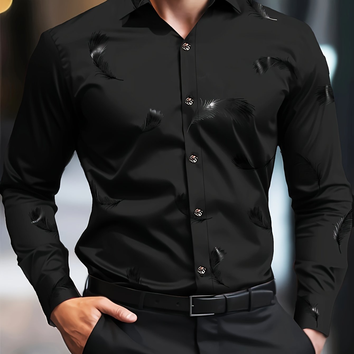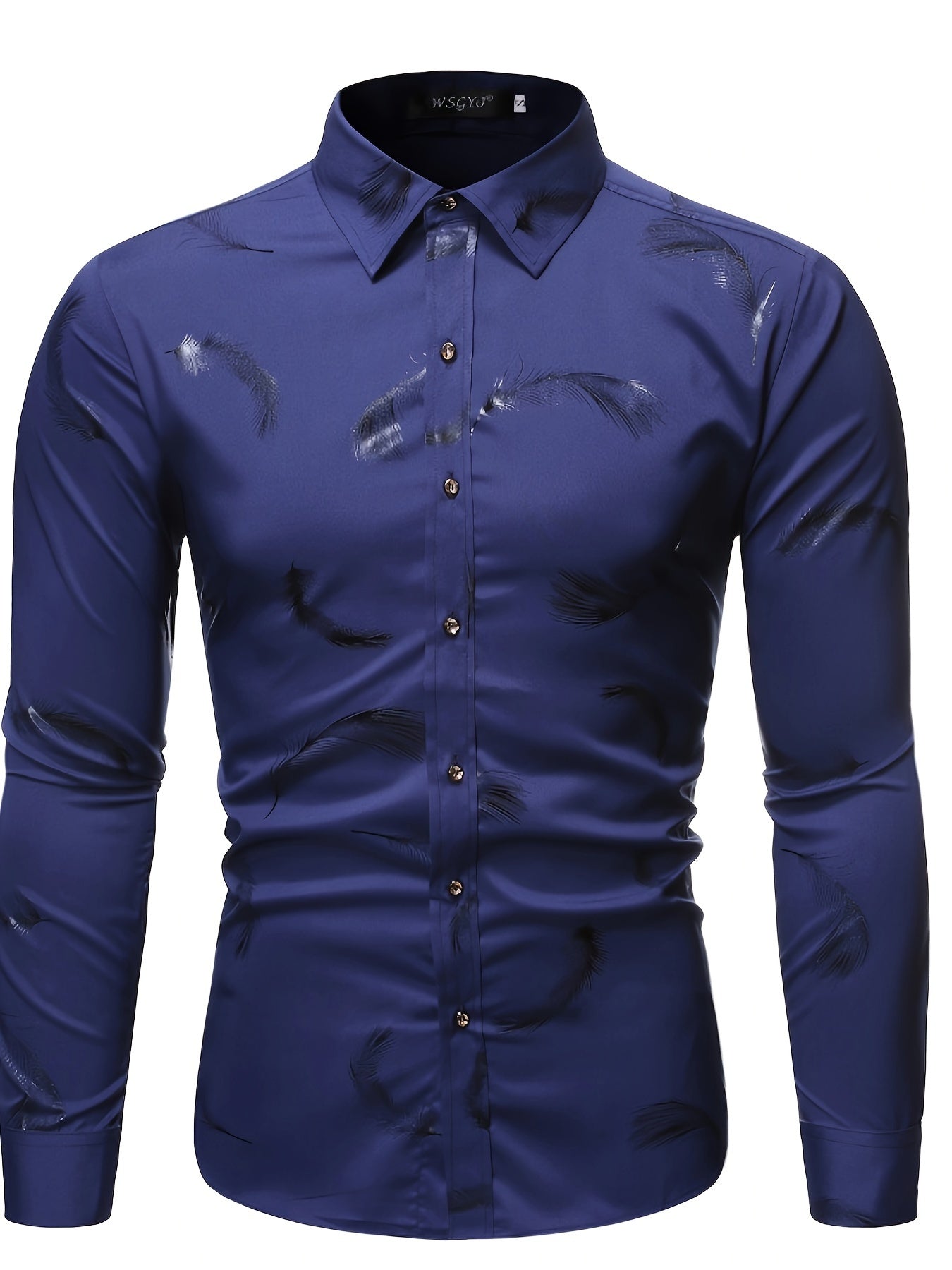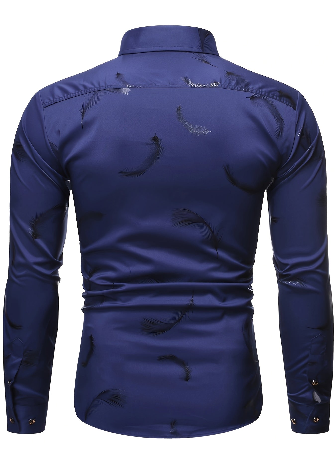 Мужская рубашка с длинным рукавом с золотым перьевым принтом, полиэстер, формальный, тканая, облегающий крой