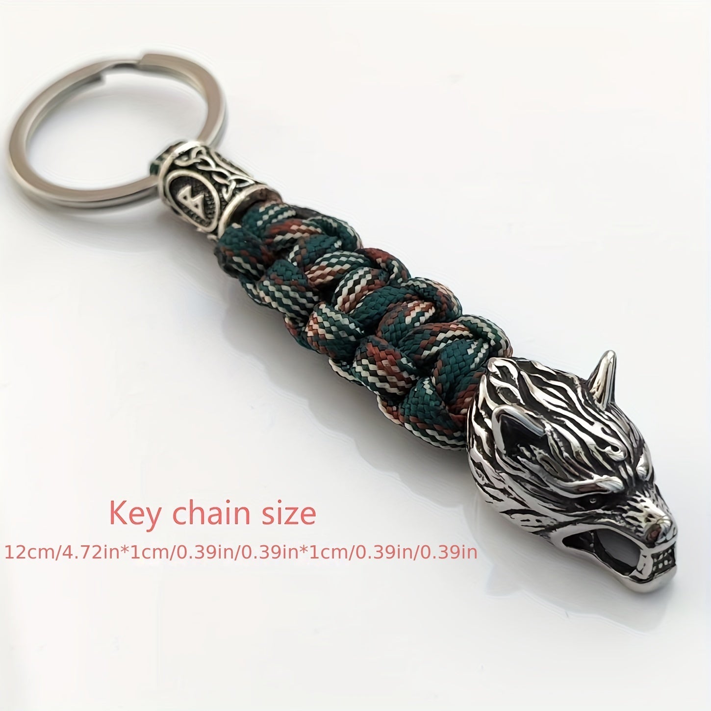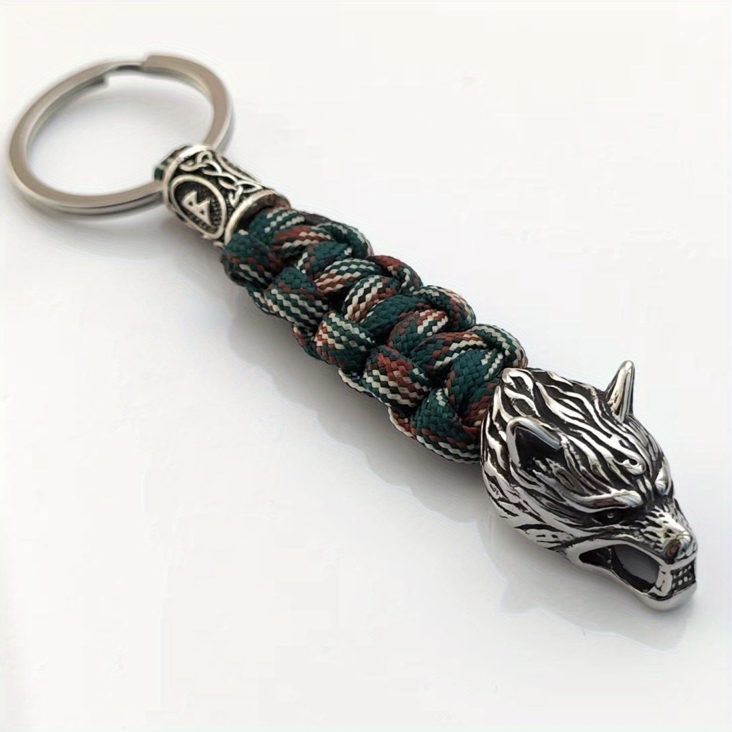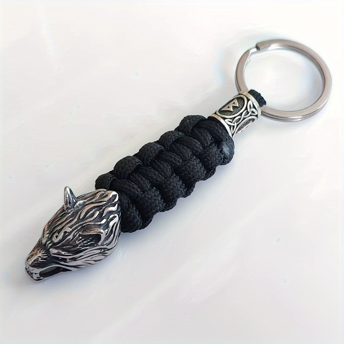 Мужской модный аксессуар: ключница с головой волка викинга из нержавеющей стали - ручное плетение из полиэстера, спортивный и стильный брелок