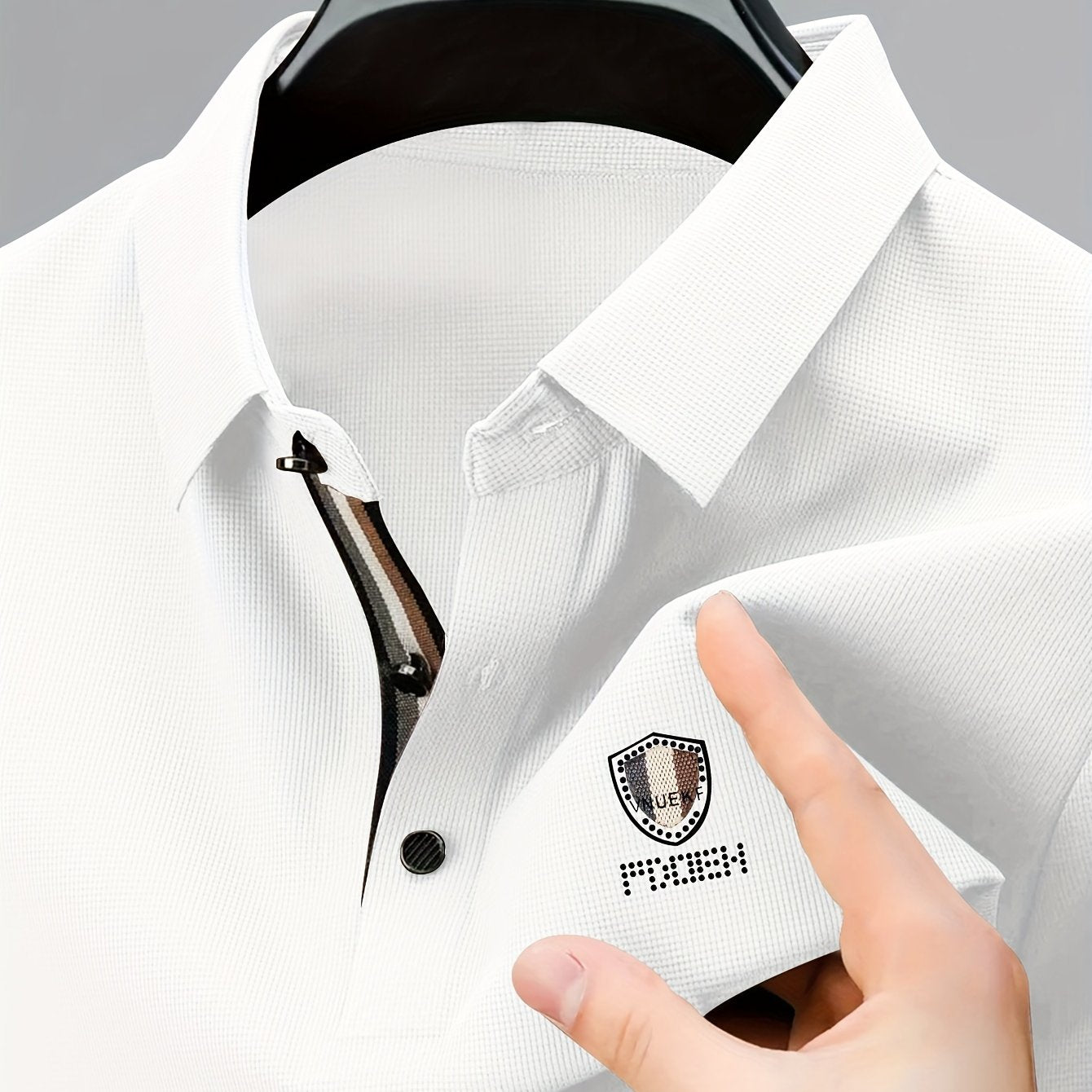 Мужская гольф-рубашка с геометрическим принтом, полиэстер, повседневная, весна, лето, осень