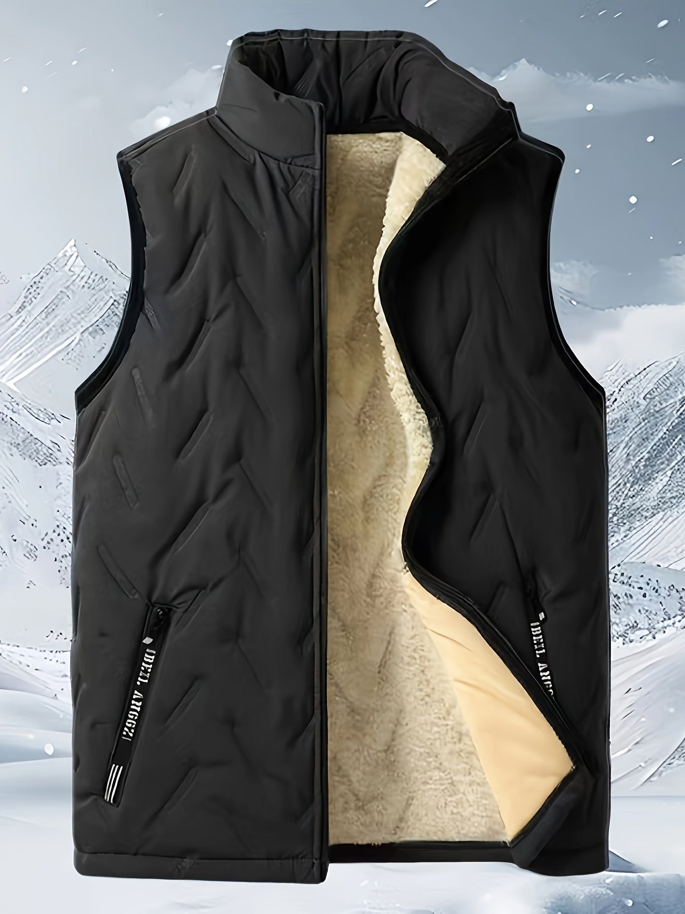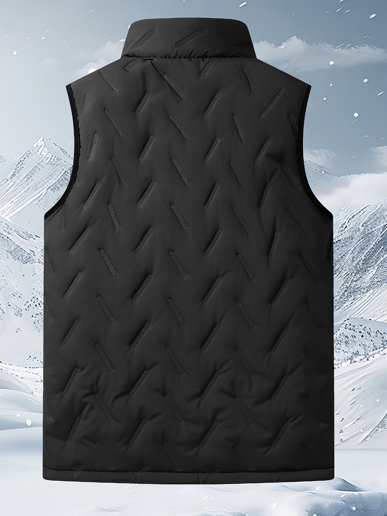 Мужской жилет из полиэстера с геометрическим узором и воротником-стойкой, застежка-молния, для осени и зимы, повседневный стиль