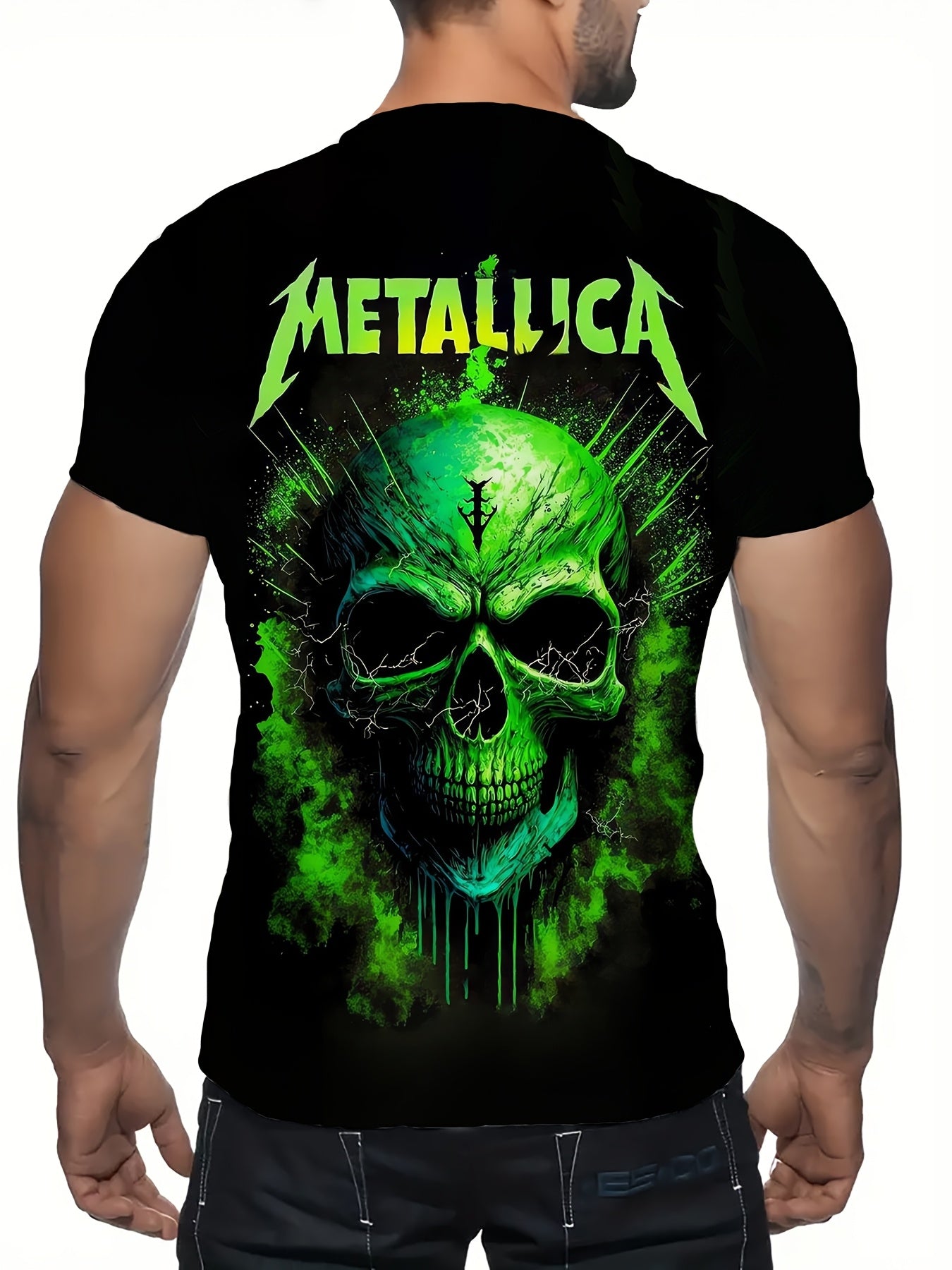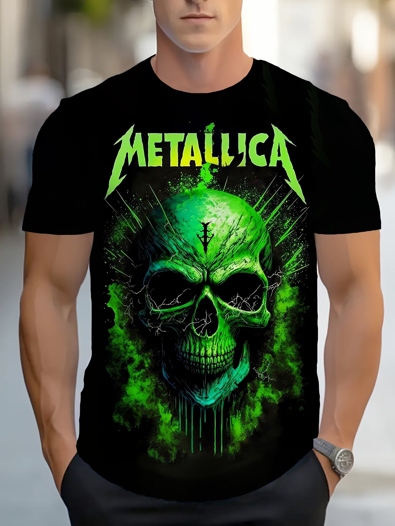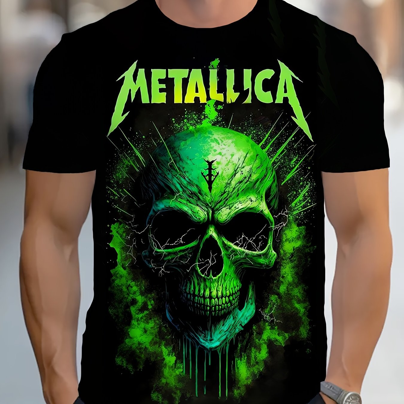 Мужская зеленая футболка с графическим изображением черепа и дизайном группы, короткий рукав, спортивная майка из полиэстера и спандекса