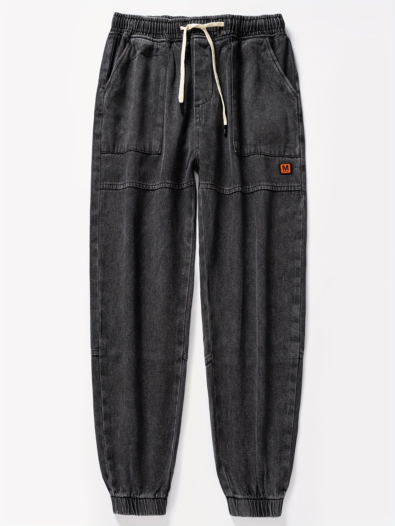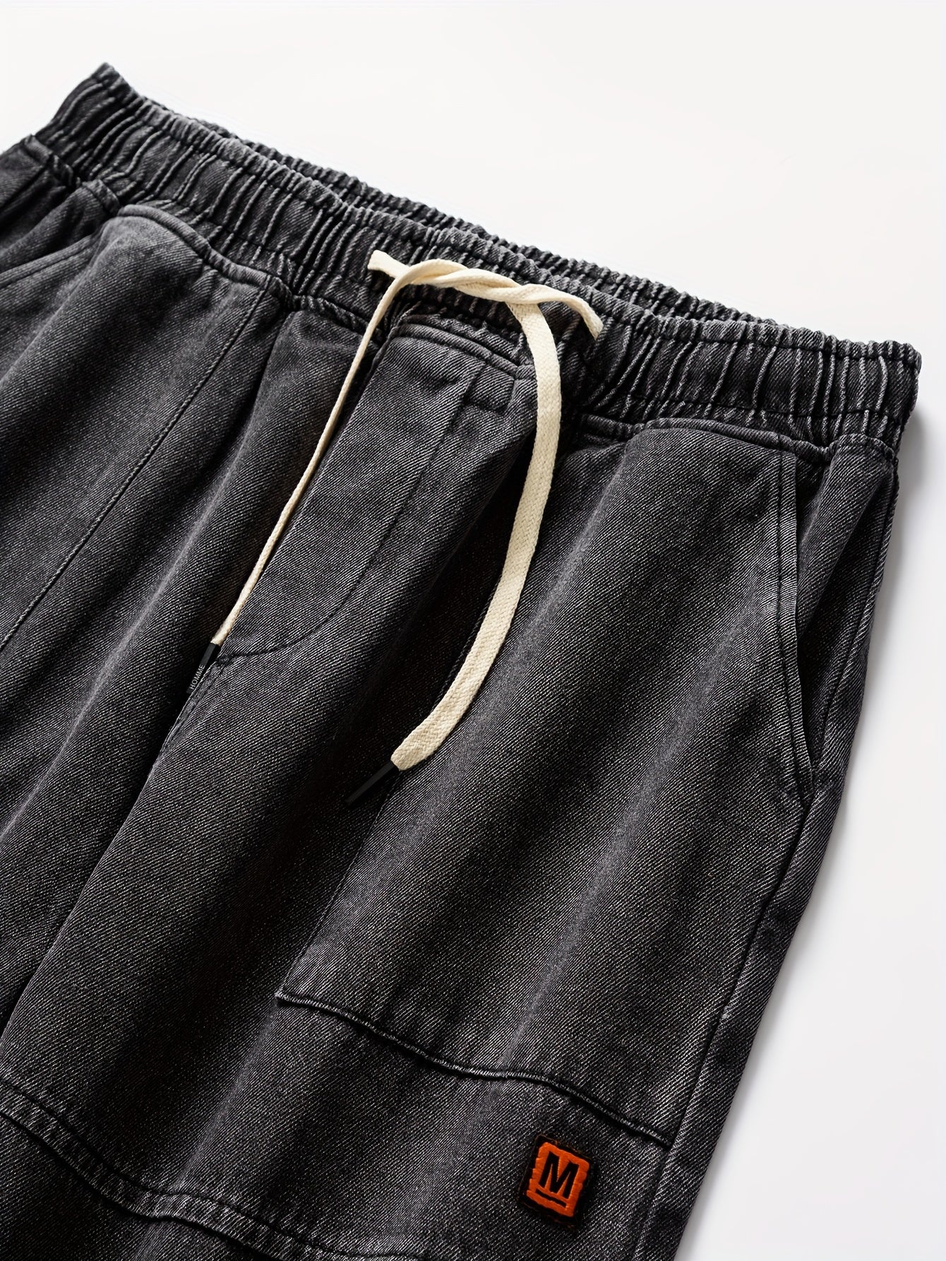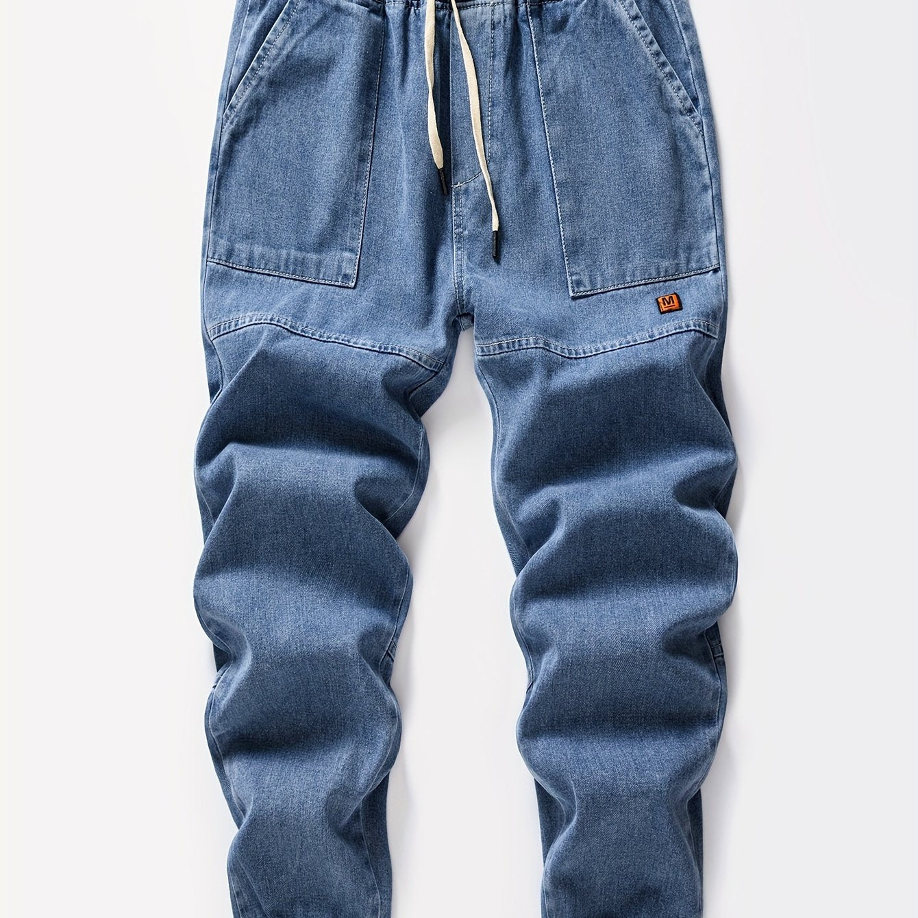 Мужские джинсовые джоггеры укороченные синий свободный крой с шнурком на поясе уличный повседневный стиль